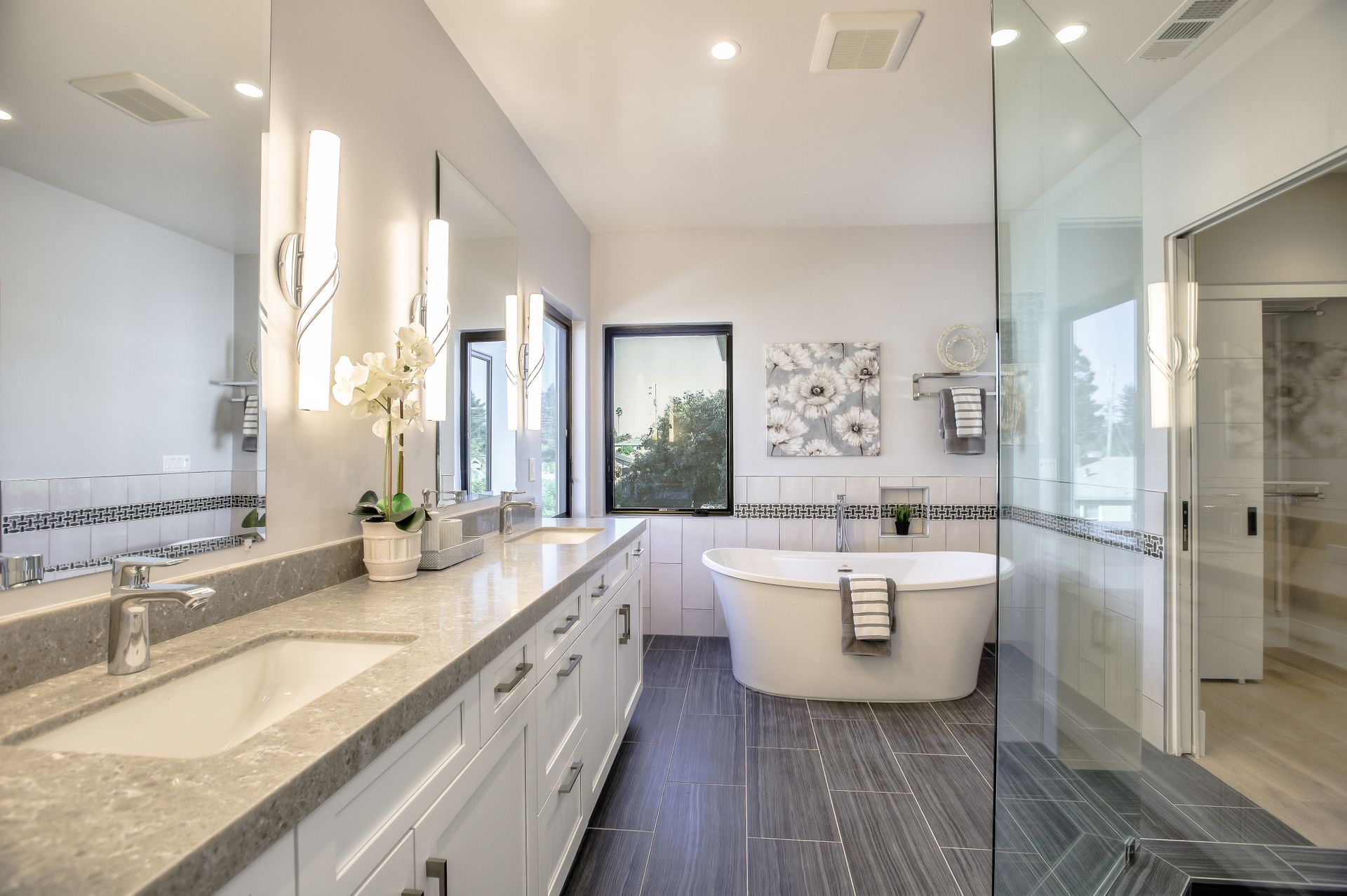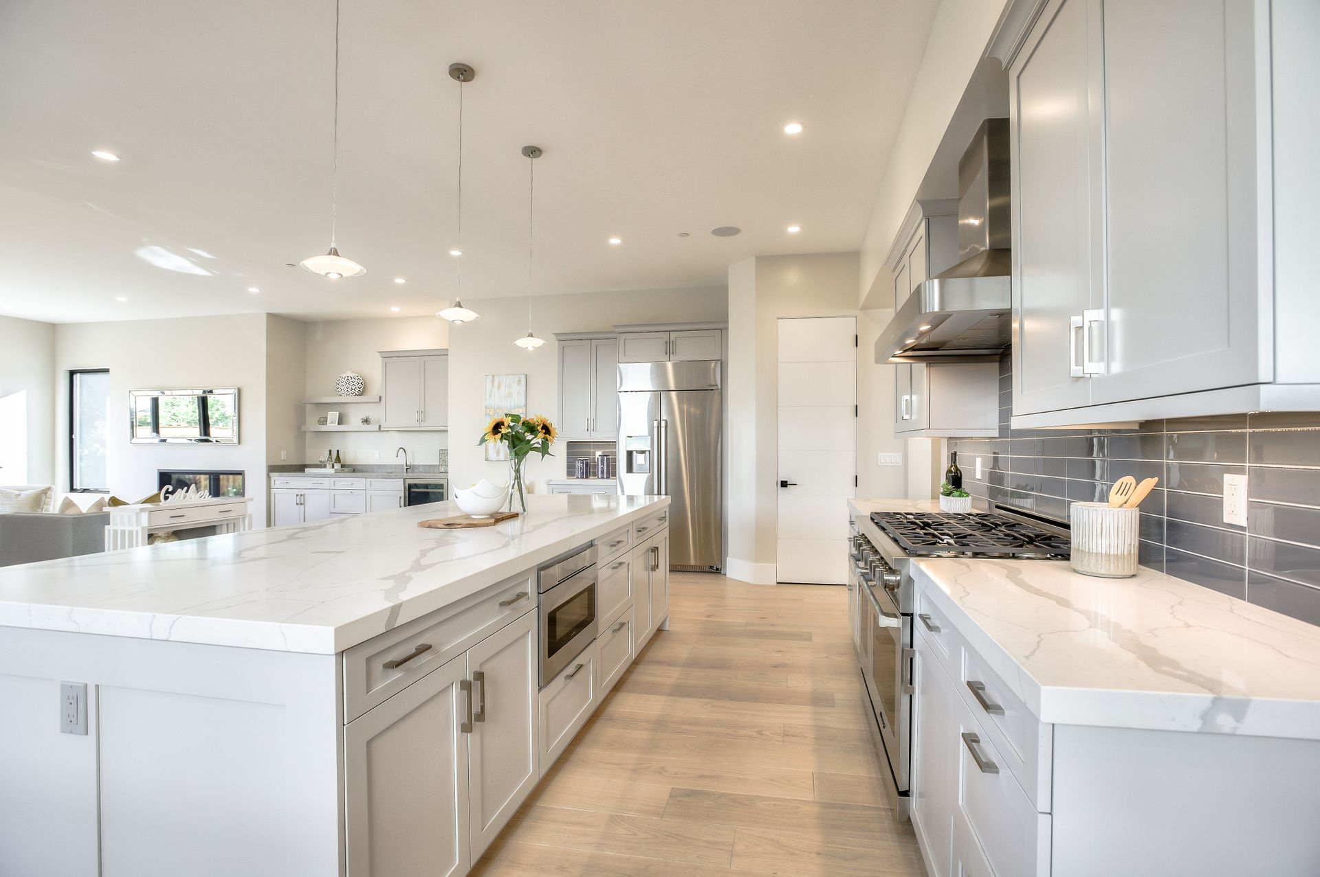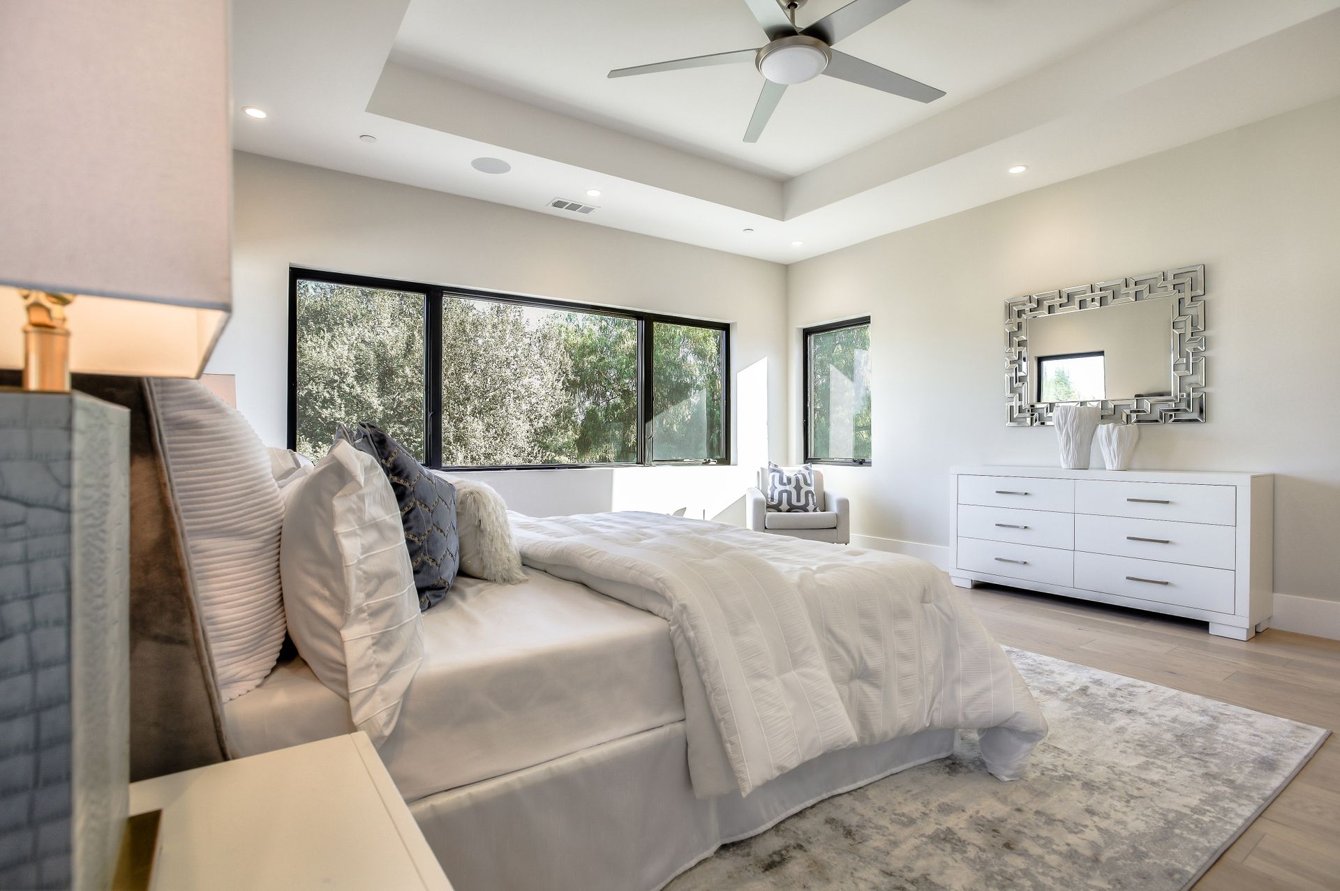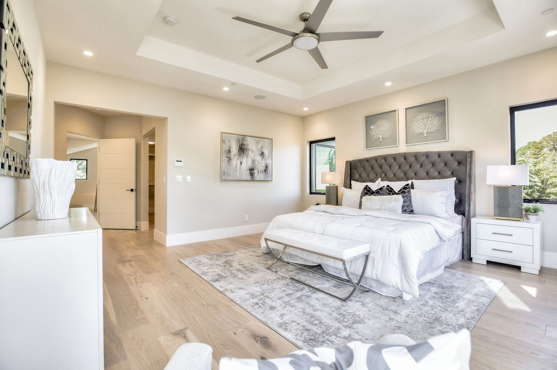 This beautiful newly constructed contemporary home has large rooms and an easy flow. The natural light-filled rooms with high ceilings and an open floorplan are ideal for large or multi-generational family. The home boasts all the modern amenities you could want, including dual heating and air conditioning zones, a tankless water heater, built-in speakers inside and out, a security system, wired ethernet and is EV charger ready. It is fully landscaped with sprinkler systems for the lawn and irrigation drip systems for the plants, shrubs and trees. The walkways around the backyard show off this spacious and brilliantly designed property.