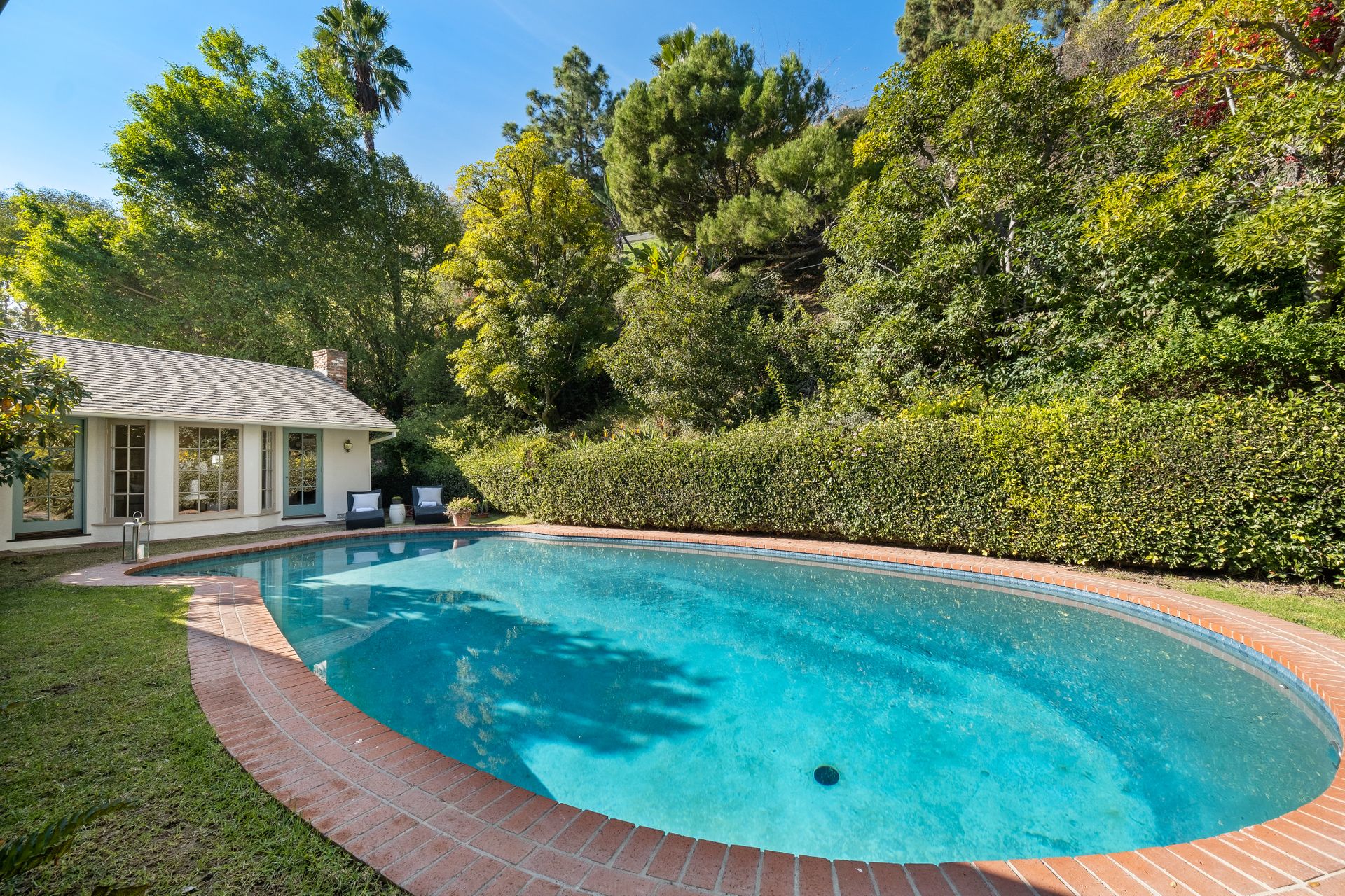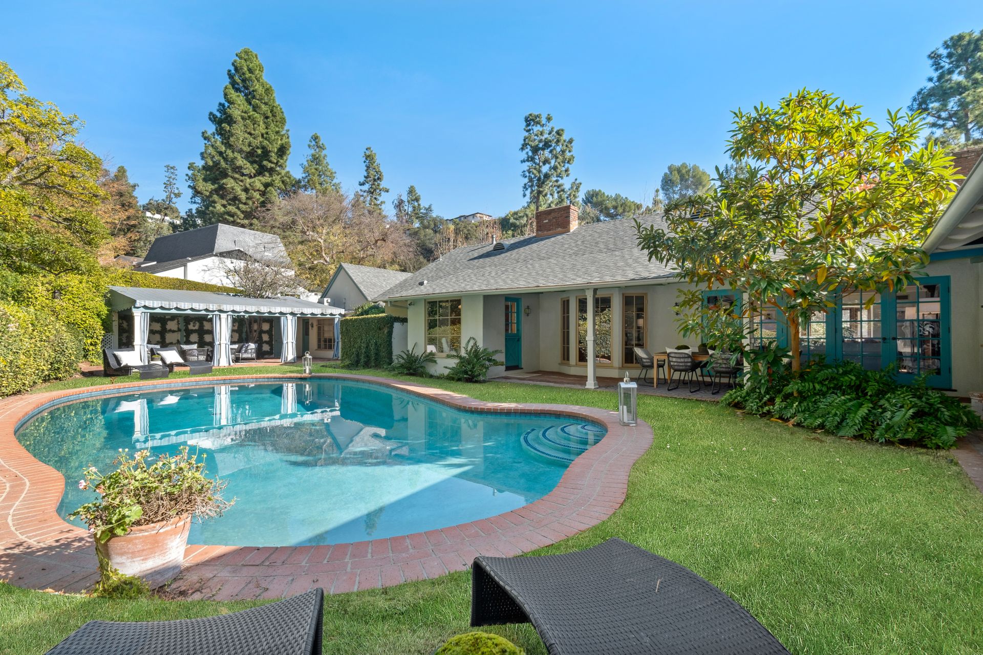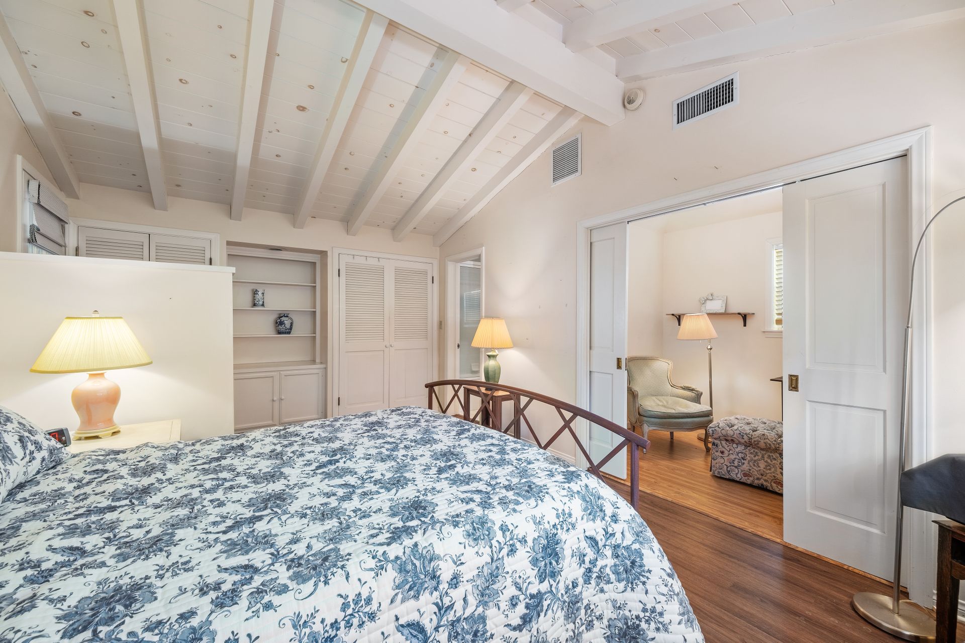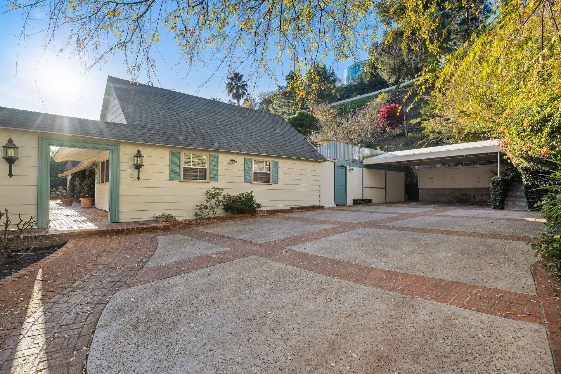 Welcome to this utterly charming Connecticut Country house in the city of Beverly Hills, close to the park and close to the city. Terrific flow for entertaining, sensational scale, plus a fantastic flexible floor plan with the rooms in all of the right places. The large library/den with a fireplace, closet and private bathroom could easily be converted to a bedroom or kept as-is for that fabulous retreat. Greenery outside every room and a terrific indoor/outdoor flow. As the house is now, it is currently two bedrooms and a fabulous large den/office combination. There are two additional detached guest suites with their own baths. Private yard, private house, private drive. Ed Fickett remodel in 1994. An incredible opportunity...with some updating and TLC, this is a showplace!!!