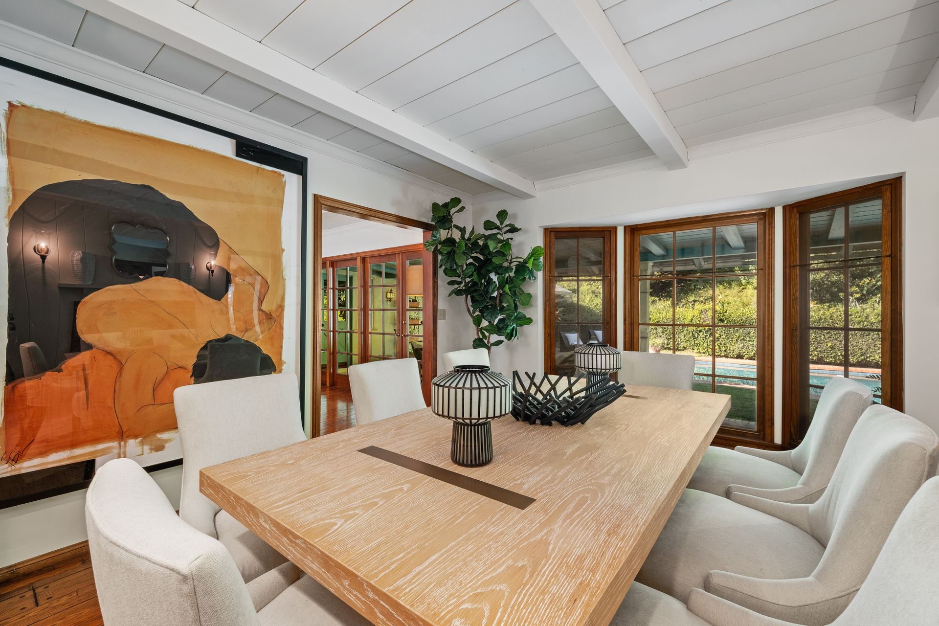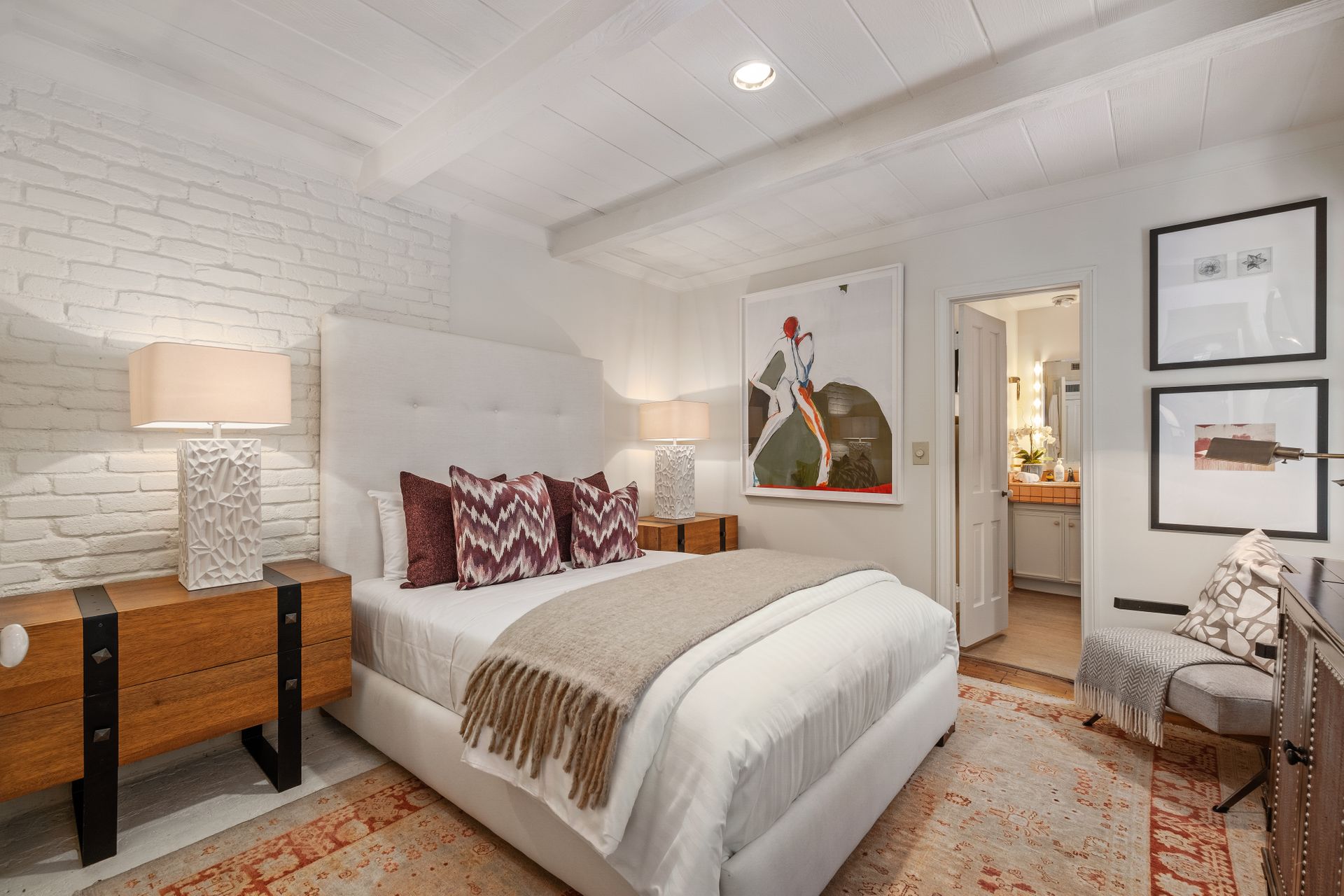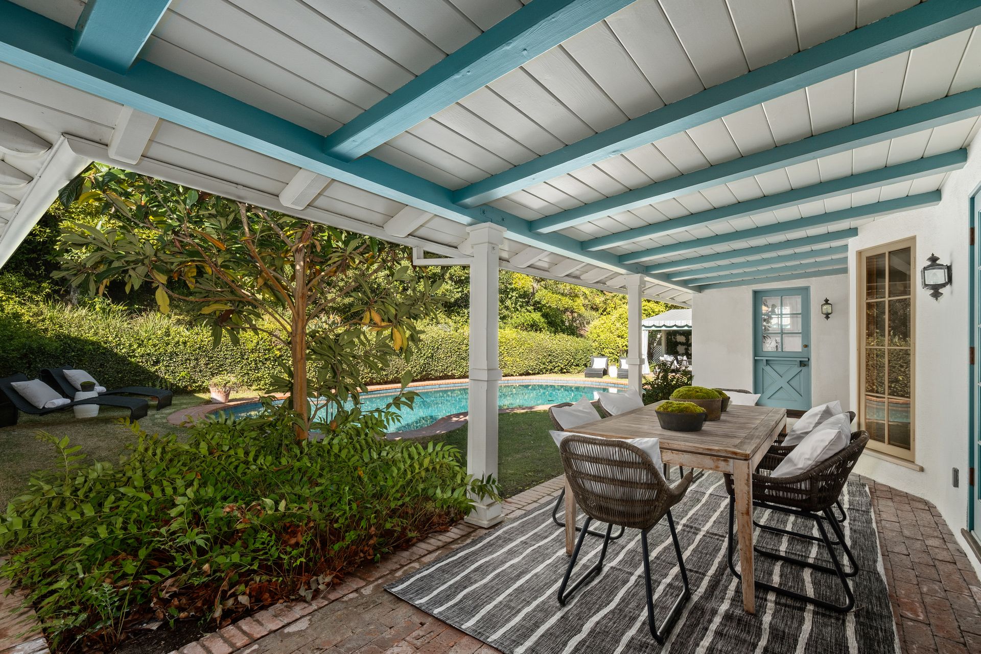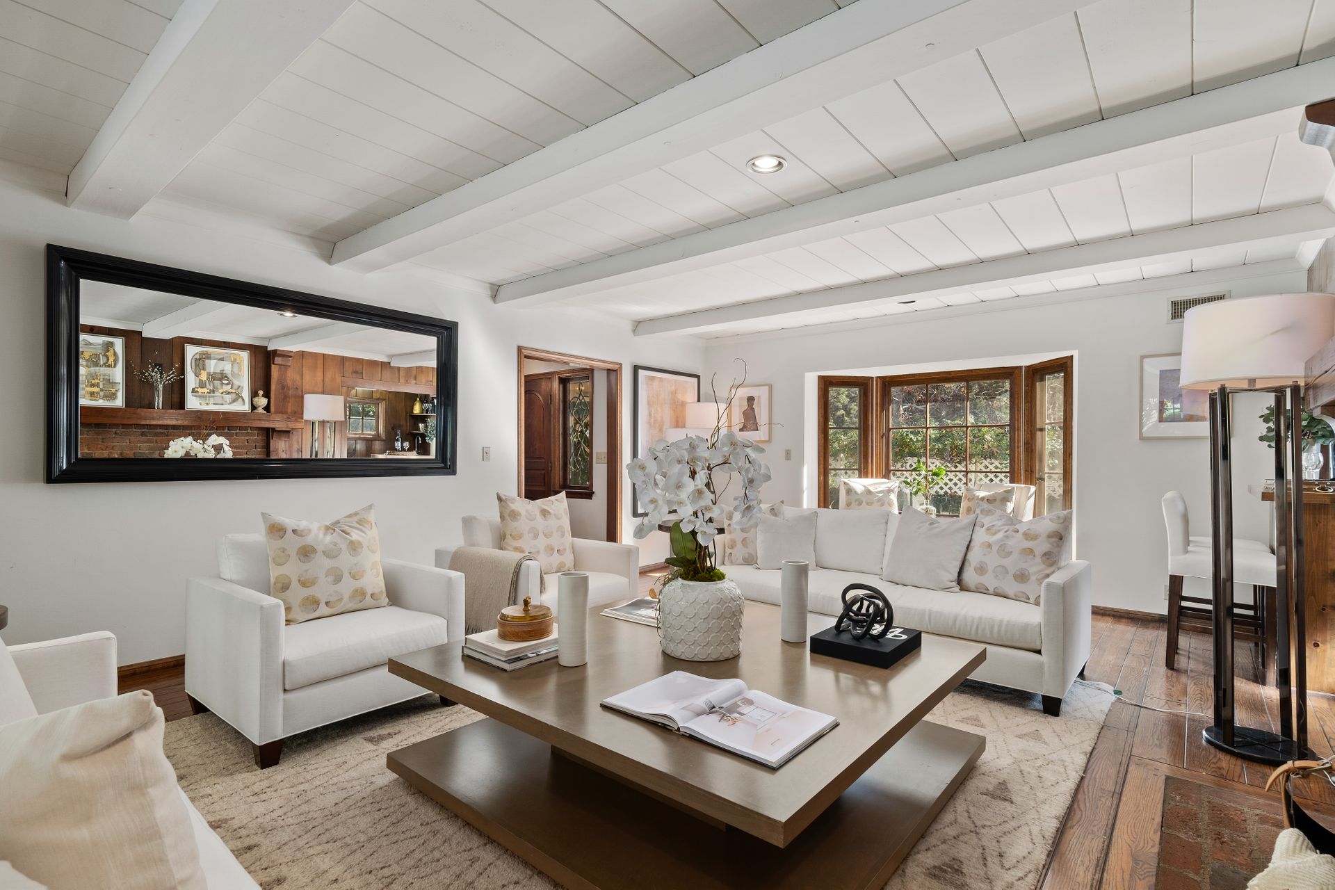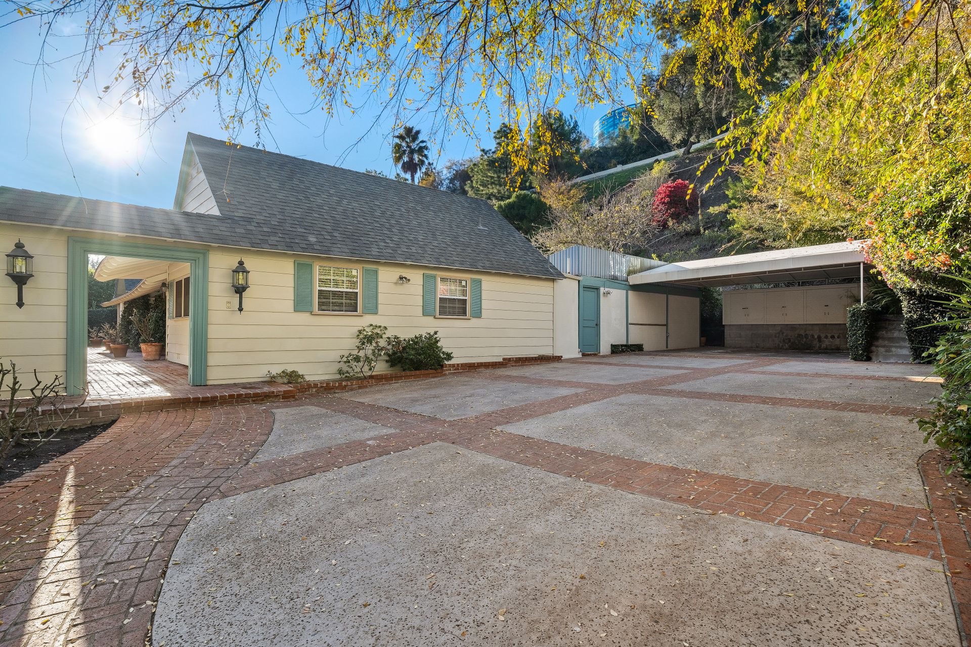 Welcome to this utterly charming Connecticut Country house in the city of Beverly Hills, close to the park and close to the city. Terrific flow for entertaining, sensational scale, plus a fantastic flexible floor plan with the rooms in all of the right places. The large library/den with a fireplace, closet and private bathroom could easily be converted to a bedroom or kept as-is for that fabulous retreat. Greenery outside every room and a terrific indoor/outdoor flow. As the house is now, it is currently two bedrooms and a fabulous large den/office combination. There are two additional detached guest suites with their own baths. Private yard, private house, private drive. Ed Fickett remodel in 1994. An incredible opportunity...with some updating and TLC, this is a showplace!!!