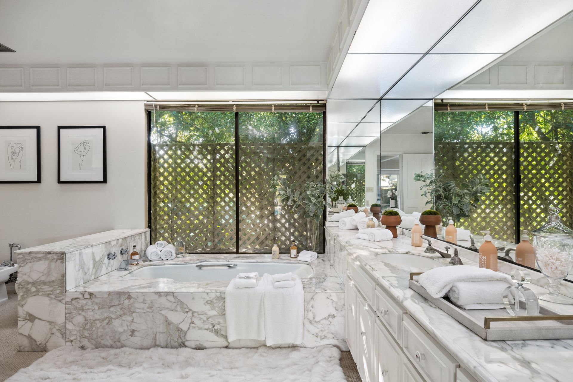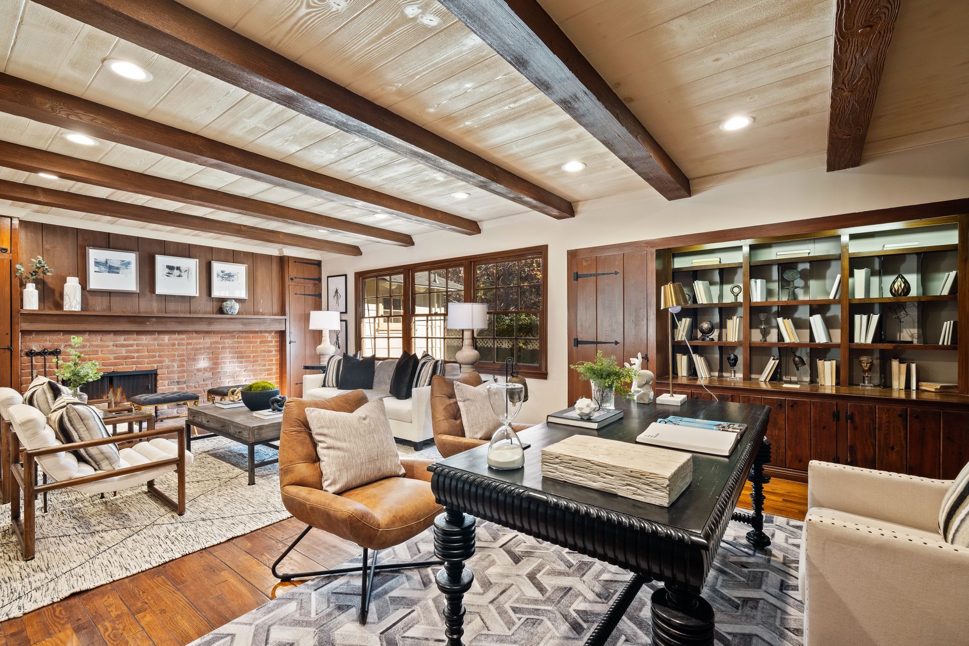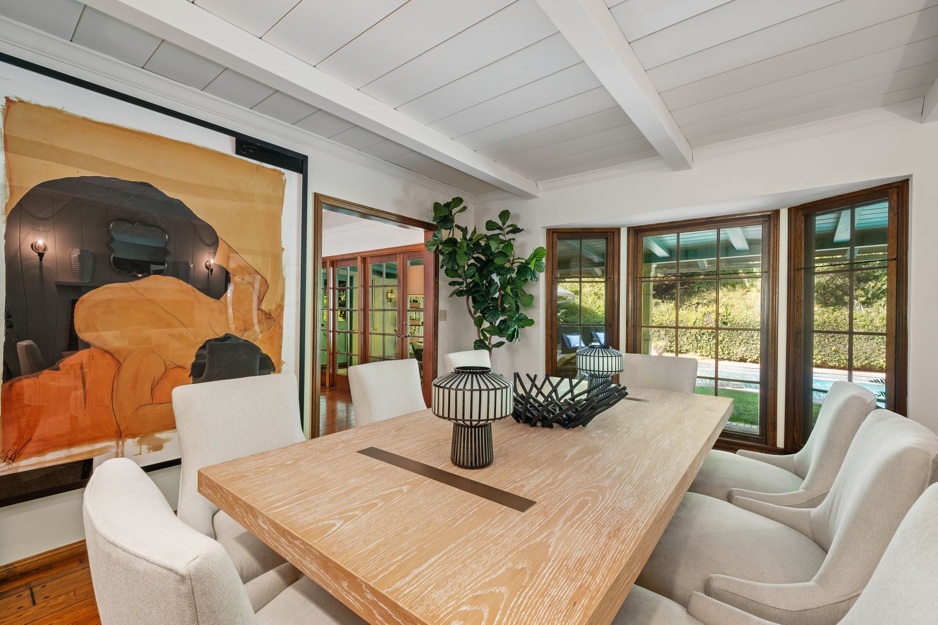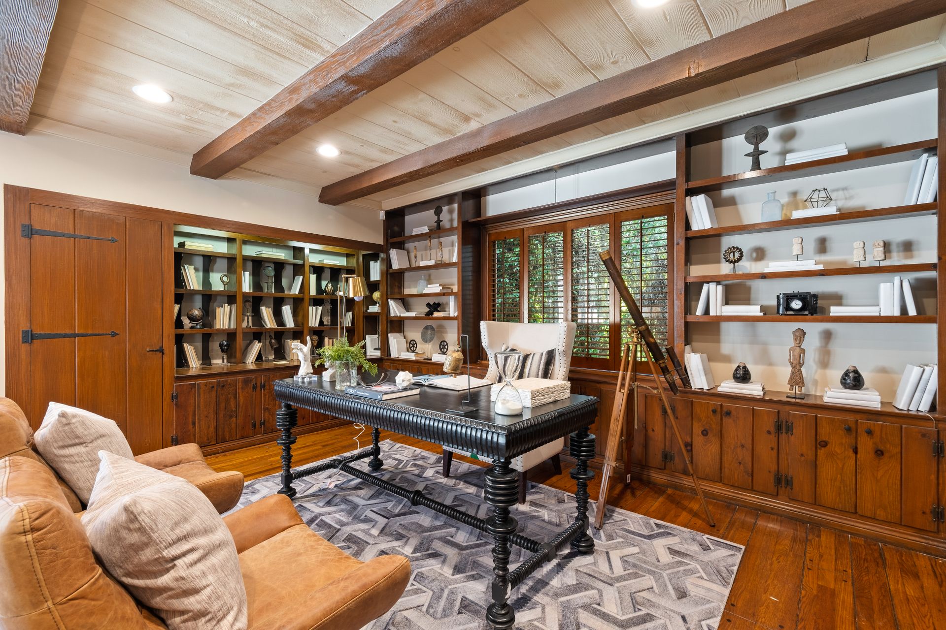 Welcome to this utterly charming Connecticut Country house in the city of Beverly Hills, close to the park and close to the city. Terrific flow for entertaining, sensational scale, plus a fantastic flexible floor plan with the rooms in all of the right places. The large library/den with a fireplace, closet and private bathroom could easily be converted to a bedroom or kept as-is for that fabulous retreat. Greenery outside every room and a terrific indoor/outdoor flow. As the house is now, it is currently two bedrooms and a fabulous large den/office combination. There are two additional detached guest suites with their own baths. Private yard, private house, private drive. Ed Fickett remodel in 1994. An incredible opportunity...with some updating and TLC, this is a showplace!!!