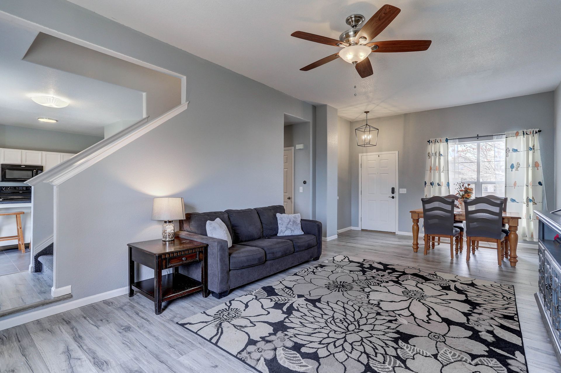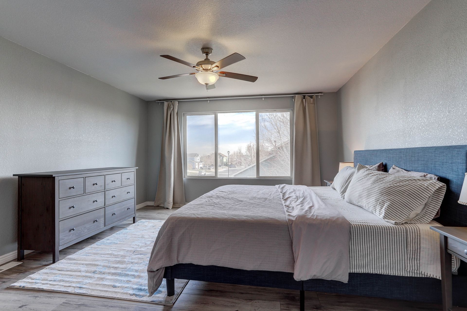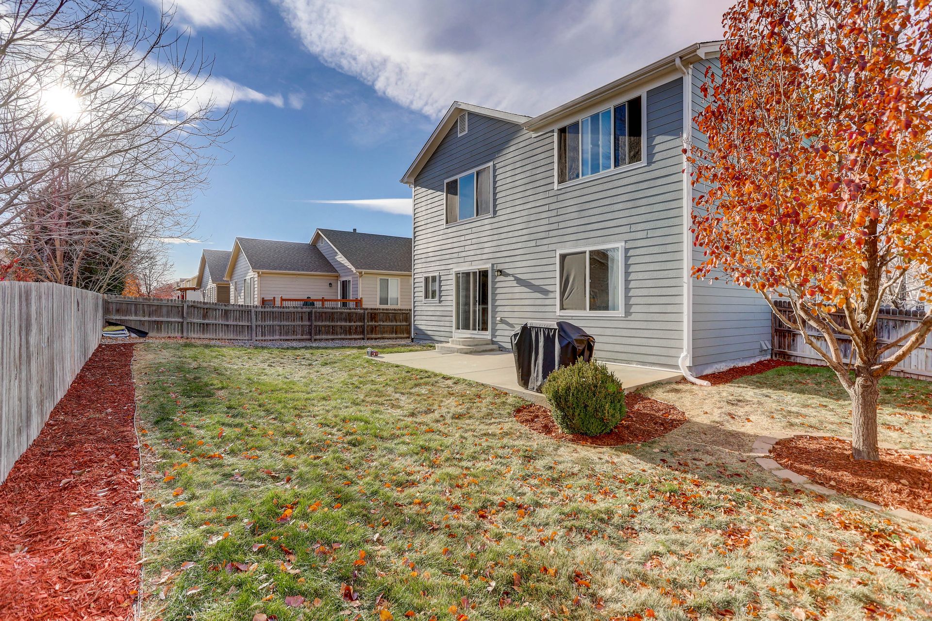 CHECK OUT THIS SKYLAKE RANCH TWO STORY HOME. PERFECT FOR THAT YOUNG FAMILY JUST STARTING. EASY MAINTENANCE YARD AND EASY TO CARE FOR HOME. LAMINATE FLOORING AND TILE ON MAIN LEVEL FOR EASY CLEANING. NEW COMMERCIAL GRADE CARPET FOR THE STAIRS, SHOULD LAST FOREVER. NEW WATER RESISTANT WOOD FLOORING JUST INSTALLED UPSTAIRS WITH NEW BASEBOARD. MOST DOORS AND BEDROOMS HAVE BEEN REPAINTED. OUTSIDE REPAINTED, CAULKED AROUND WINDOWS AND REPAIRED ANY SIDING IN 2020. GREAT CORNER LOT. TWO GARDEN AREAS ARE SET UP FOR YOU. EASY TO MOW AND TRIM. OPEN FAMILY ROOM FOR RELAXING AND DINING. KITCHEN IS OPEN TOO, WITH GRANITE COUNTERTOPS, TILE FLOOR AND ALL APPLIANCES INCLUDED. GARAGE IS ALL INSULATED, NEW INSULATED GARAGE DOOR IN 2020, AND IS READY FOR DRYWALL. SKYLAKE RANCH PARK MAINTAINED BY THORNTON IS JUST DOWN THE STREET. SAMSUNG FRONT LOAD WASHER AND DRYER ARE STAYING TOO. COME CHECK OUT THIS HOME AND THIS COMMUNITY. THE HOA EVEN PLOWS THE STREETS WHEN NEEDED.
