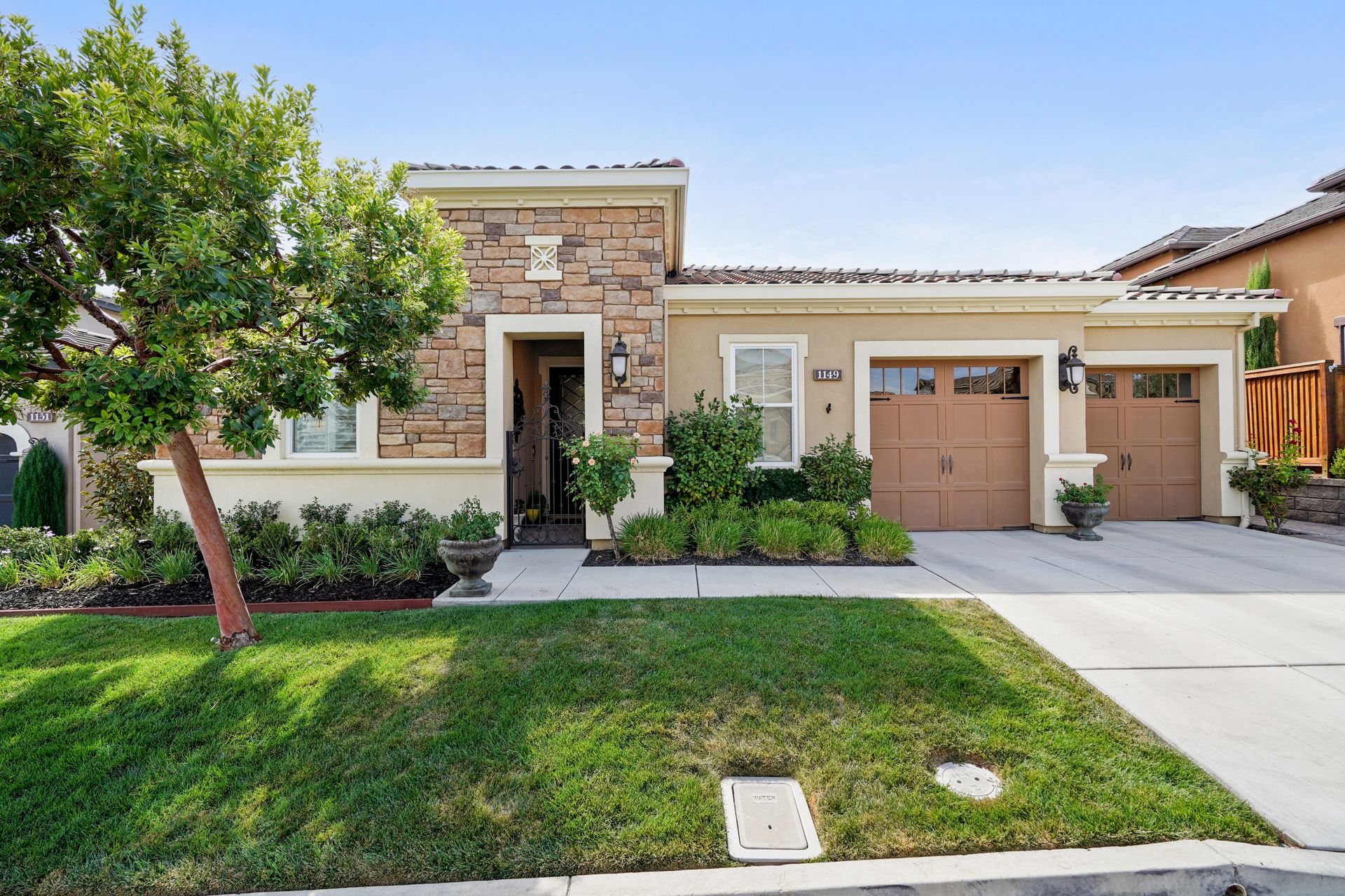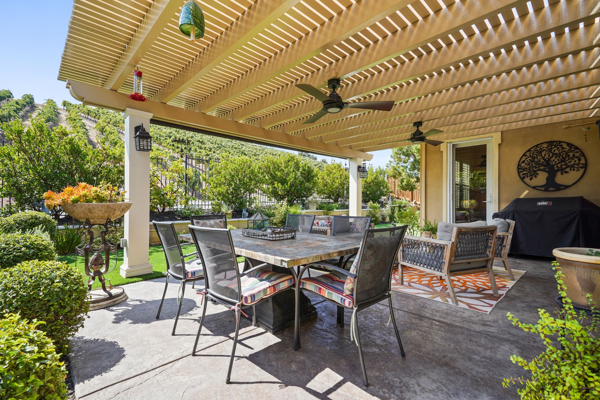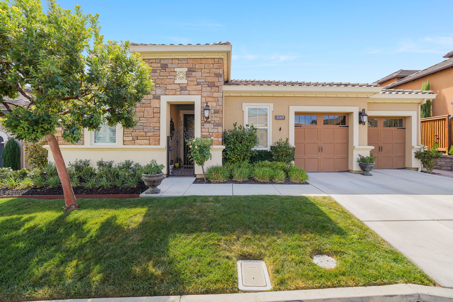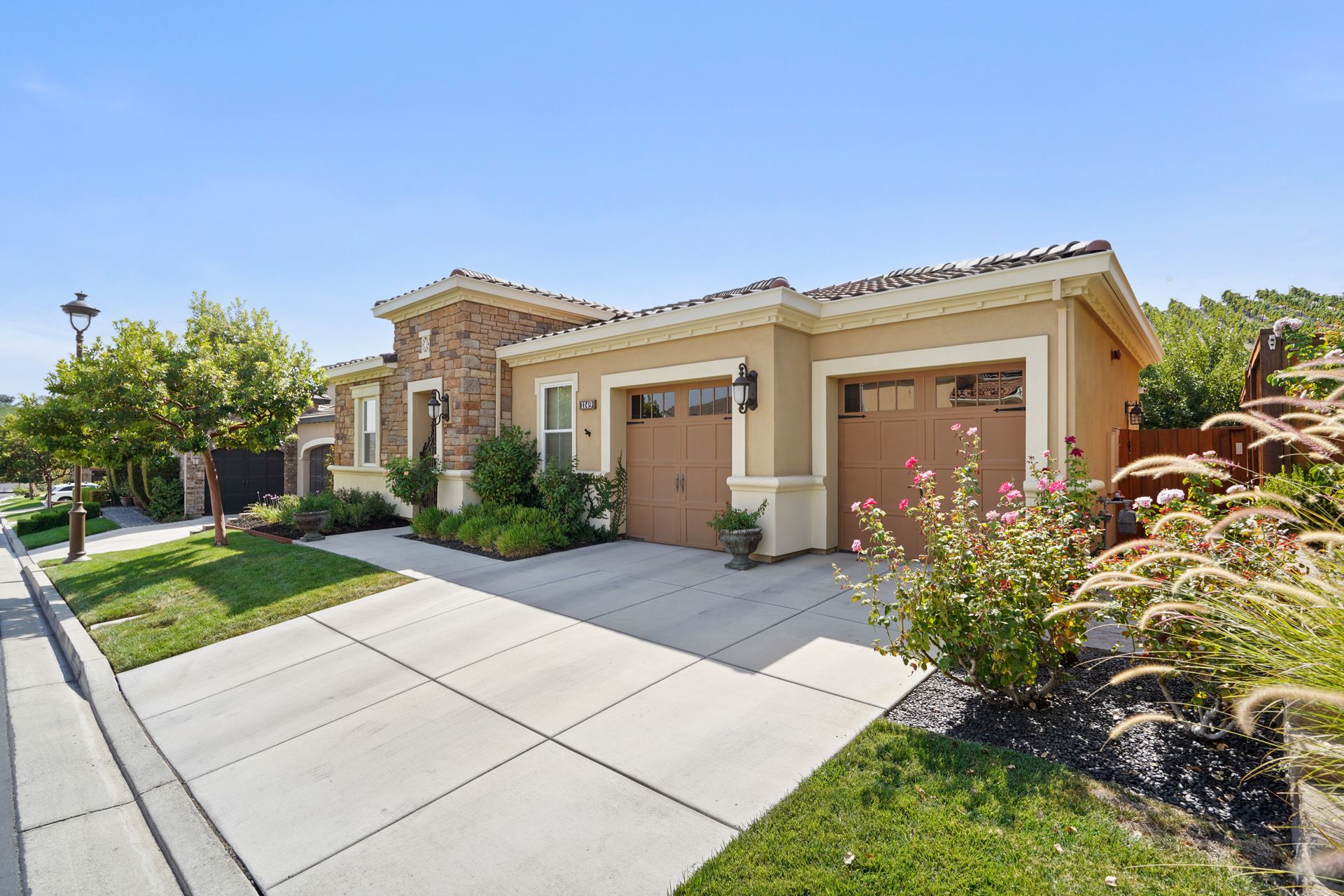 Welcome to 1149 Saint Julien Street. If you are looking for a stunning vineyard view home, this is it! Located in the desirable Bordeaux Village of Trilogy Vineyards, this home has everything for today’s discerning buyer. Desirable and sought after, the Costa Dorada model features two bedrooms, a den with French doors with room for a closet, a great room with a gourmet chef’s kitchen, a center island and pantry, spacious open concept living and dining spaces with walls of windows. The backyard with its expansive views of the vineyard, the custom pergola with fans is an ideal place to relax and enjoy the California indoor-outdoor lifestyle. Other features of this home include high ceilings, exquisite finishes, newer premium appliances, an expanded garage with room for a golf cart or workshop and prewired with 420 volts for an electric car charging system, drought tolerant landscaping, top grade artificial turf, beautiful courtyard entry with custom leaded glass front door. Other amenities include tesla solar lease, an energy efficient tankless hot water heater, a whole house water filtration system and a water softener system. This home has everything you need to live the good life in Trilogy. Trilogy Vineyards is the premiere 55 plus resort community with a world-class clubhouse with a spa and restaurant, tennis and pickleball, a full service gym, resort style swimming pools and much more.