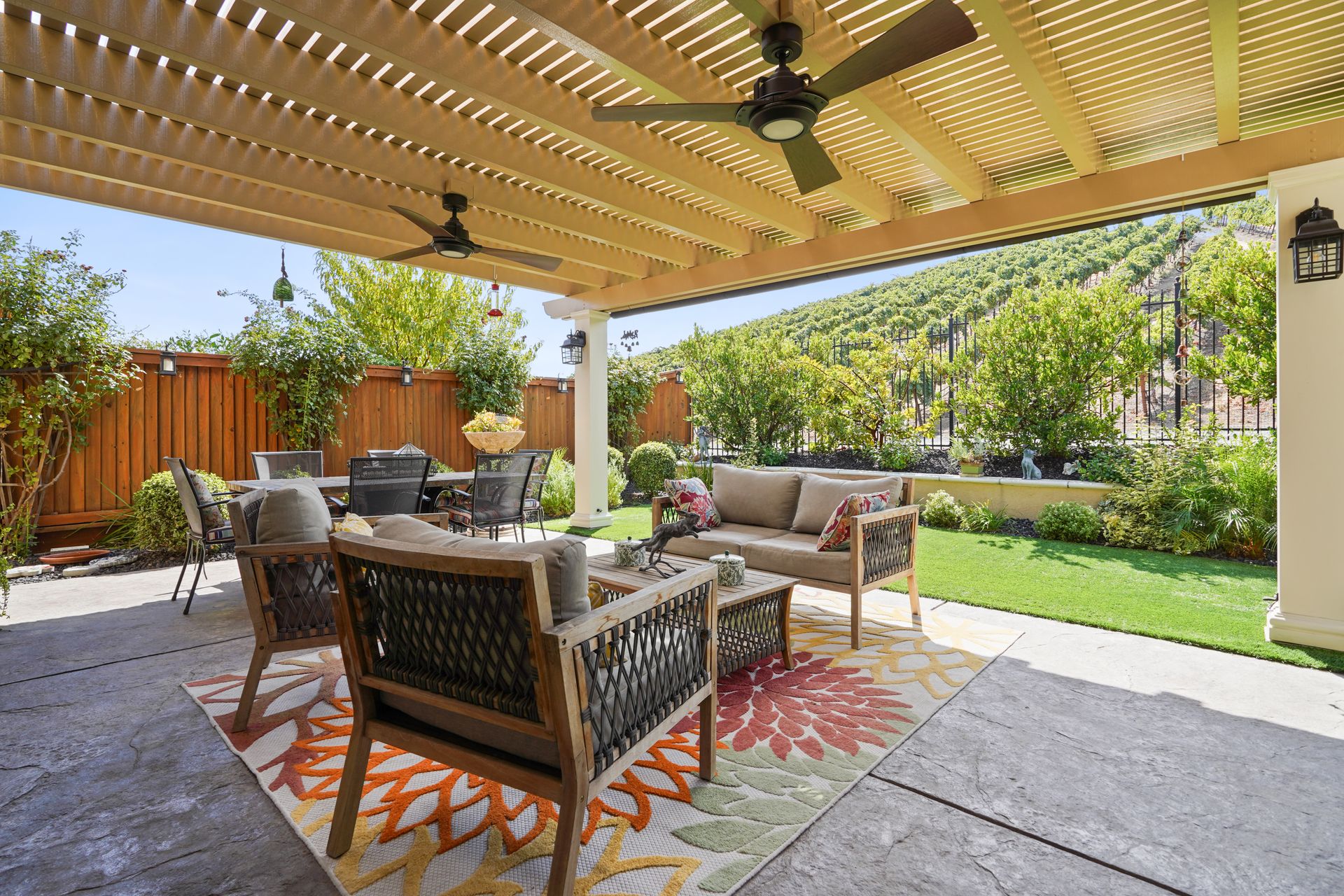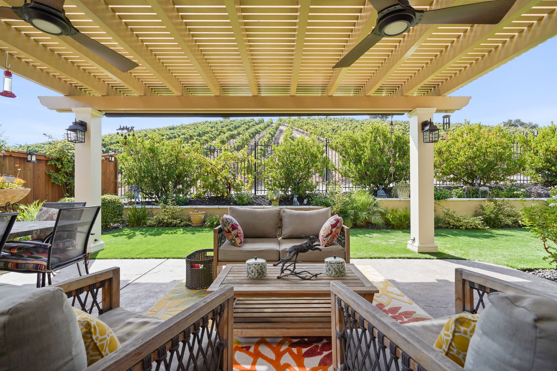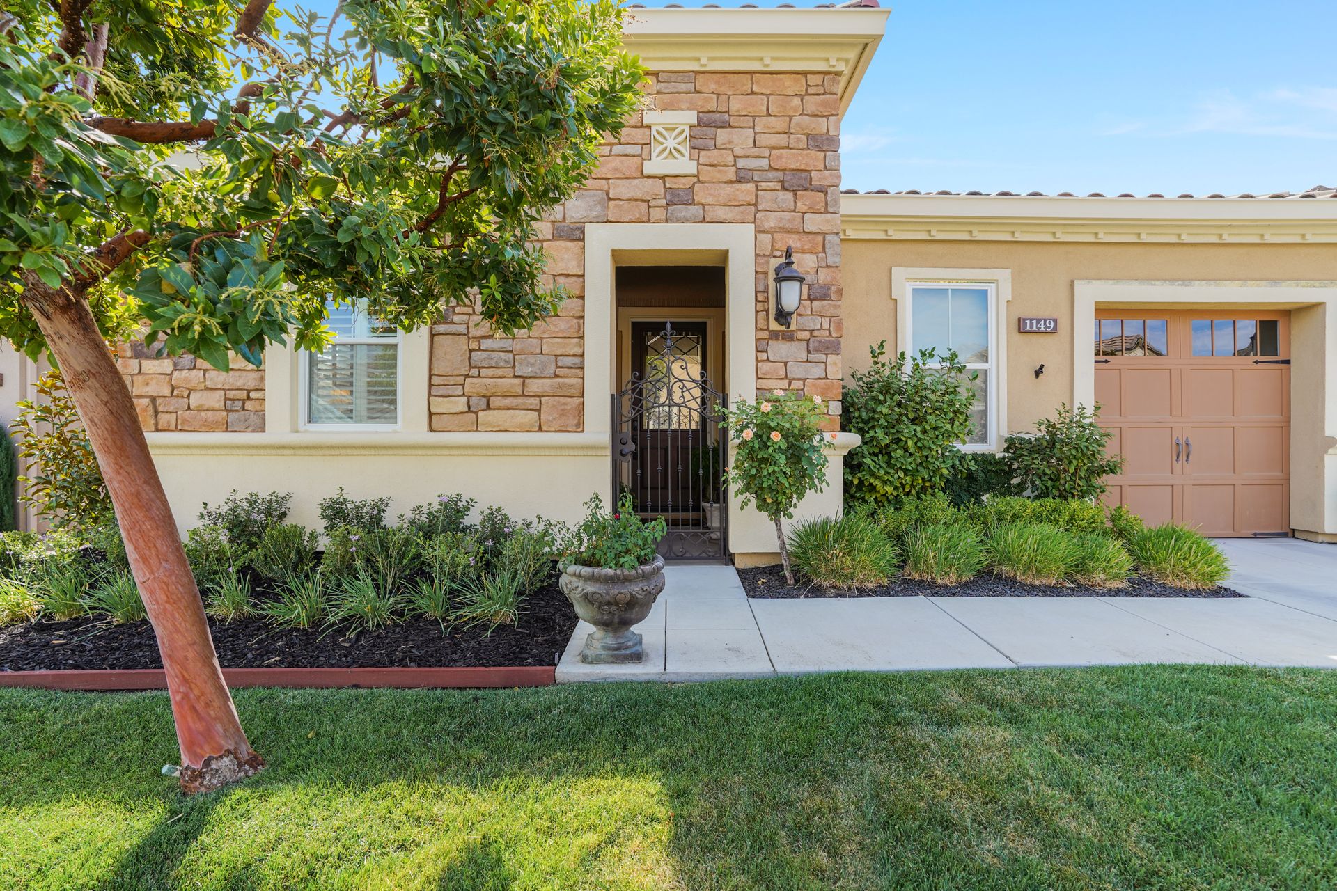 Welcome to 1149 Saint Julien Street. If you are looking for a stunning vineyard view home, this is it! Located in the desirable Bordeaux Village of Trilogy Vineyards, this home has everything for today’s discerning buyer. Desirable and sought after, the Costa Dorada model features two bedrooms, a den with French doors with room for a closet, a great room with a gourmet chef’s kitchen, a center island and pantry, spacious open concept living and dining spaces with walls of windows. The backyard with its expansive views of the vineyard, the custom pergola with fans is an ideal place to relax and enjoy the California indoor-outdoor lifestyle. Other features of this home include high ceilings, exquisite finishes, newer premium appliances, an expanded garage with room for a golf cart or workshop and prewired with 420 volts for an electric car charging system, drought tolerant landscaping, top grade artificial turf, beautiful courtyard entry with custom leaded glass front door. Other amenities include tesla solar lease, an energy efficient tankless hot water heater, a whole house water filtration system and a water softener system. This home has everything you need to live the good life in Trilogy. Trilogy Vineyards is the premiere 55 plus resort community with a world-class clubhouse with a spa and restaurant, tennis and pickleball, a full service gym, resort style swimming pools and much more.