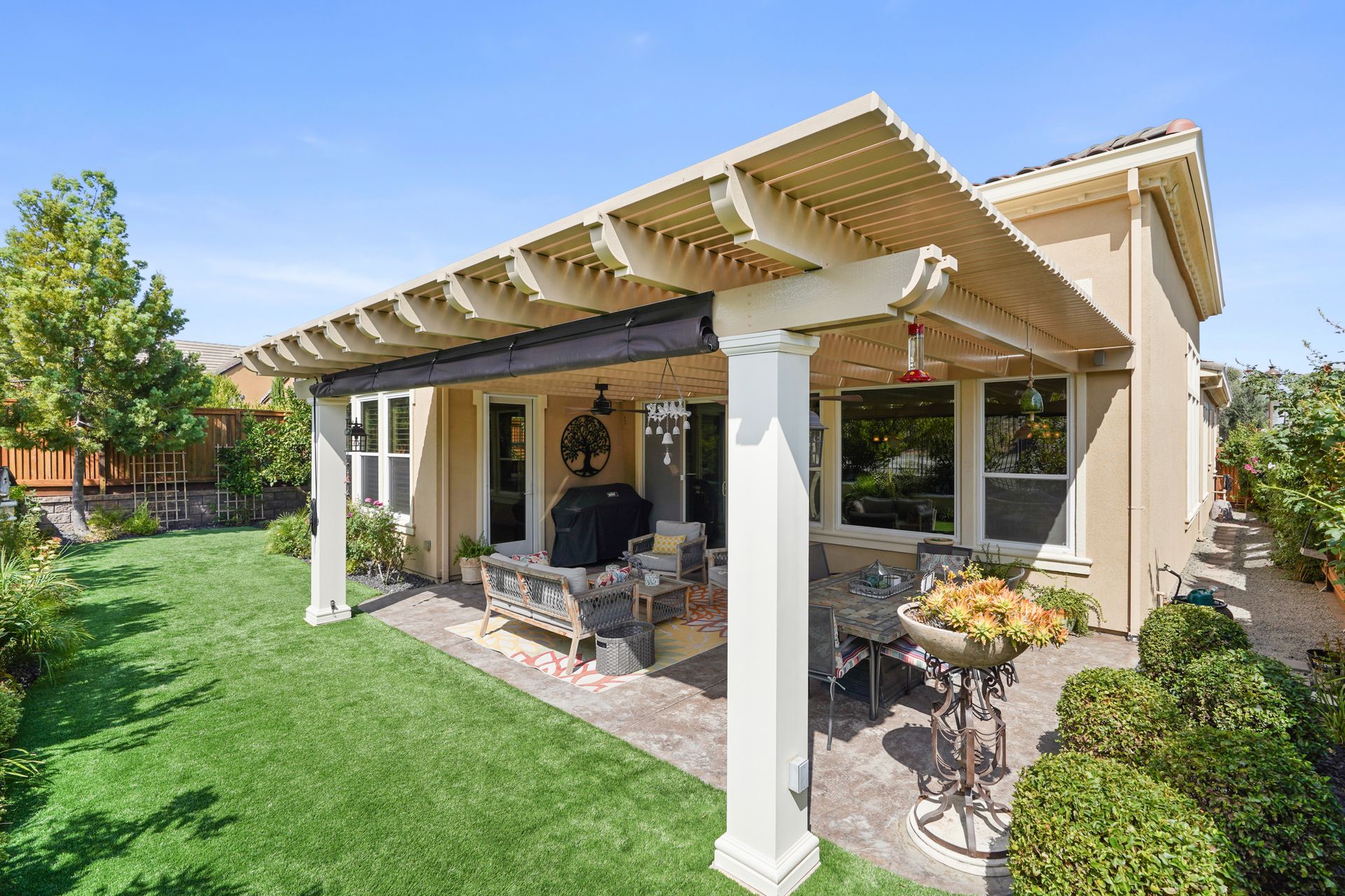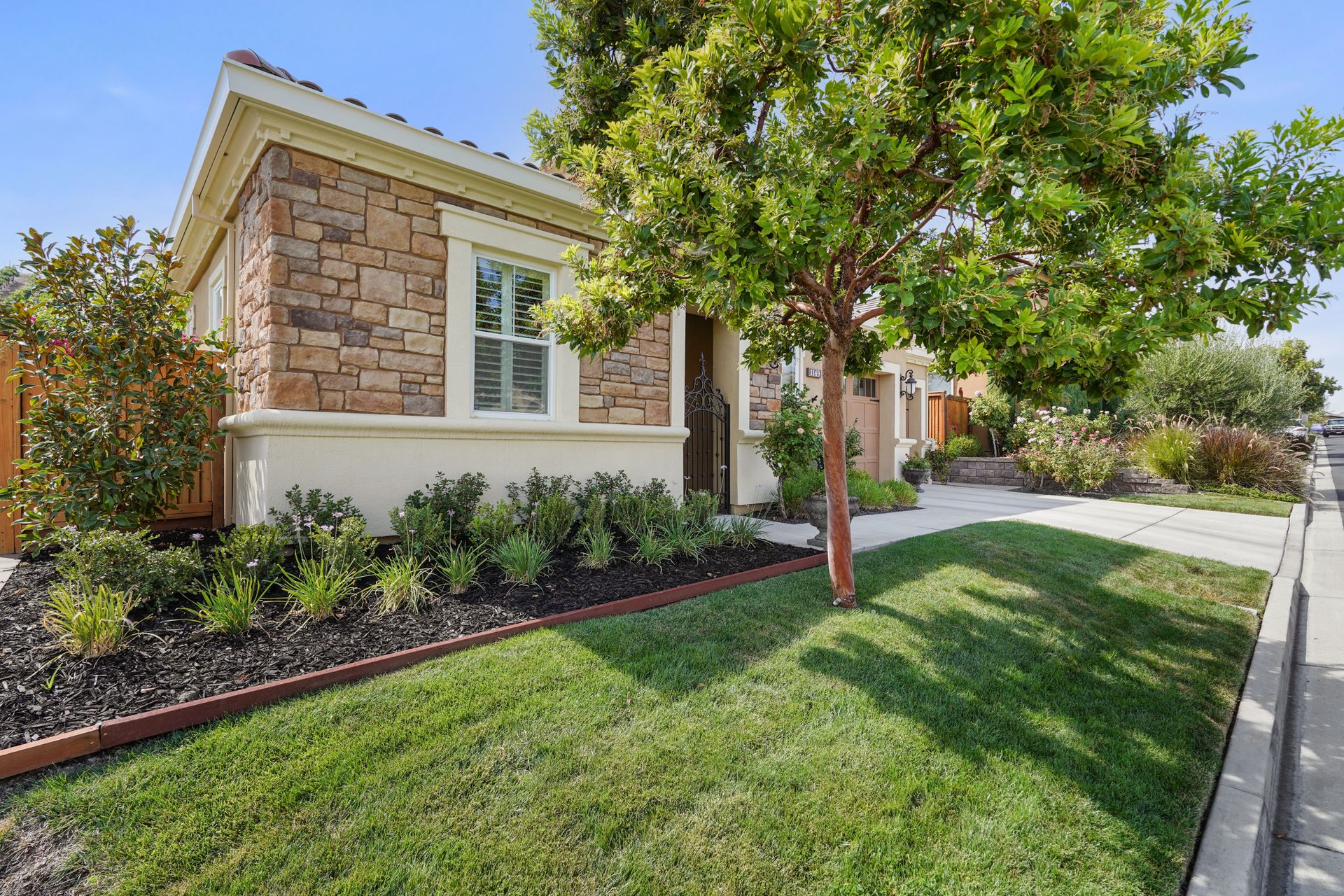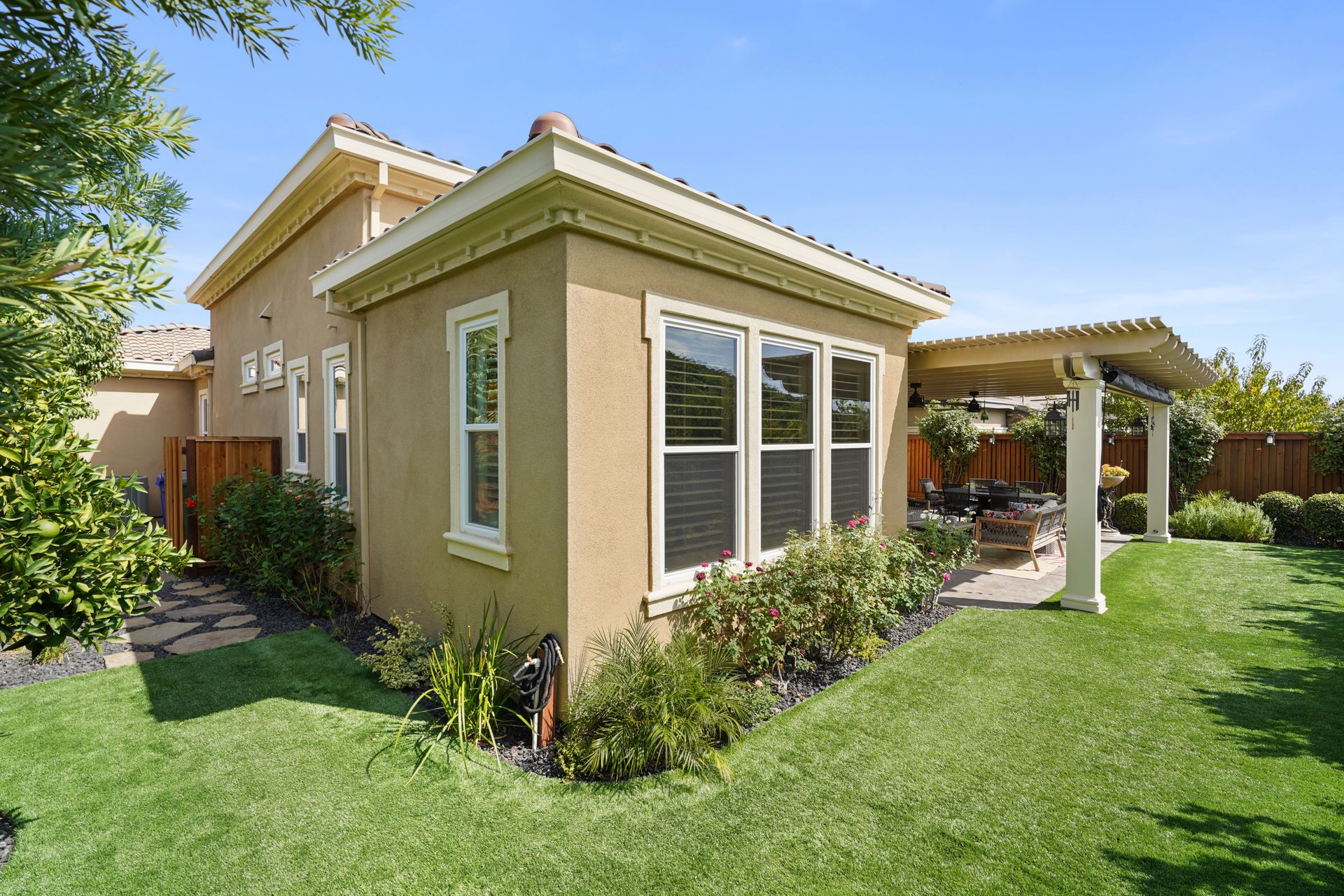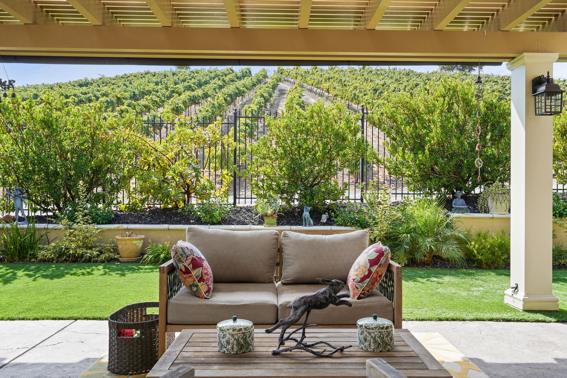 Welcome to 1149 Saint Julien Street. If you are looking for a stunning vineyard view home, this is it! Located in the desirable Bordeaux Village of Trilogy Vineyards, this home has everything for today’s discerning buyer. Desirable and sought after, the Costa Dorada model features two bedrooms, a den with French doors with room for a closet, a great room with a gourmet chef’s kitchen, a center island and pantry, spacious open concept living and dining spaces with walls of windows. The backyard with its expansive views of the vineyard, the custom pergola with fans is an ideal place to relax and enjoy the California indoor-outdoor lifestyle. Other features of this home include high ceilings, exquisite finishes, newer premium appliances, an expanded garage with room for a golf cart or workshop and prewired with 420 volts for an electric car charging system, drought tolerant landscaping, top grade artificial turf, beautiful courtyard entry with custom leaded glass front door. Other amenities include tesla solar lease, an energy efficient tankless hot water heater, a whole house water filtration system and a water softener system. This home has everything you need to live the good life in Trilogy. Trilogy Vineyards is the premiere 55 plus resort community with a world-class clubhouse with a spa and restaurant, tennis and pickleball, a full service gym, resort style swimming pools and much more.