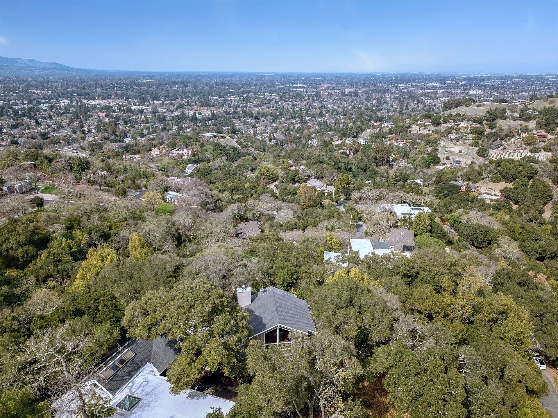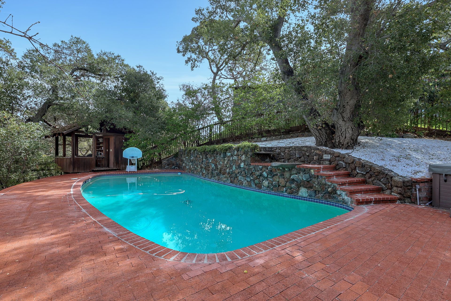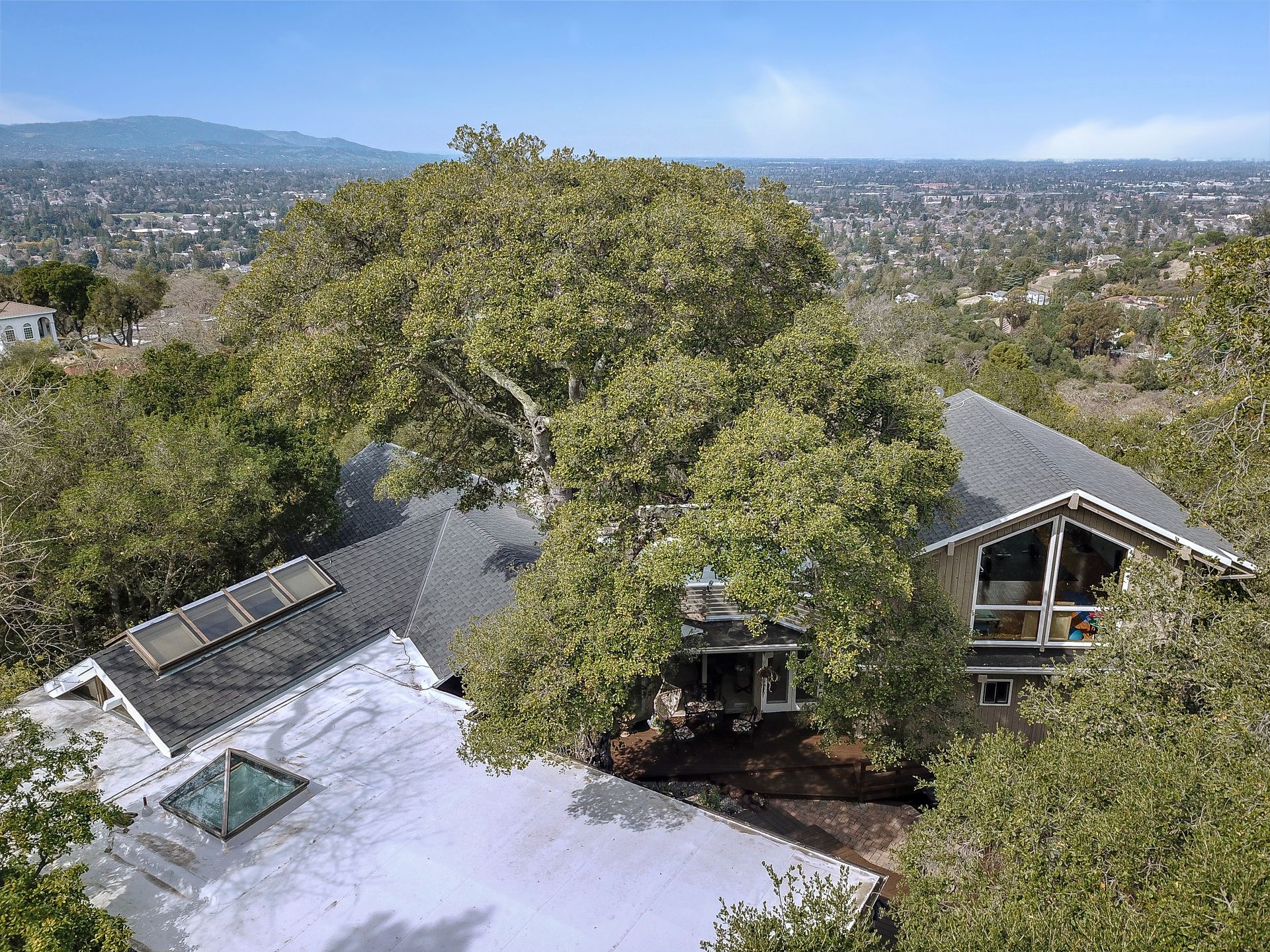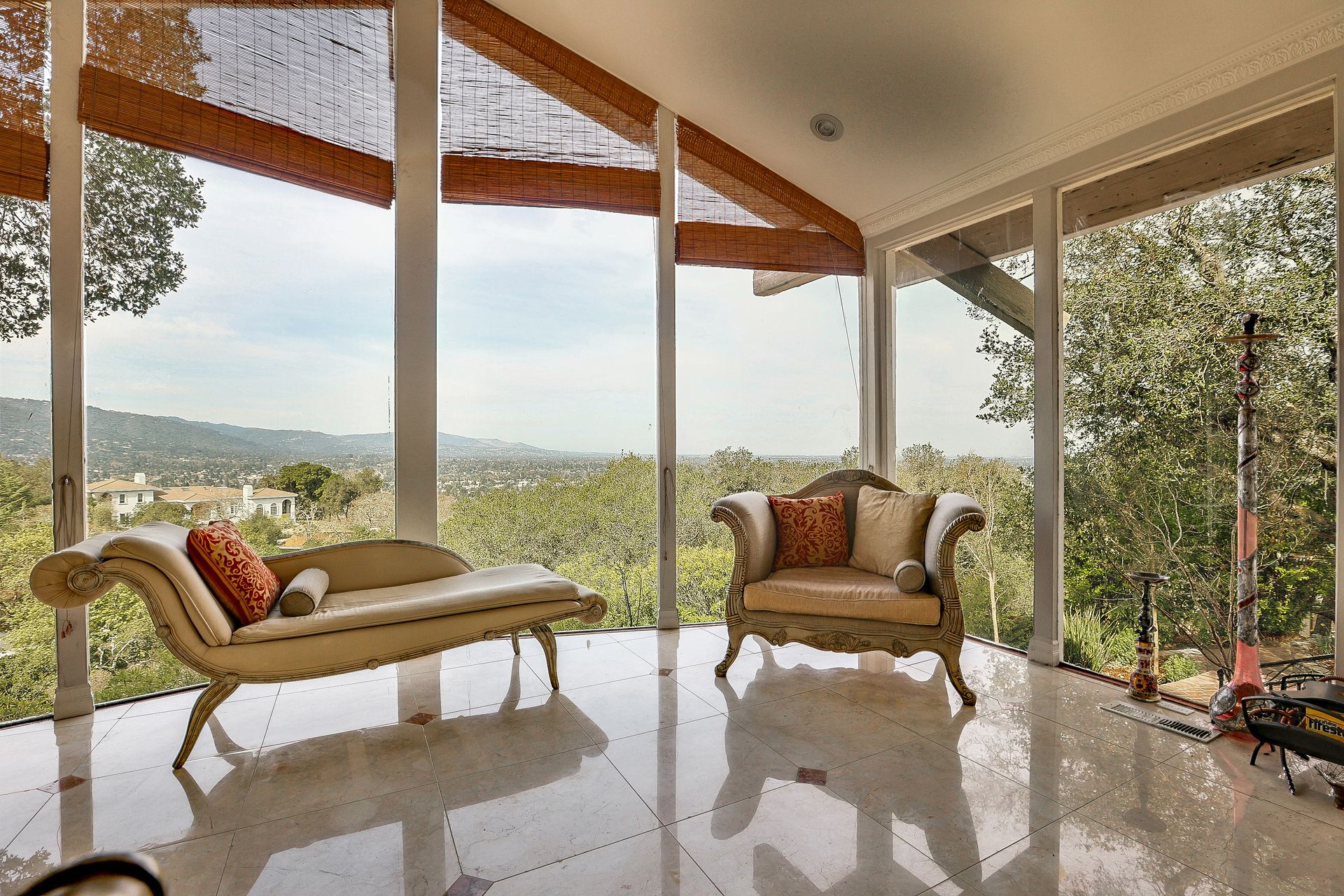 Experience ultimate tranquility in this exquisite and elegantly designed home majestically perched on a private serene Knoll-Top location enhanced by breathtaking phenomenal city light, valley and hillside views from every room in the house. This spectacular one-of-a-kind split-level home sits among mature trees with a resort-like setting and is an immaculate entertainer’s delight. It boasts an excellent floorplan that offers a unique flexible living space with multiple bedroom suites spread along two separate wings, ideal for private guest quarters. Unwind on the large private rooftop terrace with expansive views of the city or sip your wine and relax in the large raised jacuzzi or sparkling pool with commanding views of the valley. Step up the grand entry into the spacious living room with a cozy fireplace, vaulted ceilings, granite floor and vast windows overlooking city lights. The upgraded kitchen boasts granite countertops, a farm sink, stainless-steel appliances, a wine cooler, a breakfast bar, a large island and French doors leading you to the picturesque backyard with a firepit and a tucked away pool and spa, great for entertaining. The upper lounge/artist studio features high, exposed beam ceilings, a fireplace and a kitchenette along with awesome views and a separate private entry. Other amenities include recessed lighting, hardwood and tile floors, walk-in closets, skylights, double paned windows, a newly paved driveway, a water softener, a newly replaced roof, fresh exterior paint, updated lighting, surround sound, a security camera and much more. Enjoy top-rated Los Gatos schools and the short distance to downtown Los Gatos. Approximately 4,000 square feet on a large approximately 38,768 square foot lot with five bedrooms and three baths. This is a must see!