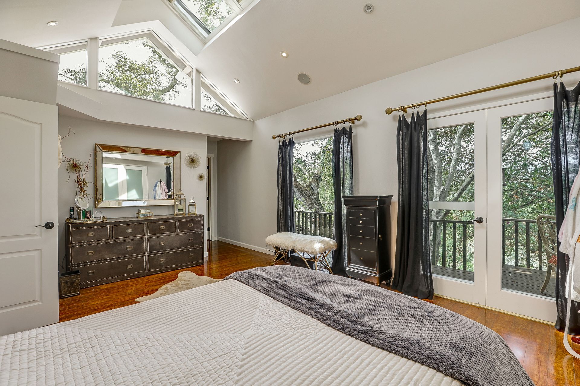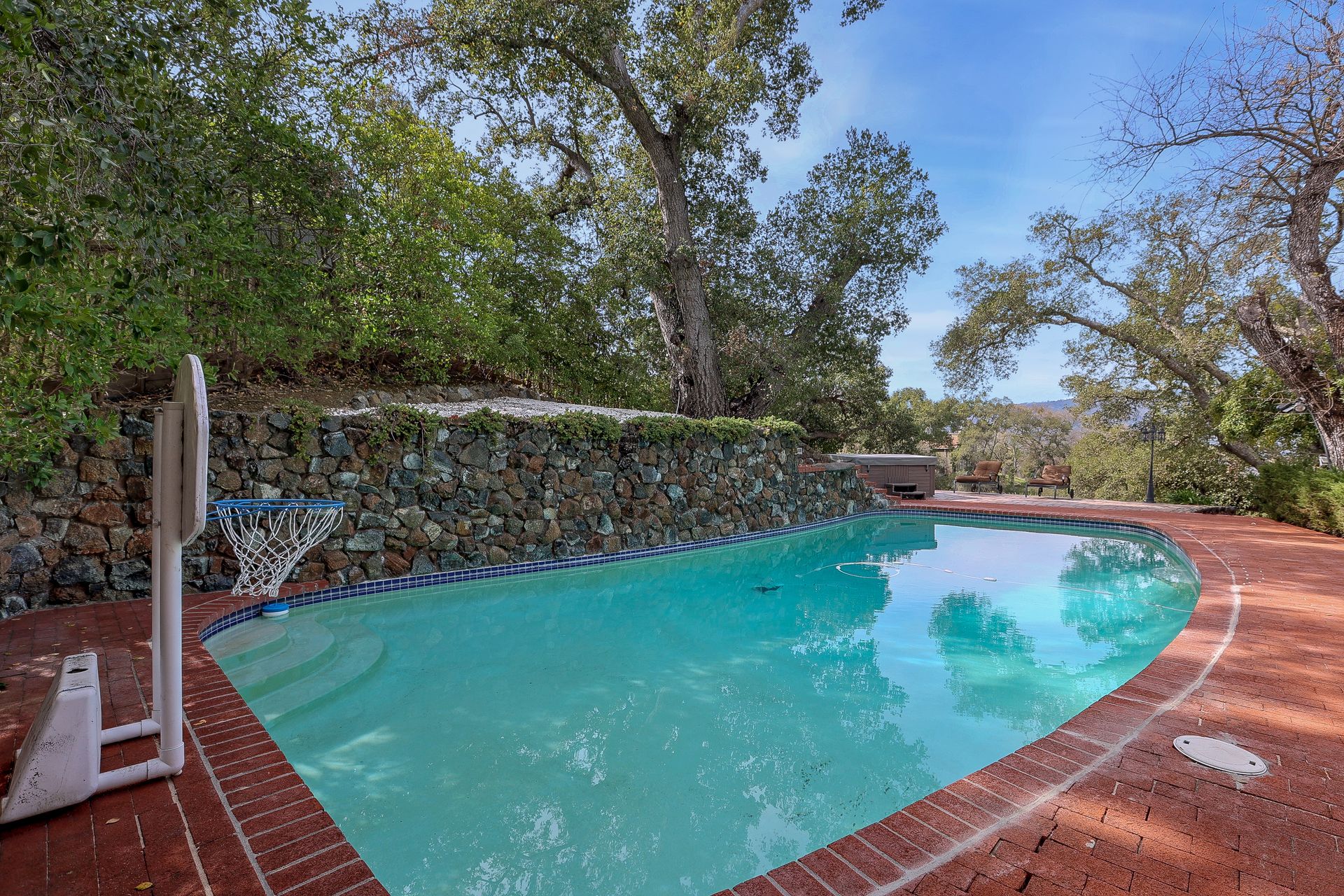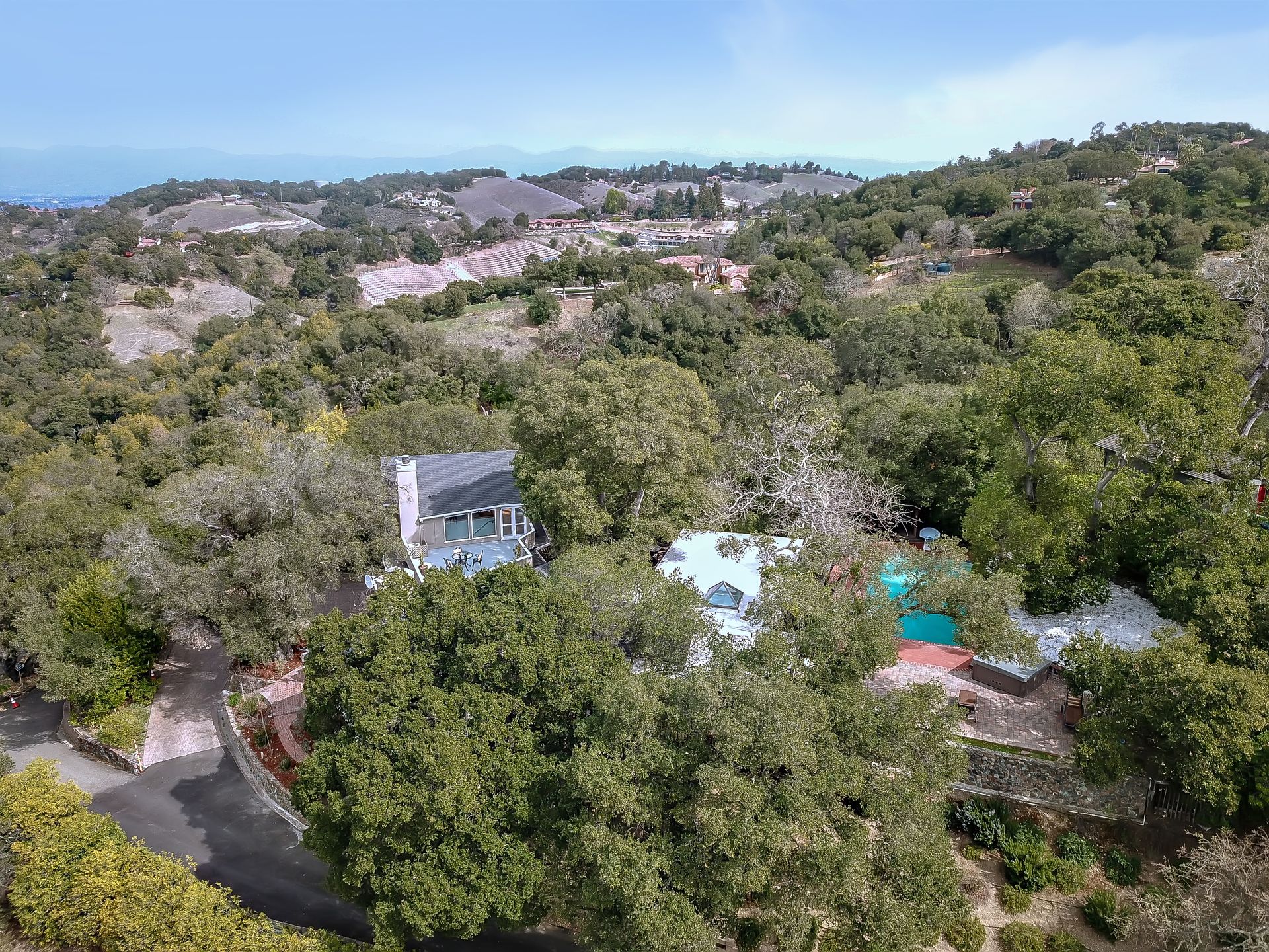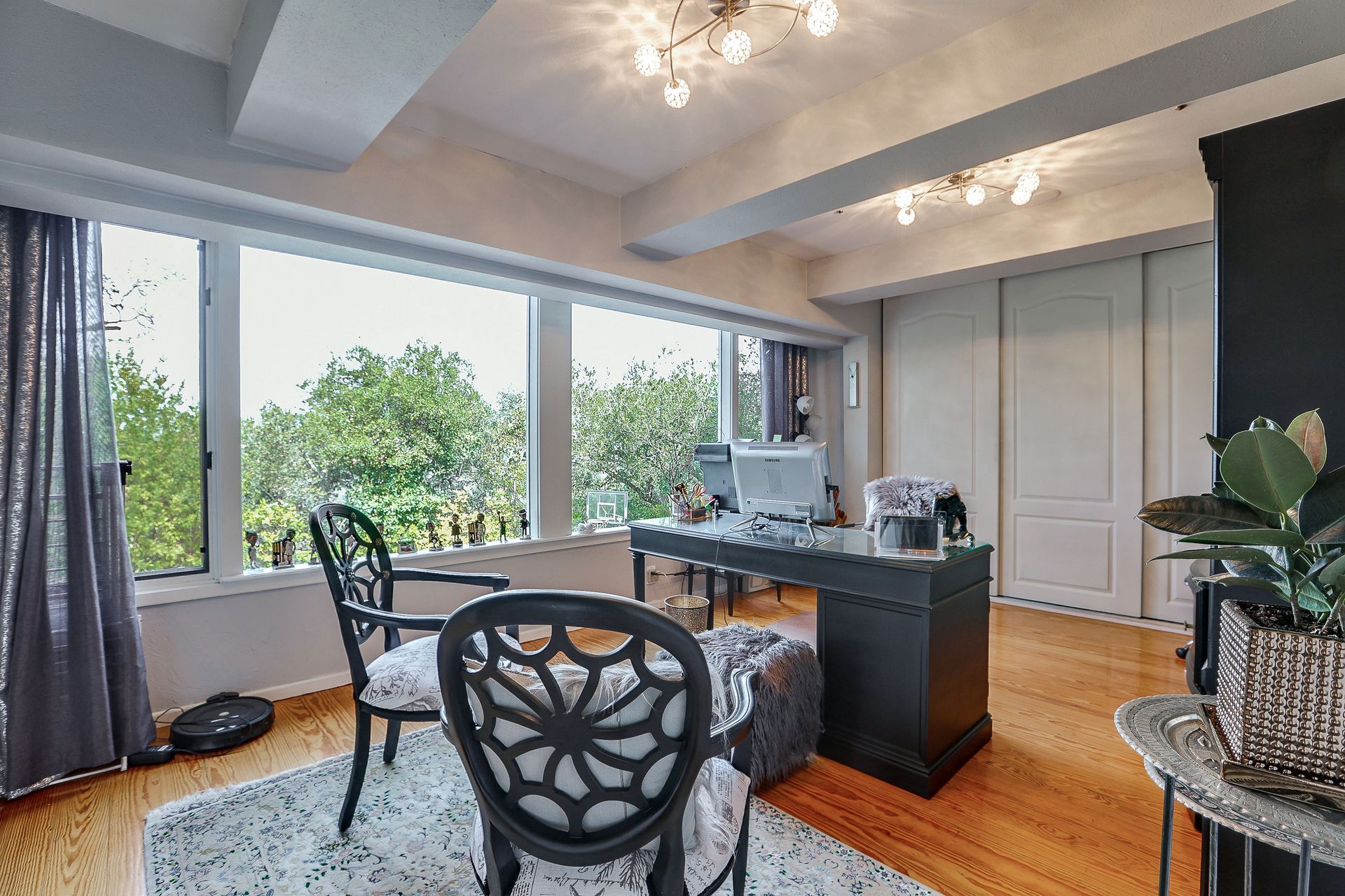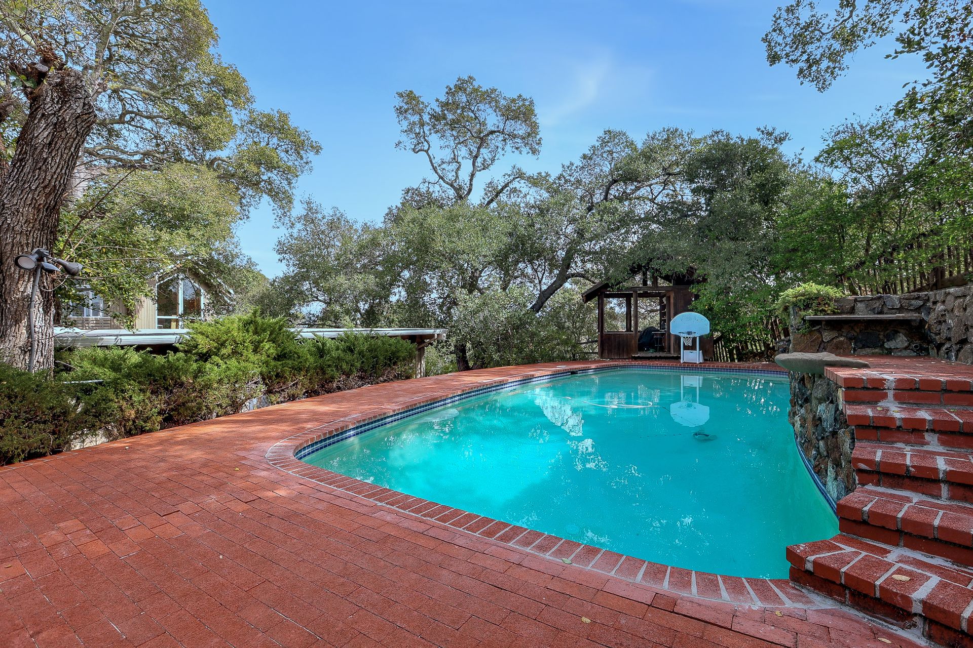 Experience ultimate tranquility in this exquisite and elegantly designed home majestically perched on a private serene Knoll-Top location enhanced by breathtaking phenomenal city light, valley and hillside views from every room in the house. This spectacular one-of-a-kind split-level home sits among mature trees with a resort-like setting and is an immaculate entertainer’s delight. It boasts an excellent floorplan that offers a unique flexible living space with multiple bedroom suites spread along two separate wings, ideal for private guest quarters. Unwind on the large private rooftop terrace with expansive views of the city or sip your wine and relax in the large raised jacuzzi or sparkling pool with commanding views of the valley. Step up the grand entry into the spacious living room with a cozy fireplace, vaulted ceilings, granite floor and vast windows overlooking city lights. The upgraded kitchen boasts granite countertops, a farm sink, stainless-steel appliances, a wine cooler, a breakfast bar, a large island and French doors leading you to the picturesque backyard with a firepit and a tucked away pool and spa, great for entertaining. The upper lounge/artist studio features high, exposed beam ceilings, a fireplace and a kitchenette along with awesome views and a separate private entry. Other amenities include recessed lighting, hardwood and tile floors, walk-in closets, skylights, double paned windows, a newly paved driveway, a water softener, a newly replaced roof, fresh exterior paint, updated lighting, surround sound, a security camera and much more. Enjoy top-rated Los Gatos schools and the short distance to downtown Los Gatos. Approximately 4,000 square feet on a large approximately 38,768 square foot lot with five bedrooms and three baths. This is a must see!