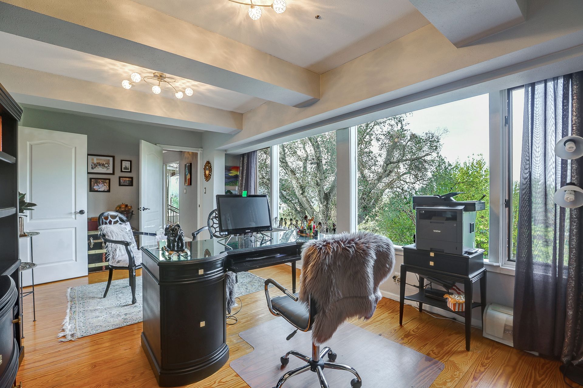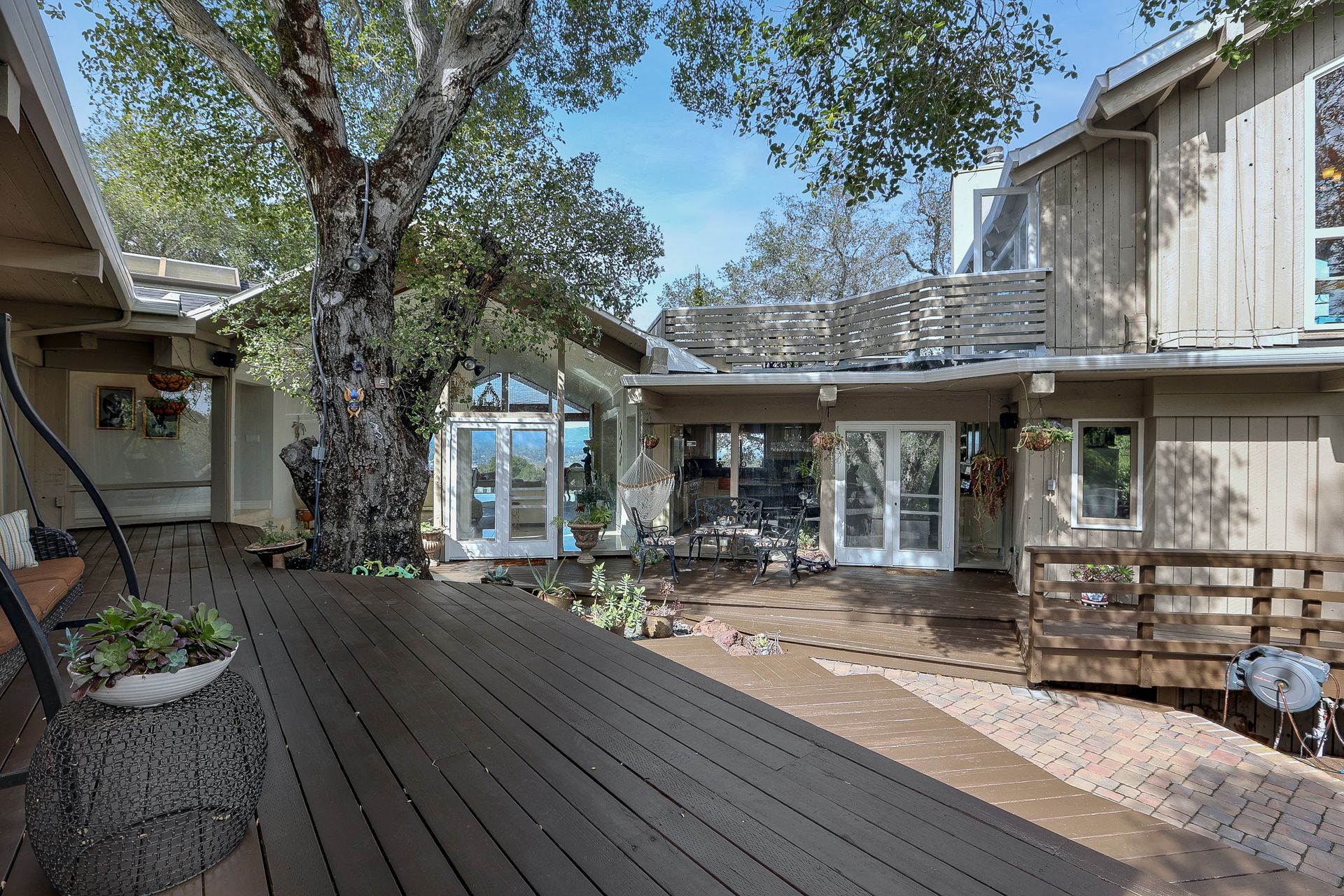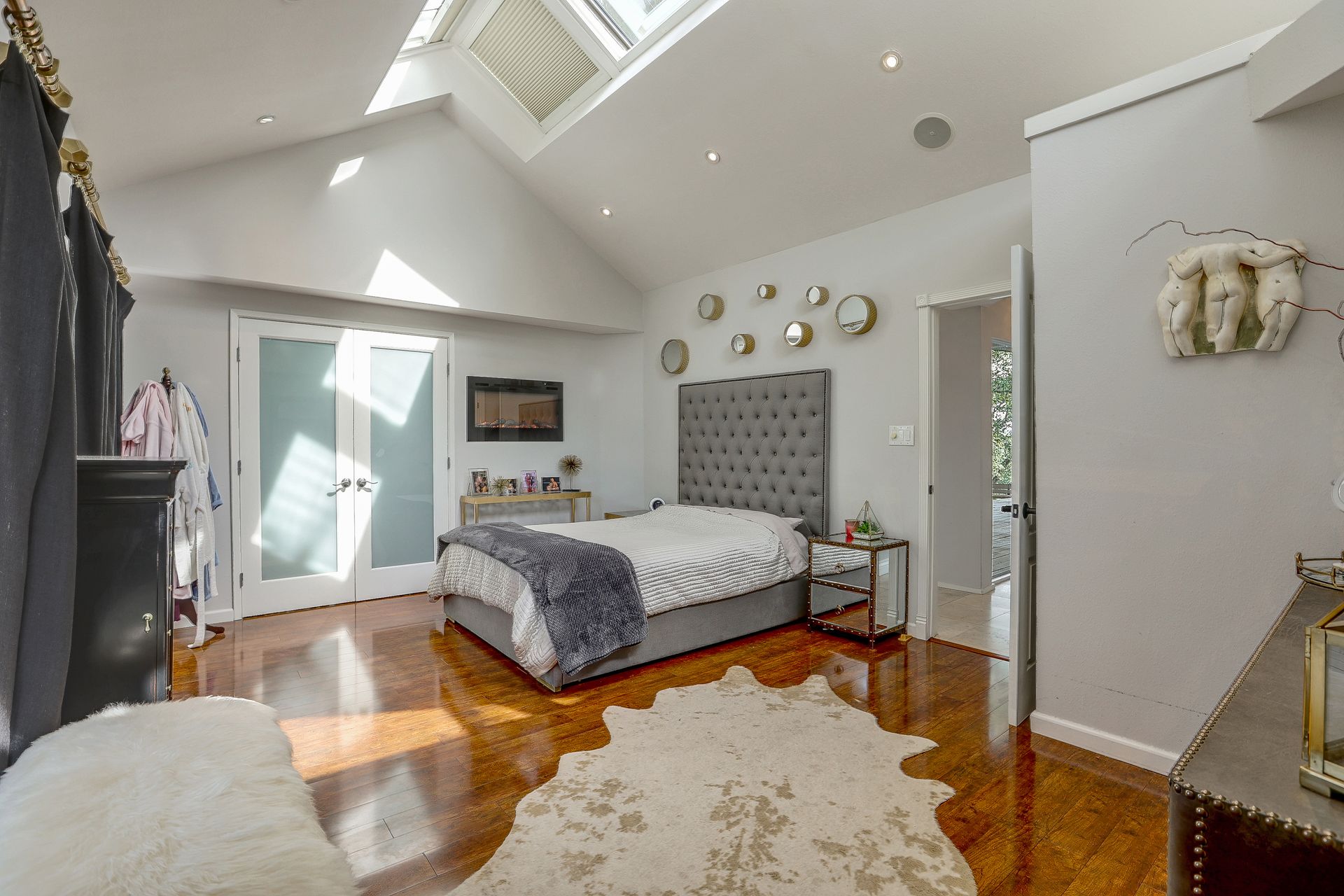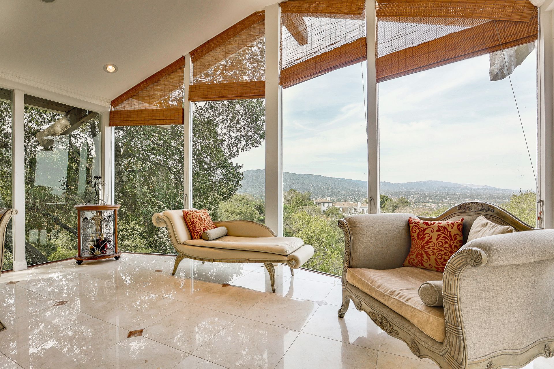 Experience ultimate tranquility in this exquisite and elegantly designed home majestically perched on a private serene Knoll-Top location enhanced by breathtaking phenomenal city light, valley and hillside views from every room in the house. This spectacular one-of-a-kind split-level home sits among mature trees with a resort-like setting and is an immaculate entertainer’s delight. It boasts an excellent floorplan that offers a unique flexible living space with multiple bedroom suites spread along two separate wings, ideal for private guest quarters. Unwind on the large private rooftop terrace with expansive views of the city or sip your wine and relax in the large raised jacuzzi or sparkling pool with commanding views of the valley. Step up the grand entry into the spacious living room with a cozy fireplace, vaulted ceilings, granite floor and vast windows overlooking city lights. The upgraded kitchen boasts granite countertops, a farm sink, stainless-steel appliances, a wine cooler, a breakfast bar, a large island and French doors leading you to the picturesque backyard with a firepit and a tucked away pool and spa, great for entertaining. The upper lounge/artist studio features high, exposed beam ceilings, a fireplace and a kitchenette along with awesome views and a separate private entry. Other amenities include recessed lighting, hardwood and tile floors, walk-in closets, skylights, double paned windows, a newly paved driveway, a water softener, a newly replaced roof, fresh exterior paint, updated lighting, surround sound, a security camera and much more. Enjoy top-rated Los Gatos schools and the short distance to downtown Los Gatos. Approximately 4,000 square feet on a large approximately 38,768 square foot lot with five bedrooms and three baths. This is a must see!