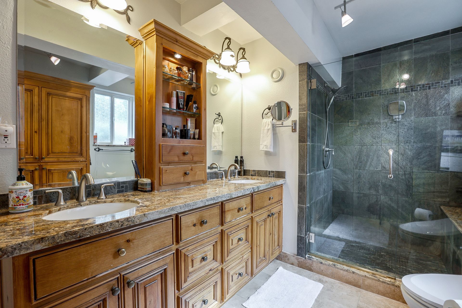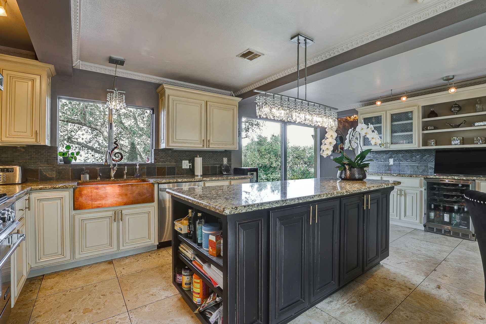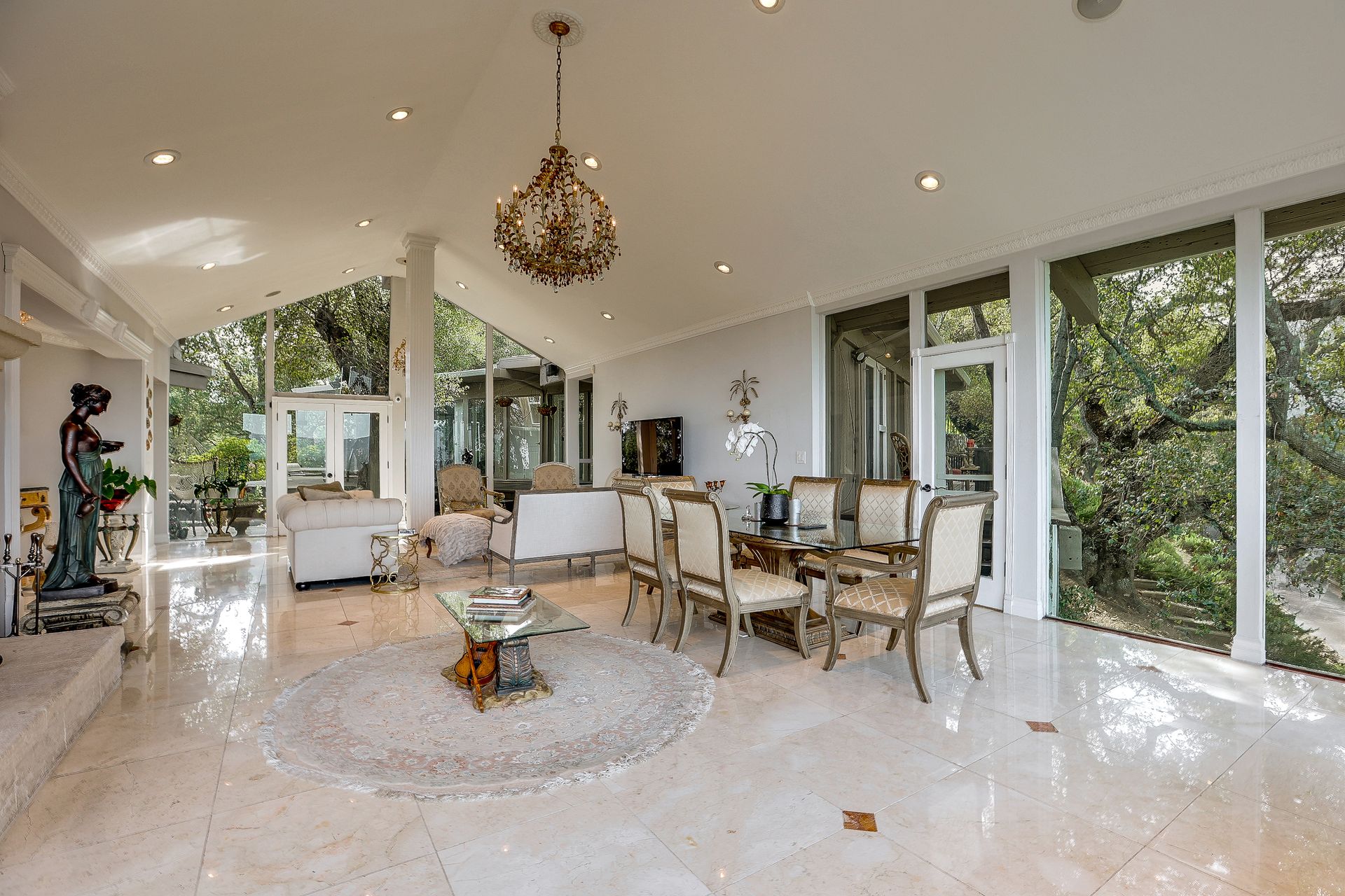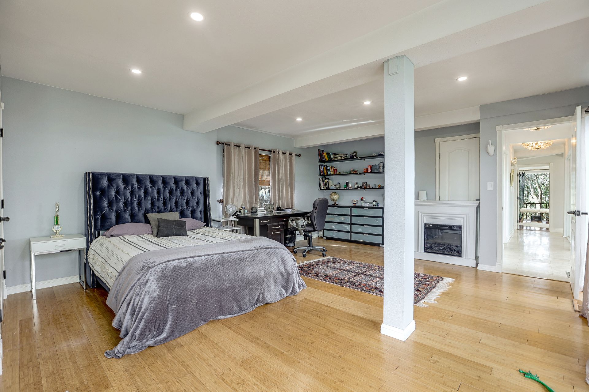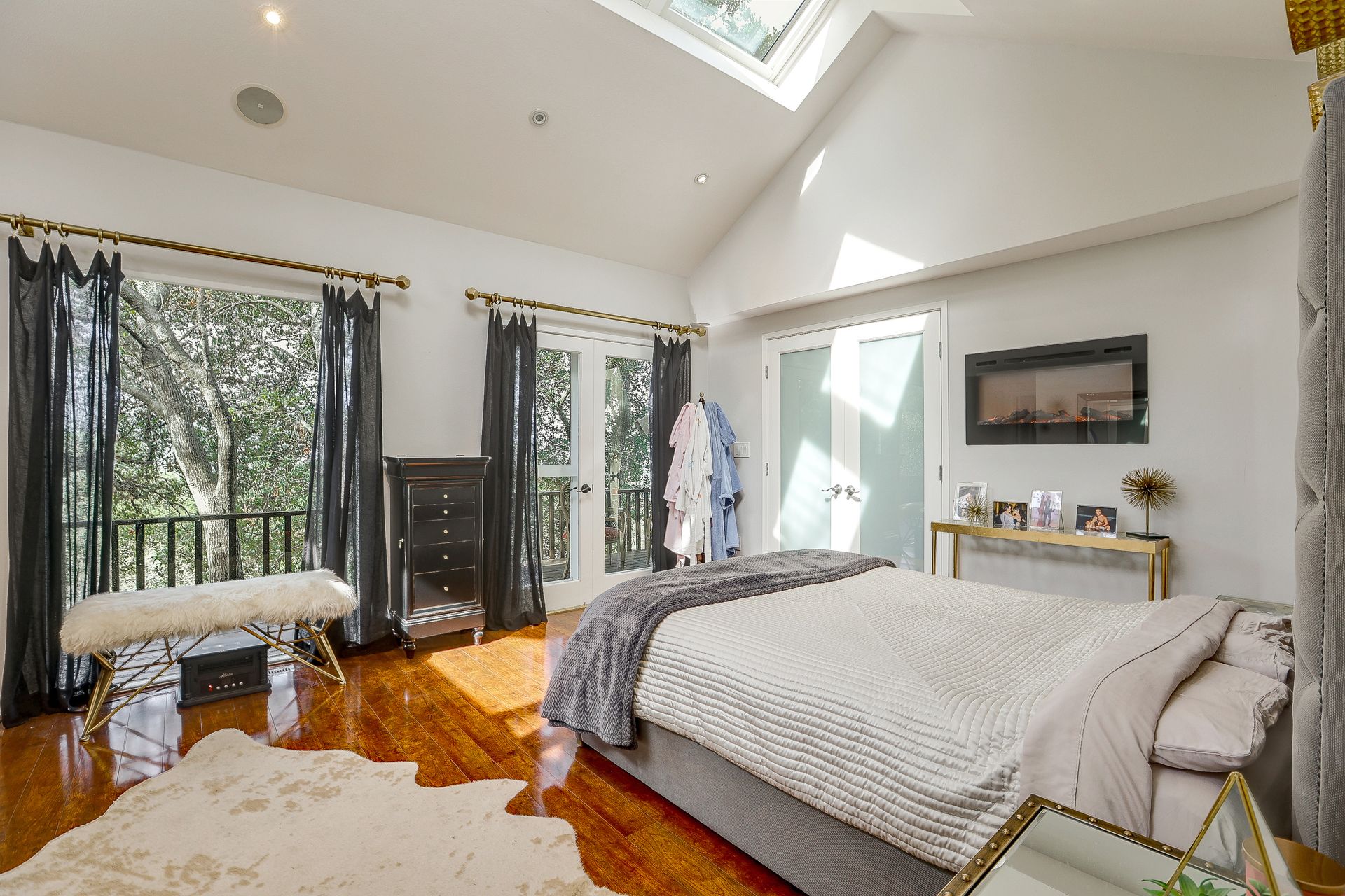 Experience ultimate tranquility in this exquisite and elegantly designed home majestically perched on a private serene Knoll-Top location enhanced by breathtaking phenomenal city light, valley and hillside views from every room in the house. This spectacular one-of-a-kind split-level home sits among mature trees with a resort-like setting and is an immaculate entertainer’s delight. It boasts an excellent floorplan that offers a unique flexible living space with multiple bedroom suites spread along two separate wings, ideal for private guest quarters. Unwind on the large private rooftop terrace with expansive views of the city or sip your wine and relax in the large raised jacuzzi or sparkling pool with commanding views of the valley. Step up the grand entry into the spacious living room with a cozy fireplace, vaulted ceilings, granite floor and vast windows overlooking city lights. The upgraded kitchen boasts granite countertops, a farm sink, stainless-steel appliances, a wine cooler, a breakfast bar, a large island and French doors leading you to the picturesque backyard with a firepit and a tucked away pool and spa, great for entertaining. The upper lounge/artist studio features high, exposed beam ceilings, a fireplace and a kitchenette along with awesome views and a separate private entry. Other amenities include recessed lighting, hardwood and tile floors, walk-in closets, skylights, double paned windows, a newly paved driveway, a water softener, a newly replaced roof, fresh exterior paint, updated lighting, surround sound, a security camera and much more. Enjoy top-rated Los Gatos schools and the short distance to downtown Los Gatos. Approximately 4,000 square feet on a large approximately 38,768 square foot lot with five bedrooms and three baths. This is a must see!