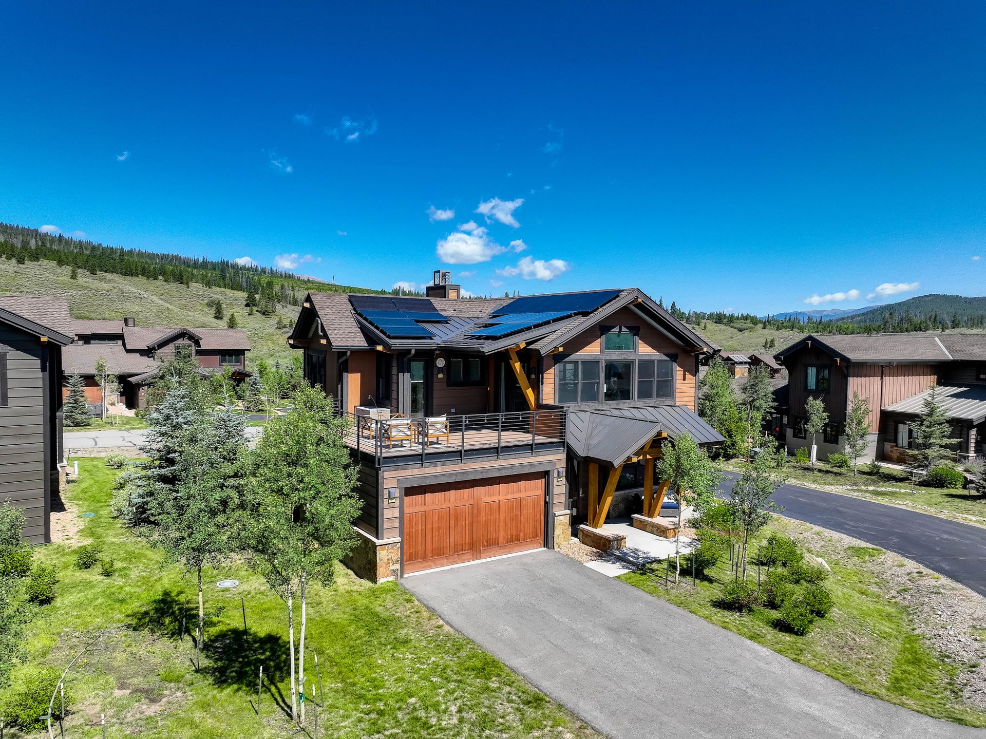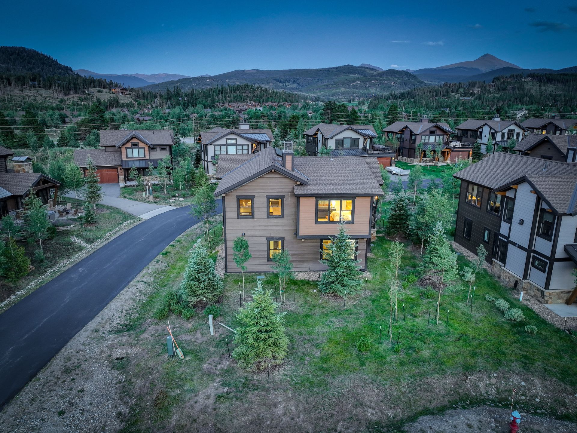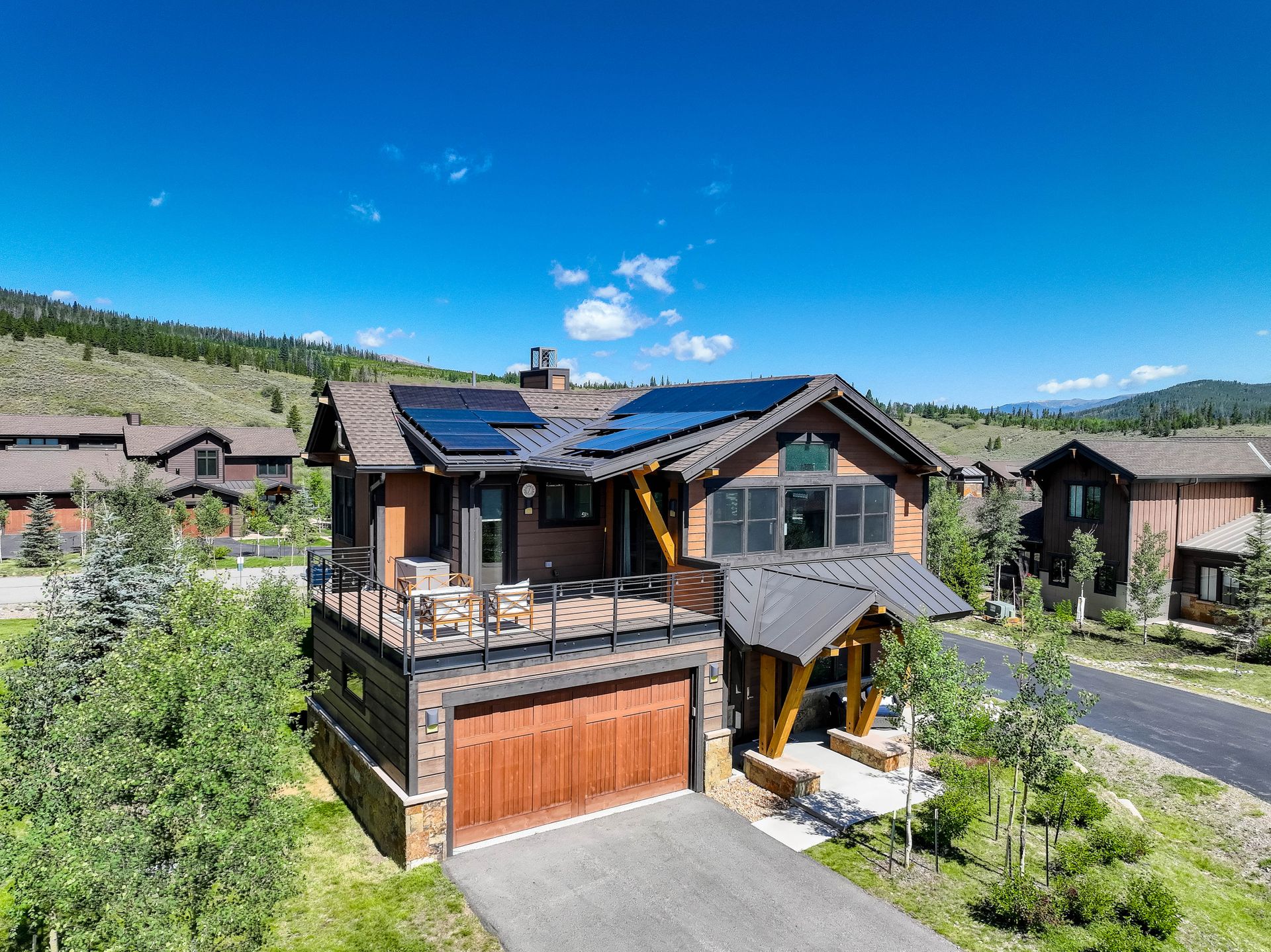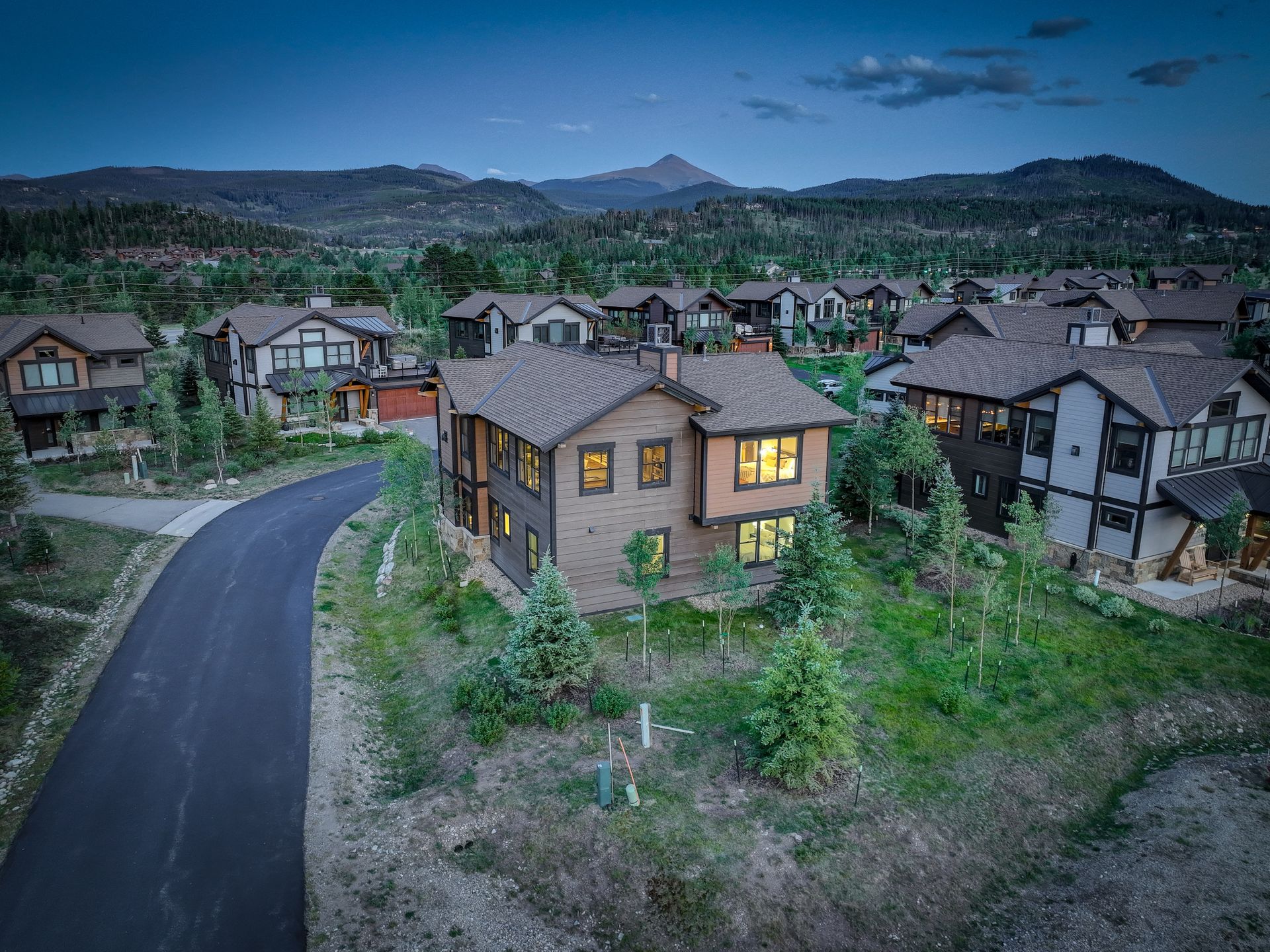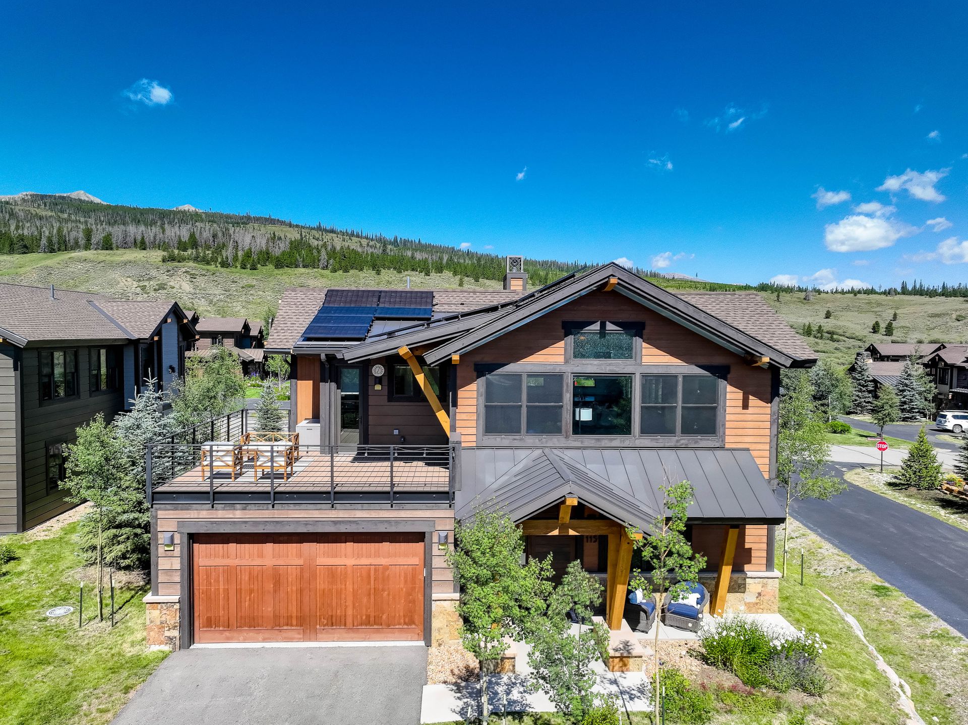 Stunning contemporary mountain two-story. A purposely designed home, modern in its function, taking advantage of second-floor main-level living where the surrounding natural beauty can easily be appreciated. The main level of the home has an inviting open and vaulted floor plan ideal for entertaining. Windows abound and it will be rare you will want to draw the shades. The kitchen is spacious with granite and quartz appointments, cool tone-stained cabinets, hardwood flooring and Bosch appliances. Gracious primary retreat with private access to the rooftop deck. Custom-built-in cabinets and shelving throughout the home and garage for additional storage. Downstairs features two secondary bedrooms, each with an adjoining bath. A large entertaining room and epoxy-coated garage floors for easy cleaning. Sited on one of the larger lots on a corner with amazing panoramic views, including those of the ski mountain. The community adjoins the Blue River and affords residents everything the area has to offer literally minutes from the front door. Begin with the private community river access to the Blue River with fly-fishing opportunities for those seeking gold medal fishing. Wildlife abounds including moose, bear, elk, deer, fox, eagle and mountain cats. Owners enjoy the privacy and seclusion away from the hustle and bustle of downtown Breckenridge while being only minutes away. Golfing at Breckenridge Golf Course is just across Highway 9 and boasts a 27-hole Jack Nicklaus designed course. Some of Colorado’s best hiking is nearby, SUP, kayaking and kiteboarding on nearby Lake Dillon. Ullr Fest, International Snow Sculpture, Oktoberfest, Breckenridge Film Festival and the Wine Classic. This home is truly a home for all seasons. The home does not overlook any details. Power is derived from solar panels, there are radiant heated floors, windows bringing the outdoors in, and a rooftop deck meant to be enjoyed year-round. What better way is there to live?