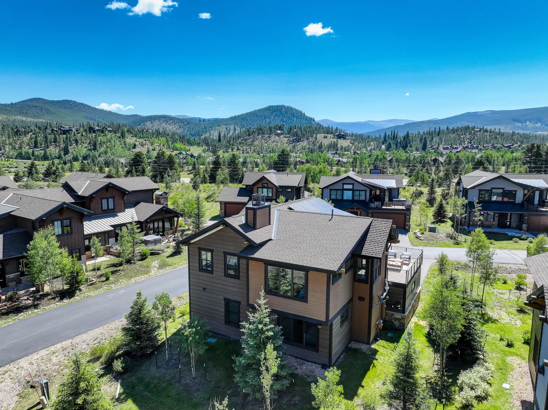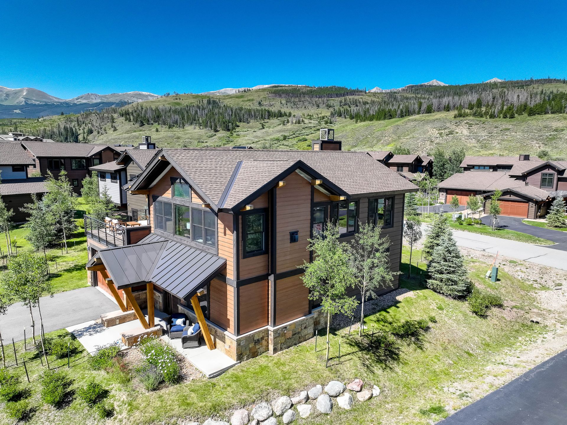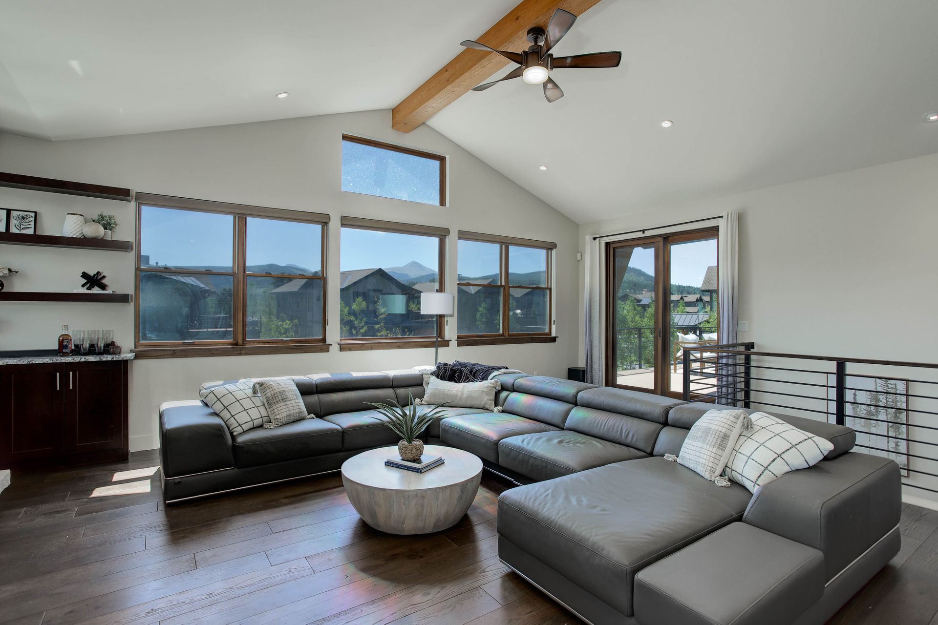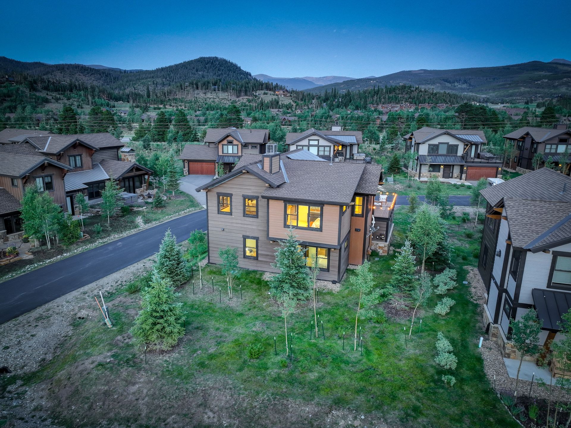 Stunning contemporary mountain two-story. A purposely designed home, modern in its function, taking advantage of second-floor main-level living where the surrounding natural beauty can easily be appreciated. The main level of the home has an inviting open and vaulted floor plan ideal for entertaining. Windows abound and it will be rare you will want to draw the shades. The kitchen is spacious with granite and quartz appointments, cool tone-stained cabinets, hardwood flooring and Bosch appliances. Gracious primary retreat with private access to the rooftop deck. Custom-built-in cabinets and shelving throughout the home and garage for additional storage. Downstairs features two secondary bedrooms, each with an adjoining bath. A large entertaining room and epoxy-coated garage floors for easy cleaning. Sited on one of the larger lots on a corner with amazing panoramic views, including those of the ski mountain. The community adjoins the Blue River and affords residents everything the area has to offer literally minutes from the front door. Begin with the private community river access to the Blue River with fly-fishing opportunities for those seeking gold medal fishing. Wildlife abounds including moose, bear, elk, deer, fox, eagle and mountain cats. Owners enjoy the privacy and seclusion away from the hustle and bustle of downtown Breckenridge while being only minutes away. Golfing at Breckenridge Golf Course is just across Highway 9 and boasts a 27-hole Jack Nicklaus designed course. Some of Colorado’s best hiking is nearby, SUP, kayaking and kiteboarding on nearby Lake Dillon. Ullr Fest, International Snow Sculpture, Oktoberfest, Breckenridge Film Festival and the Wine Classic. This home is truly a home for all seasons. The home does not overlook any details. Power is derived from solar panels, there are radiant heated floors, windows bringing the outdoors in, and a rooftop deck meant to be enjoyed year-round. What better way is there to live?