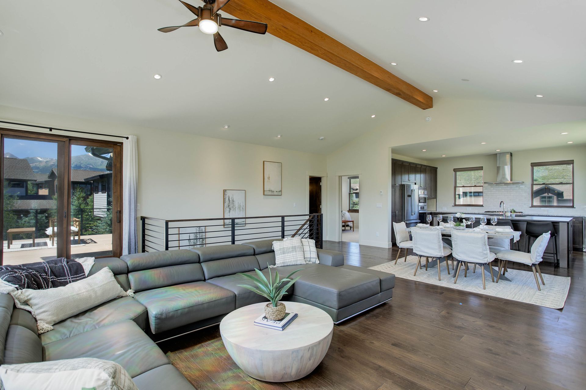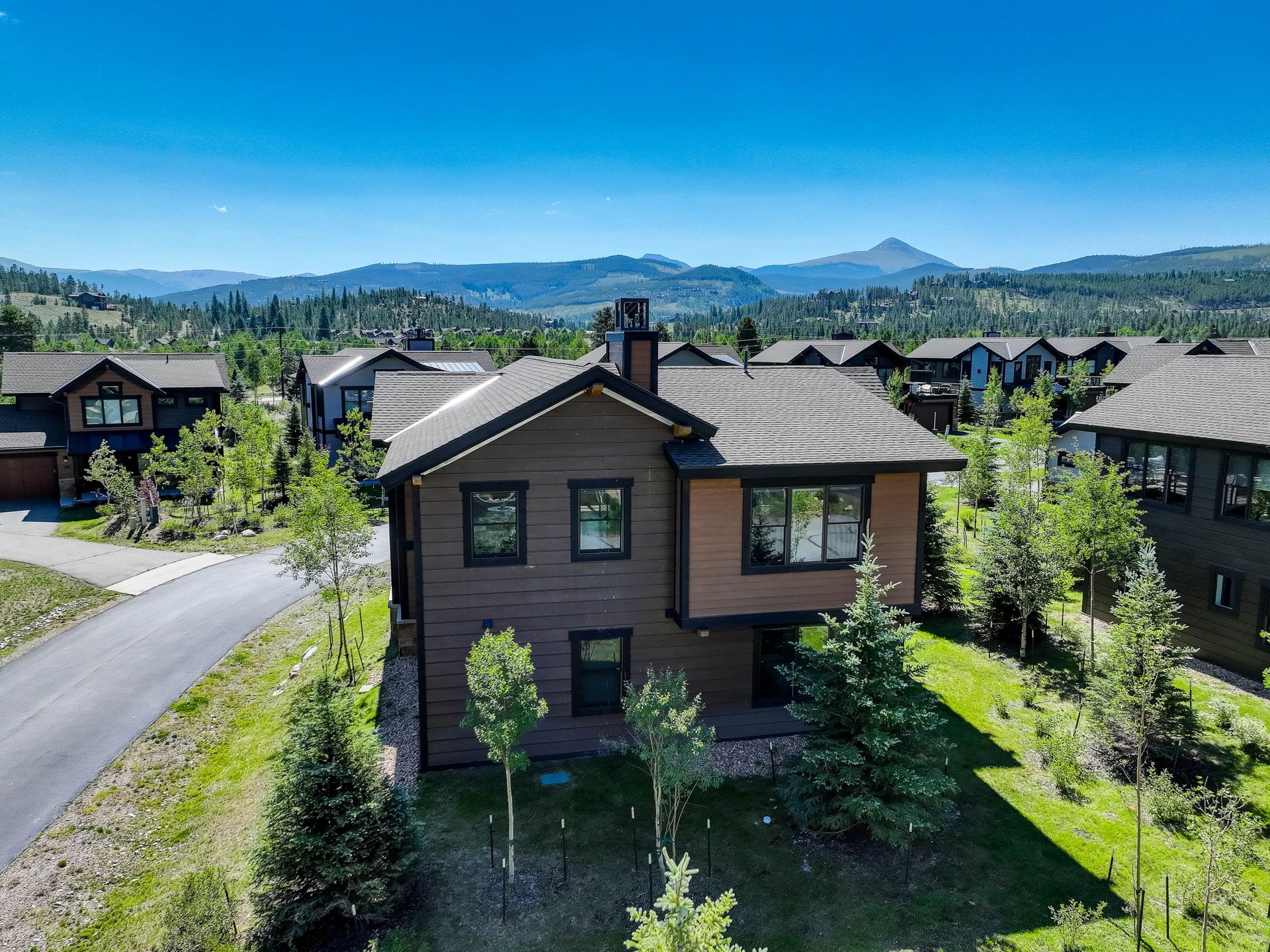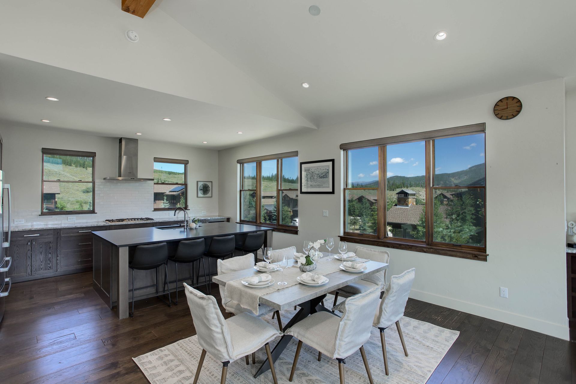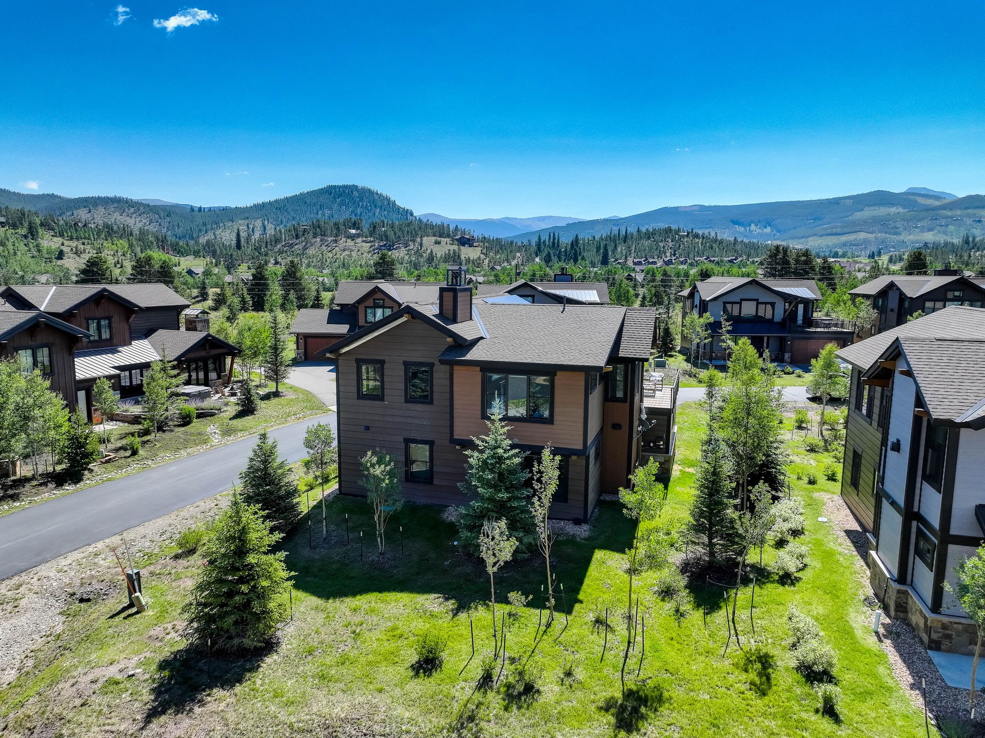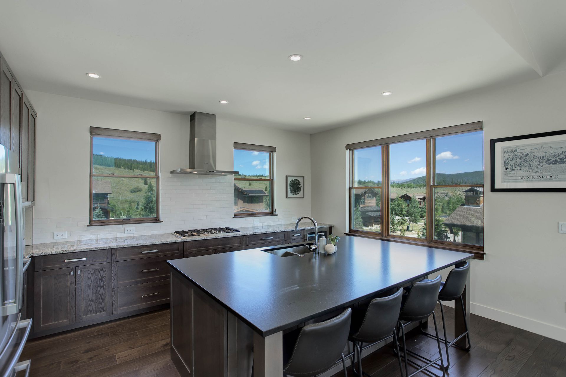 Stunning contemporary mountain two-story. A purposely designed home, modern in its function, taking advantage of second-floor main-level living where the surrounding natural beauty can easily be appreciated. The main level of the home has an inviting open and vaulted floor plan ideal for entertaining. Windows abound and it will be rare you will want to draw the shades. The kitchen is spacious with granite and quartz appointments, cool tone-stained cabinets, hardwood flooring and Bosch appliances. Gracious primary retreat with private access to the rooftop deck. Custom-built-in cabinets and shelving throughout the home and garage for additional storage. Downstairs features two secondary bedrooms, each with an adjoining bath. A large entertaining room and epoxy-coated garage floors for easy cleaning. Sited on one of the larger lots on a corner with amazing panoramic views, including those of the ski mountain. The community adjoins the Blue River and affords residents everything the area has to offer literally minutes from the front door. Begin with the private community river access to the Blue River with fly-fishing opportunities for those seeking gold medal fishing. Wildlife abounds including moose, bear, elk, deer, fox, eagle and mountain cats. Owners enjoy the privacy and seclusion away from the hustle and bustle of downtown Breckenridge while being only minutes away. Golfing at Breckenridge Golf Course is just across Highway 9 and boasts a 27-hole Jack Nicklaus designed course. Some of Colorado’s best hiking is nearby, SUP, kayaking and kiteboarding on nearby Lake Dillon. Ullr Fest, International Snow Sculpture, Oktoberfest, Breckenridge Film Festival and the Wine Classic. This home is truly a home for all seasons. The home does not overlook any details. Power is derived from solar panels, there are radiant heated floors, windows bringing the outdoors in, and a rooftop deck meant to be enjoyed year-round. What better way is there to live?