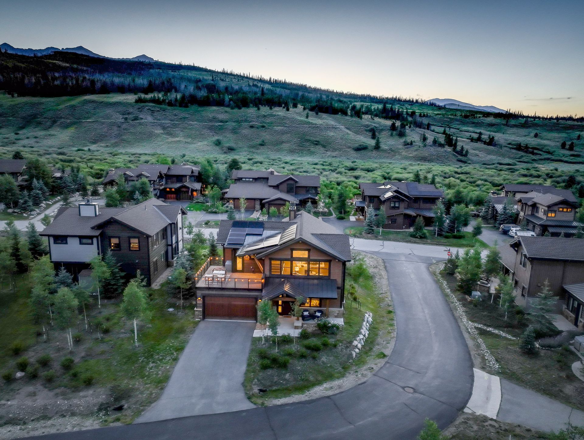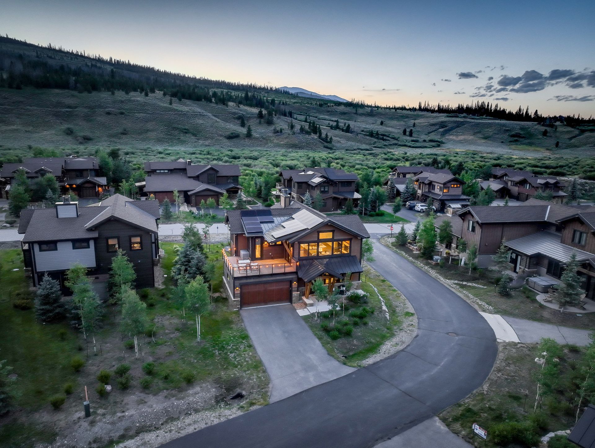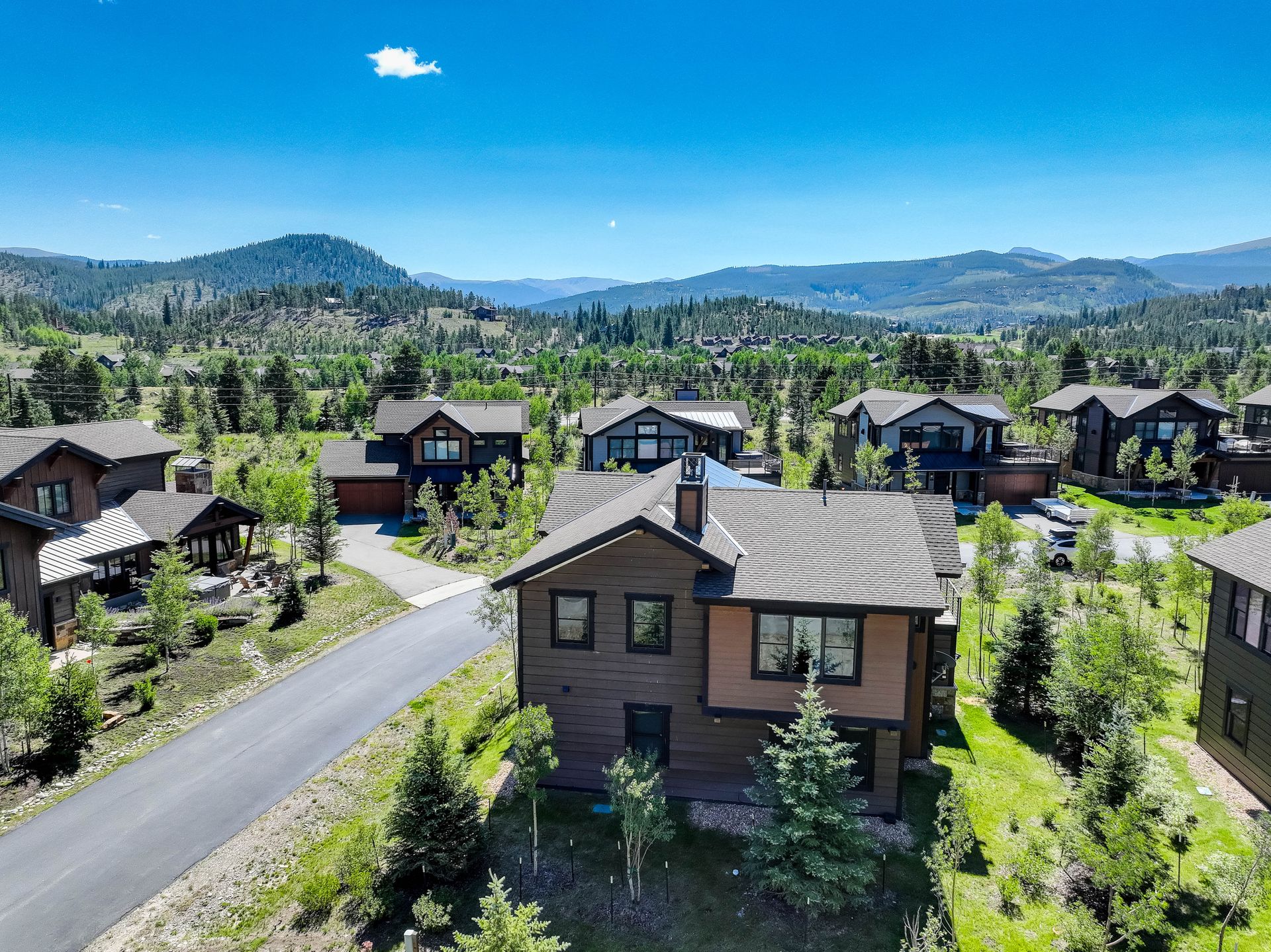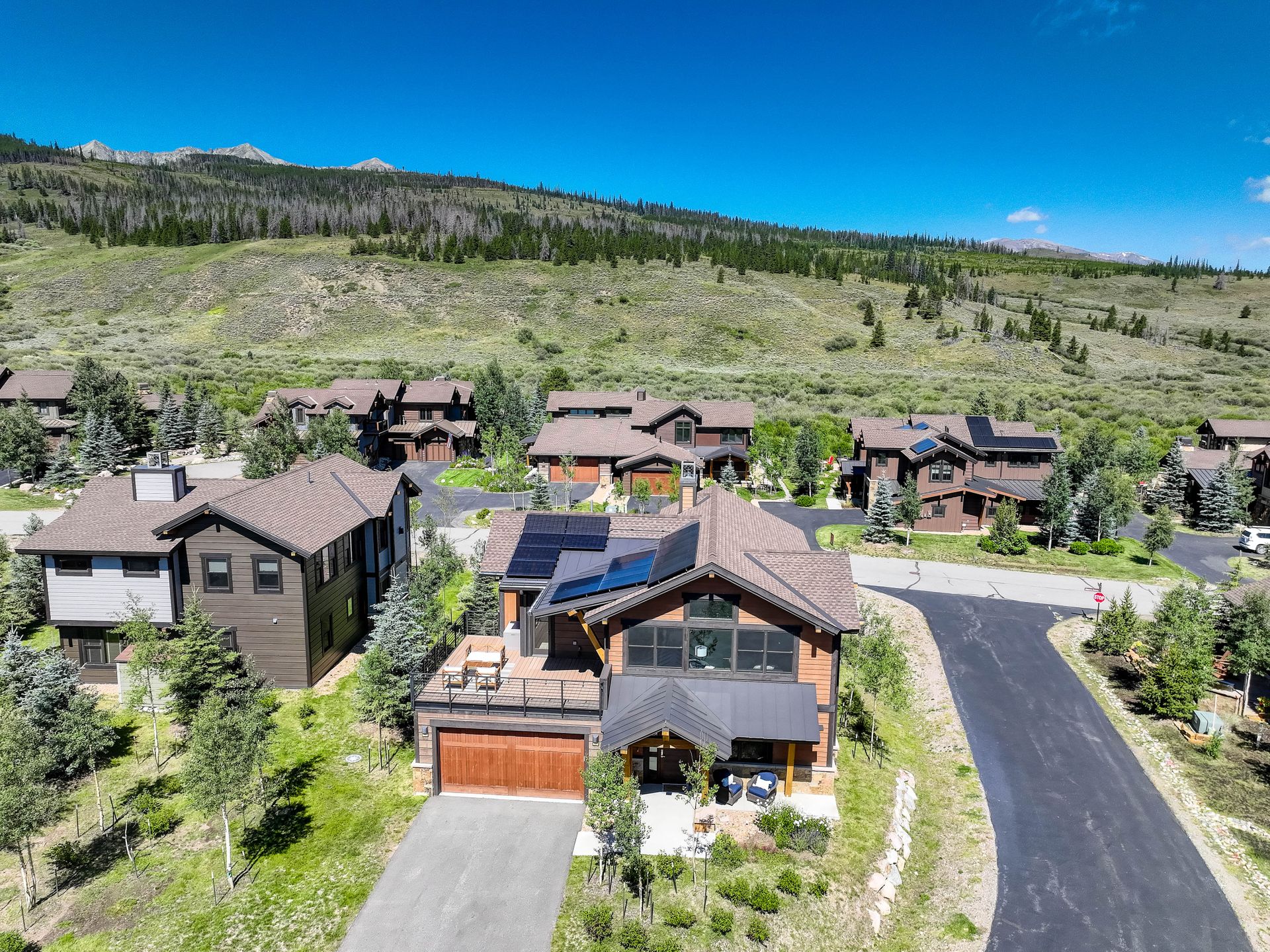 Stunning contemporary mountain two-story. A purposely designed home, modern in its function, taking advantage of second-floor main-level living where the surrounding natural beauty can easily be appreciated. The main level of the home has an inviting open and vaulted floor plan ideal for entertaining. Windows abound and it will be rare you will want to draw the shades. The kitchen is spacious with granite and quartz appointments, cool tone-stained cabinets, hardwood flooring and Bosch appliances. Gracious primary retreat with private access to the rooftop deck. Custom-built-in cabinets and shelving throughout the home and garage for additional storage. Downstairs features two secondary bedrooms, each with an adjoining bath. A large entertaining room and epoxy-coated garage floors for easy cleaning. Sited on one of the larger lots on a corner with amazing panoramic views, including those of the ski mountain. The community adjoins the Blue River and affords residents everything the area has to offer literally minutes from the front door. Begin with the private community river access to the Blue River with fly-fishing opportunities for those seeking gold medal fishing. Wildlife abounds including moose, bear, elk, deer, fox, eagle and mountain cats. Owners enjoy the privacy and seclusion away from the hustle and bustle of downtown Breckenridge while being only minutes away. Golfing at Breckenridge Golf Course is just across Highway 9 and boasts a 27-hole Jack Nicklaus designed course. Some of Colorado’s best hiking is nearby, SUP, kayaking and kiteboarding on nearby Lake Dillon. Ullr Fest, International Snow Sculpture, Oktoberfest, Breckenridge Film Festival and the Wine Classic. This home is truly a home for all seasons. The home does not overlook any details. Power is derived from solar panels, there are radiant heated floors, windows bringing the outdoors in, and a rooftop deck meant to be enjoyed year-round. What better way is there to live?