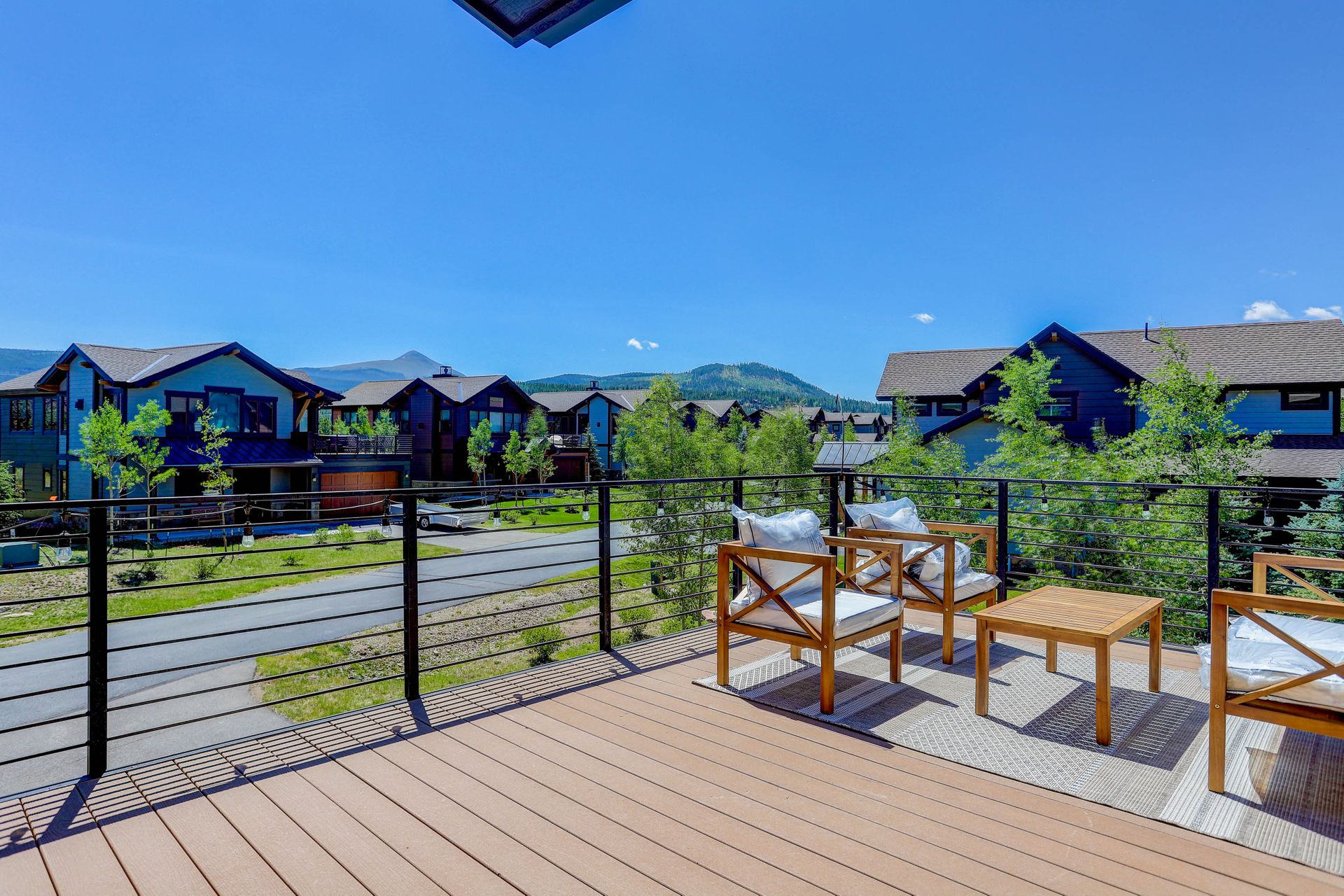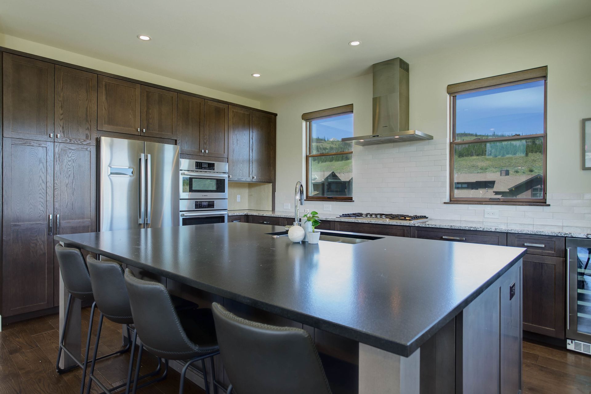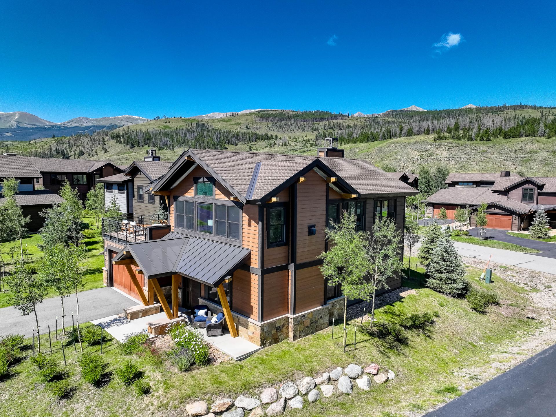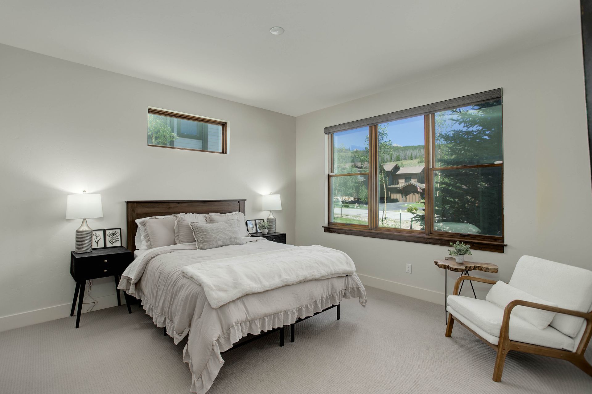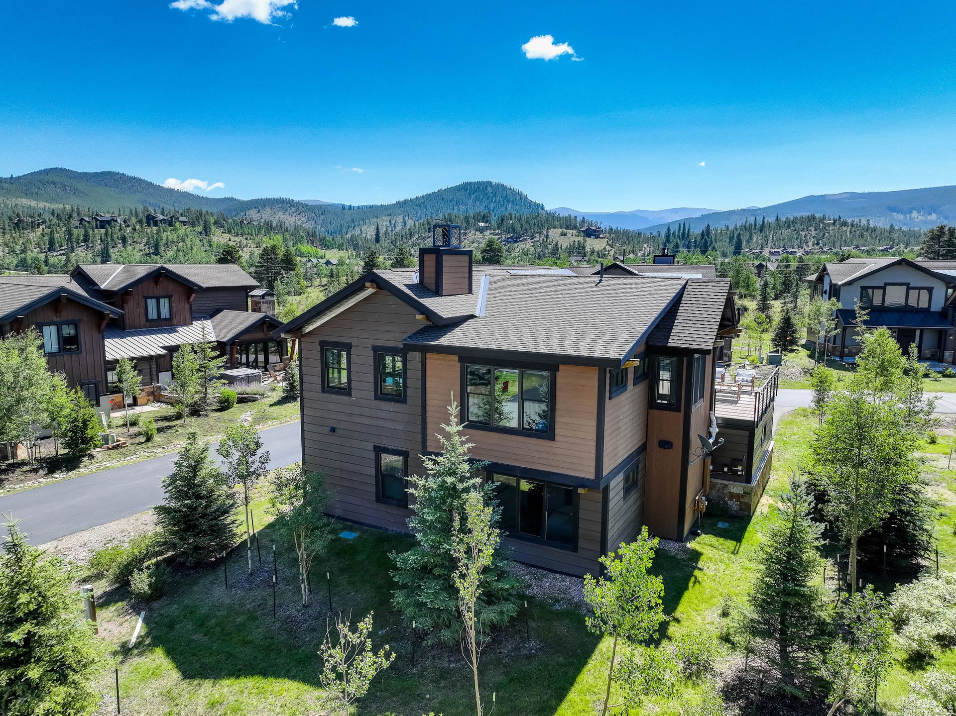 Stunning contemporary mountain two-story. A purposely designed home, modern in its function, taking advantage of second-floor main-level living where the surrounding natural beauty can easily be appreciated. The main level of the home has an inviting open and vaulted floor plan ideal for entertaining. Windows abound and it will be rare you will want to draw the shades. The kitchen is spacious with granite and quartz appointments, cool tone-stained cabinets, hardwood flooring and Bosch appliances. Gracious primary retreat with private access to the rooftop deck. Custom-built-in cabinets and shelving throughout the home and garage for additional storage. Downstairs features two secondary bedrooms, each with an adjoining bath. A large entertaining room and epoxy-coated garage floors for easy cleaning. Sited on one of the larger lots on a corner with amazing panoramic views, including those of the ski mountain. The community adjoins the Blue River and affords residents everything the area has to offer literally minutes from the front door. Begin with the private community river access to the Blue River with fly-fishing opportunities for those seeking gold medal fishing. Wildlife abounds including moose, bear, elk, deer, fox, eagle and mountain cats. Owners enjoy the privacy and seclusion away from the hustle and bustle of downtown Breckenridge while being only minutes away. Golfing at Breckenridge Golf Course is just across Highway 9 and boasts a 27-hole Jack Nicklaus designed course. Some of Colorado’s best hiking is nearby, SUP, kayaking and kiteboarding on nearby Lake Dillon. Ullr Fest, International Snow Sculpture, Oktoberfest, Breckenridge Film Festival and the Wine Classic. This home is truly a home for all seasons. The home does not overlook any details. Power is derived from solar panels, there are radiant heated floors, windows bringing the outdoors in, and a rooftop deck meant to be enjoyed year-round. What better way is there to live?