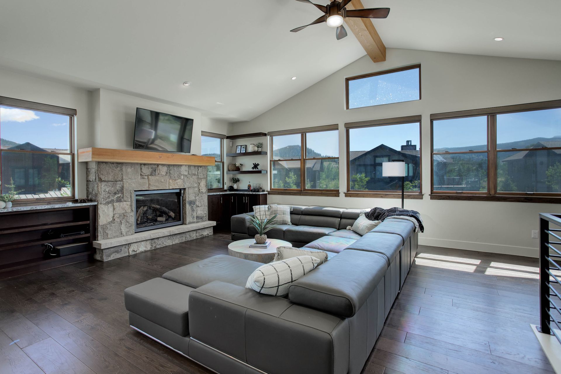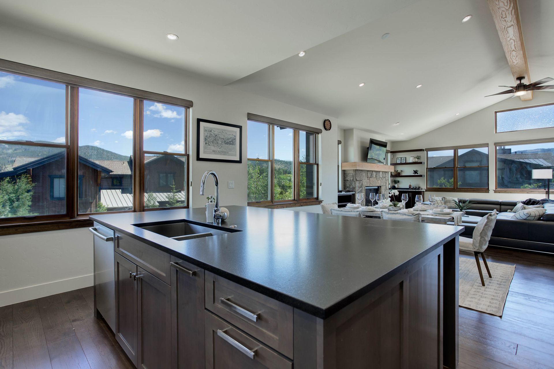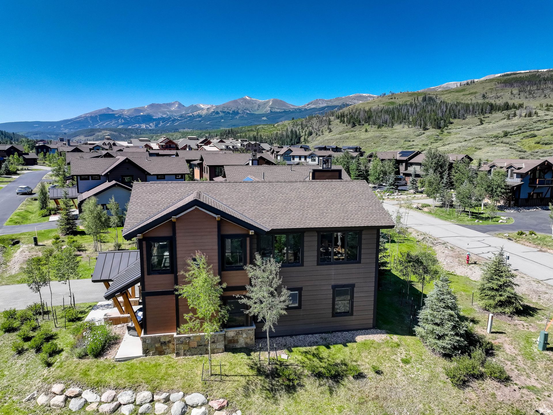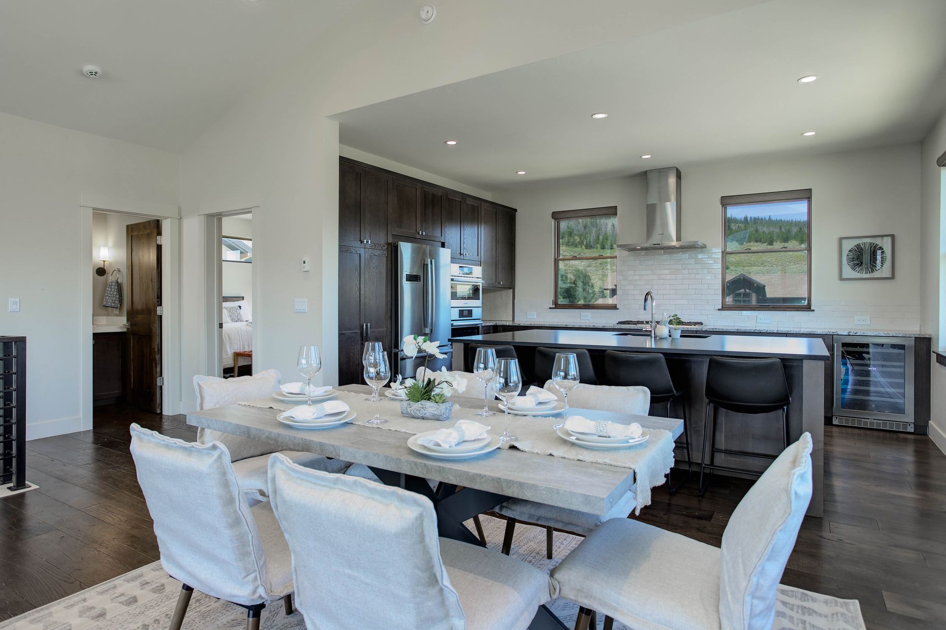 Stunning contemporary mountain two-story. A purposely designed home, modern in its function, taking advantage of second-floor main-level living where the surrounding natural beauty can easily be appreciated. The main level of the home has an inviting open and vaulted floor plan ideal for entertaining. Windows abound and it will be rare you will want to draw the shades. The kitchen is spacious with granite and quartz appointments, cool tone-stained cabinets, hardwood flooring and Bosch appliances. Gracious primary retreat with private access to the rooftop deck. Custom-built-in cabinets and shelving throughout the home and garage for additional storage. Downstairs features two secondary bedrooms, each with an adjoining bath. A large entertaining room and epoxy-coated garage floors for easy cleaning. Sited on one of the larger lots on a corner with amazing panoramic views, including those of the ski mountain. The community adjoins the Blue River and affords residents everything the area has to offer literally minutes from the front door. Begin with the private community river access to the Blue River with fly-fishing opportunities for those seeking gold medal fishing. Wildlife abounds including moose, bear, elk, deer, fox, eagle and mountain cats. Owners enjoy the privacy and seclusion away from the hustle and bustle of downtown Breckenridge while being only minutes away. Golfing at Breckenridge Golf Course is just across Highway 9 and boasts a 27-hole Jack Nicklaus designed course. Some of Colorado’s best hiking is nearby, SUP, kayaking and kiteboarding on nearby Lake Dillon. Ullr Fest, International Snow Sculpture, Oktoberfest, Breckenridge Film Festival and the Wine Classic. This home is truly a home for all seasons. The home does not overlook any details. Power is derived from solar panels, there are radiant heated floors, windows bringing the outdoors in, and a rooftop deck meant to be enjoyed year-round. What better way is there to live?