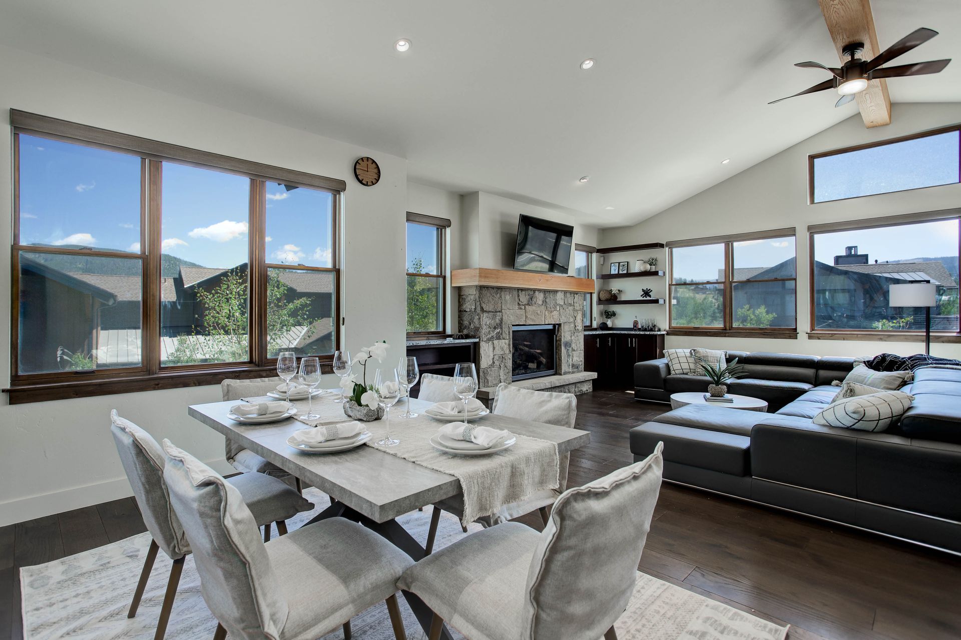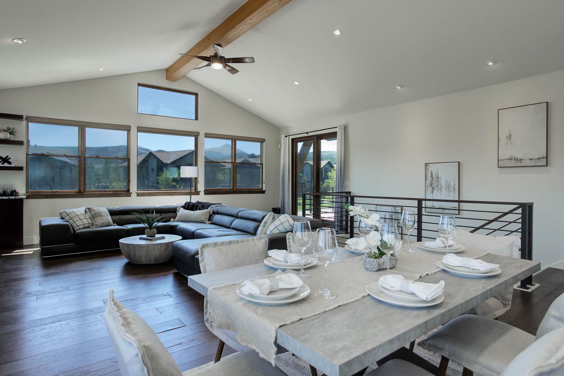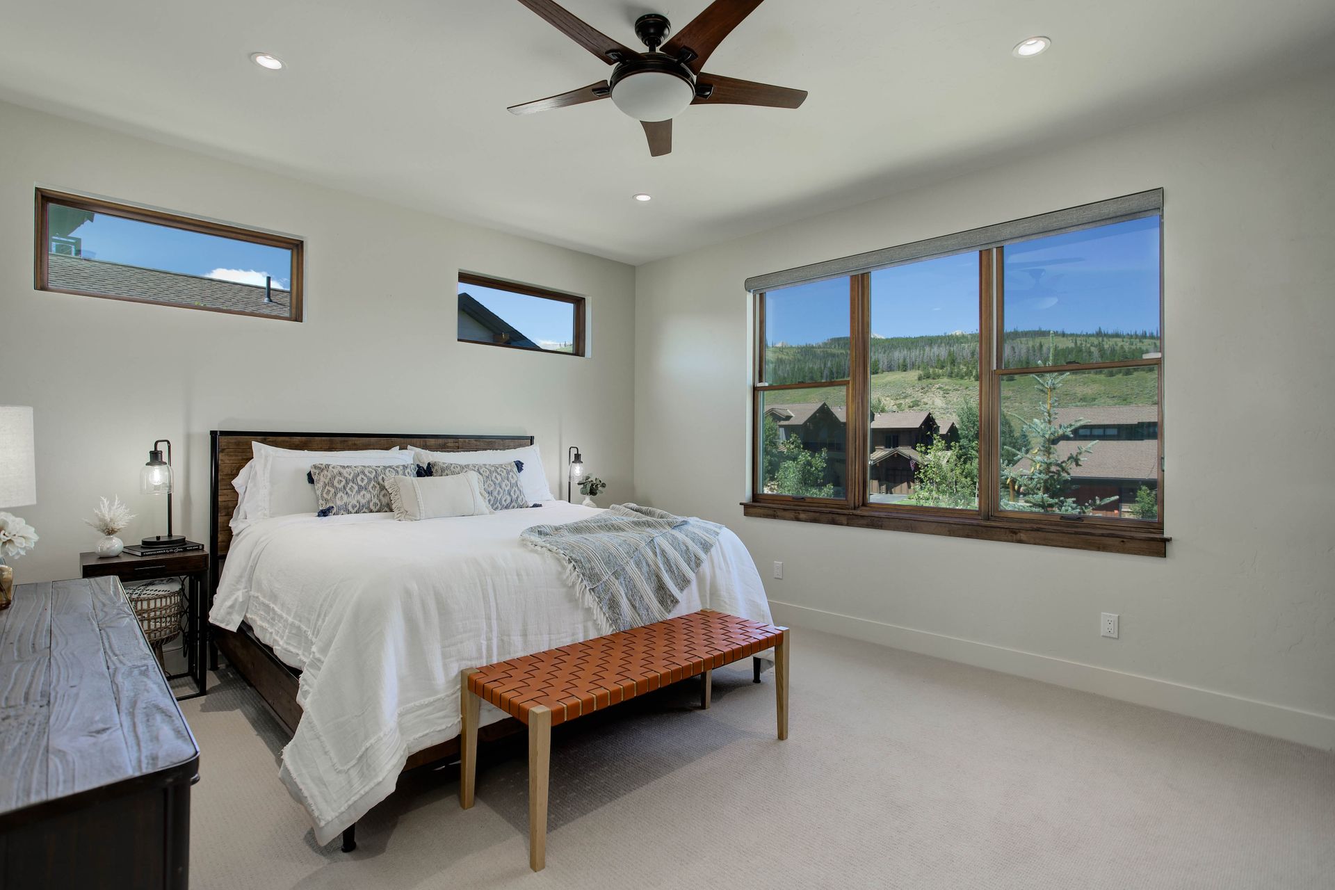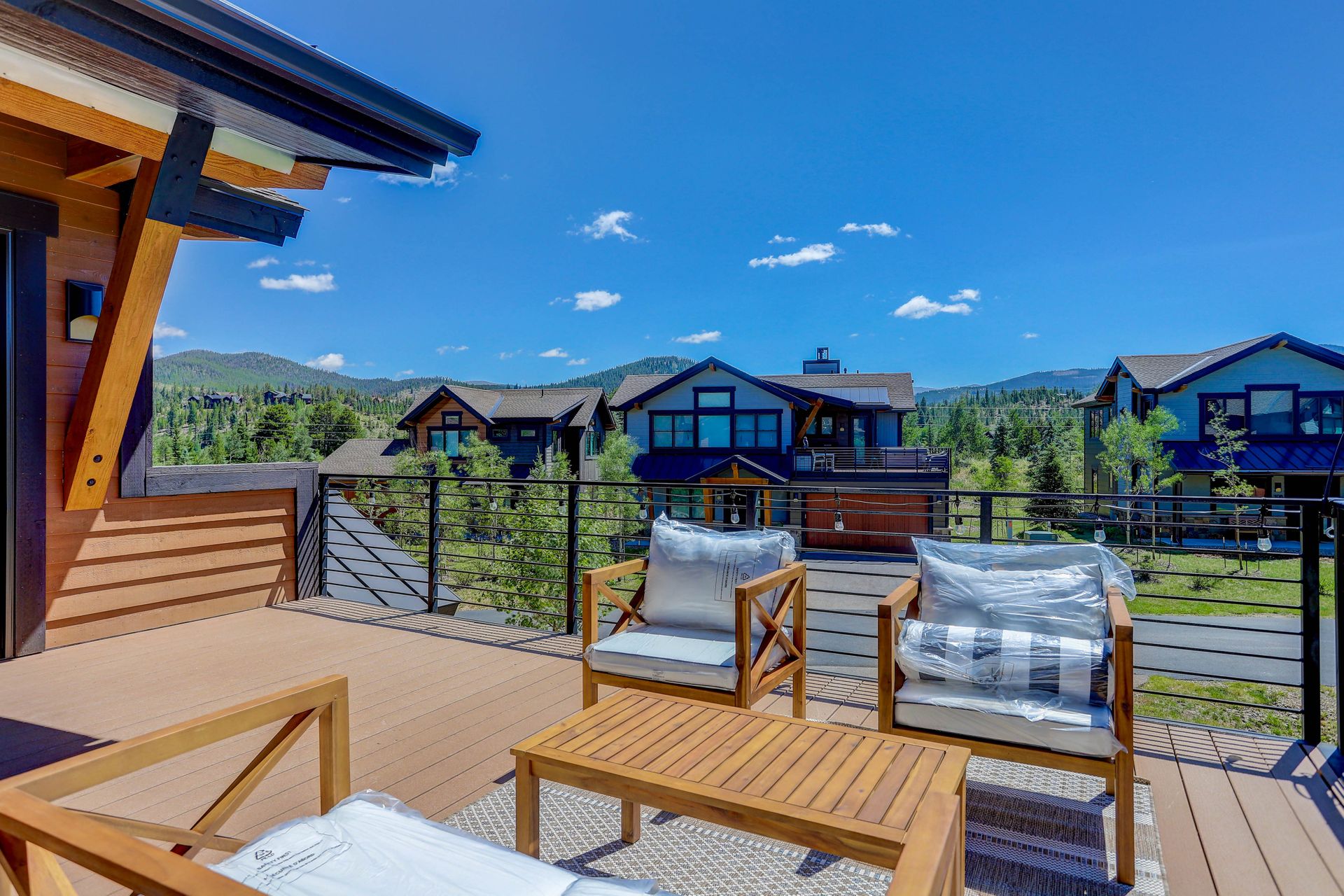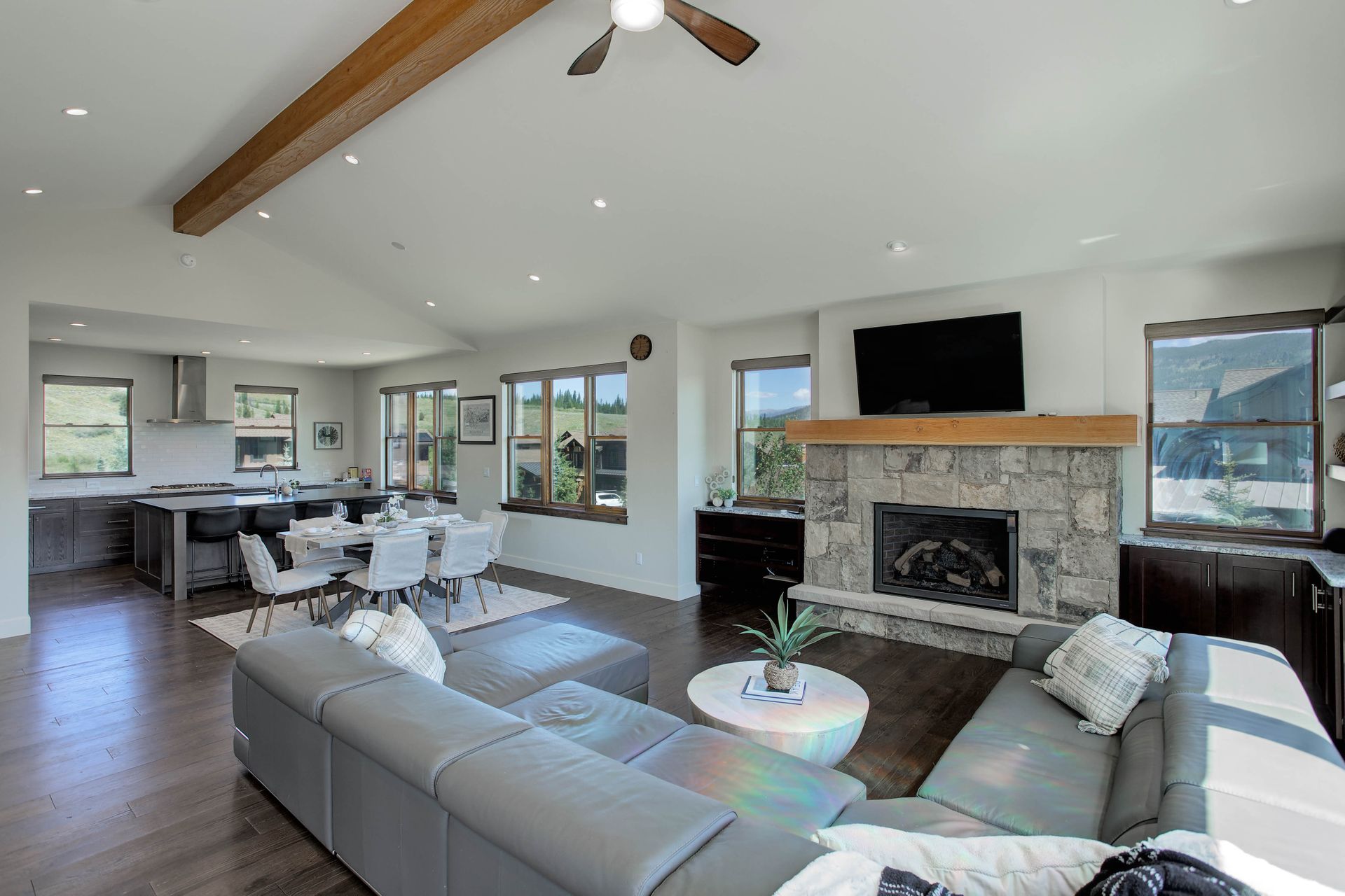 Stunning contemporary mountain two-story. A purposely designed home, modern in its function, taking advantage of second-floor main-level living where the surrounding natural beauty can easily be appreciated. The main level of the home has an inviting open and vaulted floor plan ideal for entertaining. Windows abound and it will be rare you will want to draw the shades. The kitchen is spacious with granite and quartz appointments, cool tone-stained cabinets, hardwood flooring and Bosch appliances. Gracious primary retreat with private access to the rooftop deck. Custom-built-in cabinets and shelving throughout the home and garage for additional storage. Downstairs features two secondary bedrooms, each with an adjoining bath. A large entertaining room and epoxy-coated garage floors for easy cleaning. Sited on one of the larger lots on a corner with amazing panoramic views, including those of the ski mountain. The community adjoins the Blue River and affords residents everything the area has to offer literally minutes from the front door. Begin with the private community river access to the Blue River with fly-fishing opportunities for those seeking gold medal fishing. Wildlife abounds including moose, bear, elk, deer, fox, eagle and mountain cats. Owners enjoy the privacy and seclusion away from the hustle and bustle of downtown Breckenridge while being only minutes away. Golfing at Breckenridge Golf Course is just across Highway 9 and boasts a 27-hole Jack Nicklaus designed course. Some of Colorado’s best hiking is nearby, SUP, kayaking and kiteboarding on nearby Lake Dillon. Ullr Fest, International Snow Sculpture, Oktoberfest, Breckenridge Film Festival and the Wine Classic. This home is truly a home for all seasons. The home does not overlook any details. Power is derived from solar panels, there are radiant heated floors, windows bringing the outdoors in, and a rooftop deck meant to be enjoyed year-round. What better way is there to live?