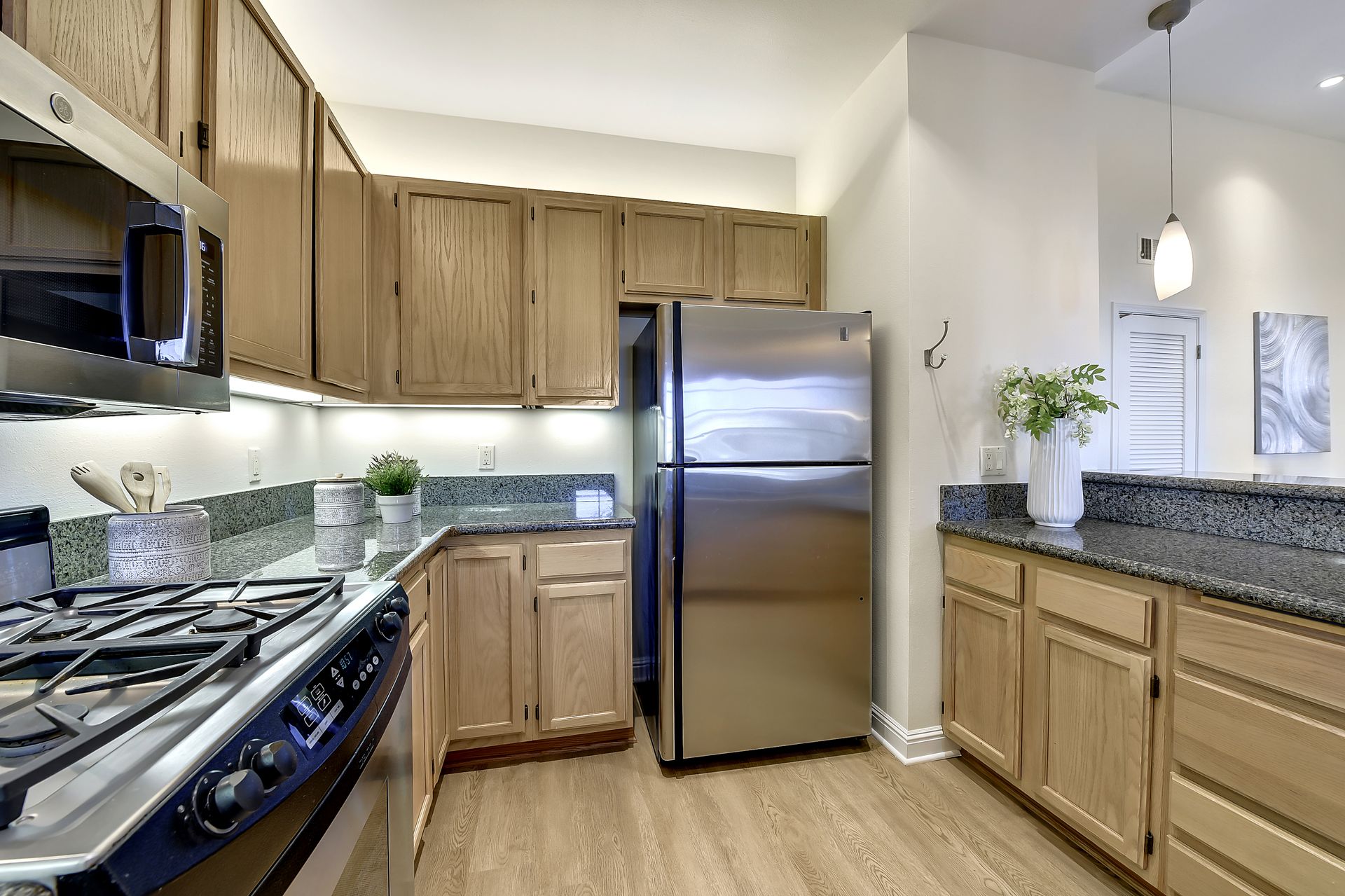 Welcome to this stylish two bedroom, two bath, top-floor condominium unit in Half Moon Bay offering approximately 1,115 square feet of livable space. This well-maintained property is move-in ready, offering tall ceilings, a newly painted interior and newer carpeting and flooring. The updated kitchen features granite countertops, beautiful cabinetry, a dining bar and high-end stainless steel appliances. The living room and dining room combo offers a fireplace and slider to the balcony.
