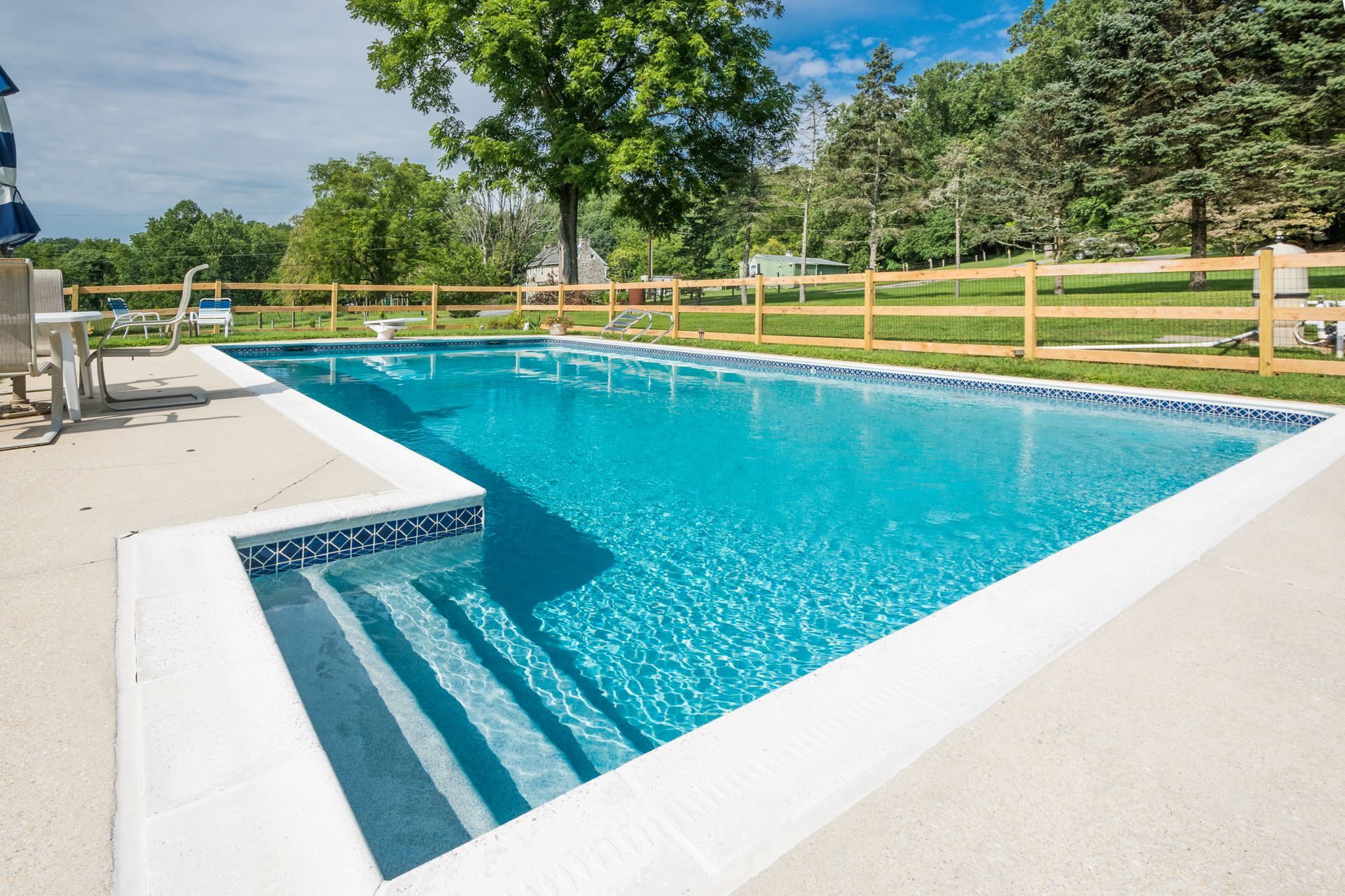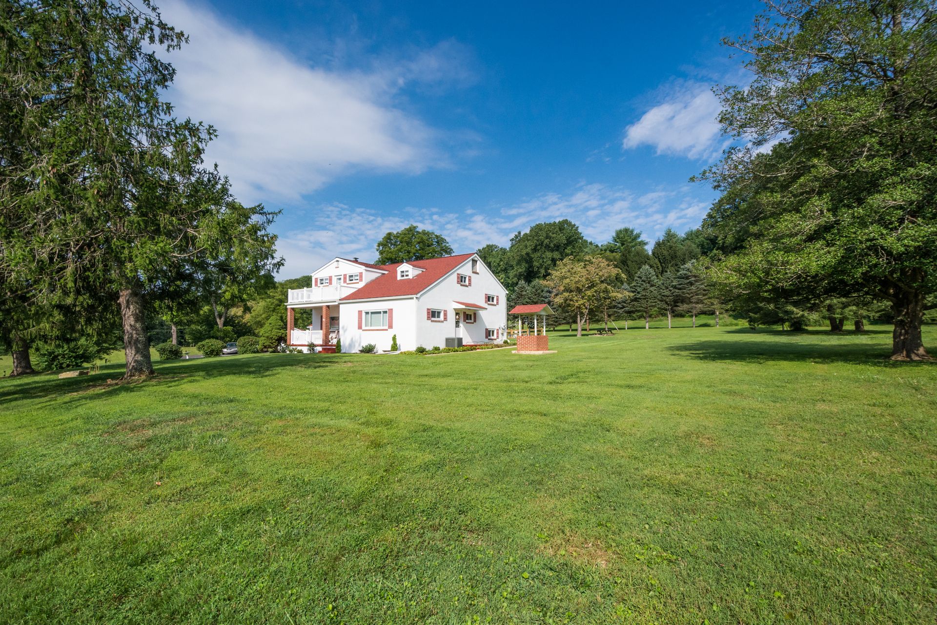 Imagine pulling into the bottom of your driveway, three-horse stall barn with fenced paddock to your right. Go up a slightly sloping drive to a level area which ends at your carport (currently used for an outdoor sitting area). In the backyard is an inground pool with a brand-new fenced area. The grounds are beautifully landscaped. Enjoy the covered front porch. Enter into the bright living room with oversized windows and gleaming hardwood floors. The dining room also has plenty of light and hardwood floors, as well as plenty of storage and built-in corner cabinets. Go into the kitchen, which has a cut-through looking into the dining room, built-ins, counterspace and stainless steel appliances. Also, has a door going out to a porch to the side yard. Lots of storage on this level. Go up a few steps to two bedrooms, full bath, hardwood floors and even a laundry chute. The top level is used as a primary bedroom. Walk-in closet at the top of the steps, door going to the roof deck where you can enjoy your front yard overlooking the barn and paddock. Also has a half-bath with sitting/dressing area, as well as an office. If you come in the carport door there is a family room with gleaming knotty pine walls, a laundry room and a full bath with shower. Off the laundry are a few steps to the full basement, unfinished waiting for your touch. Plenty of light and storage, as well as a walkout door to yard. This home has been lovingly maintained by the owner and it shows. The home needs a new owner to fully use the space and amenities! It could be you!