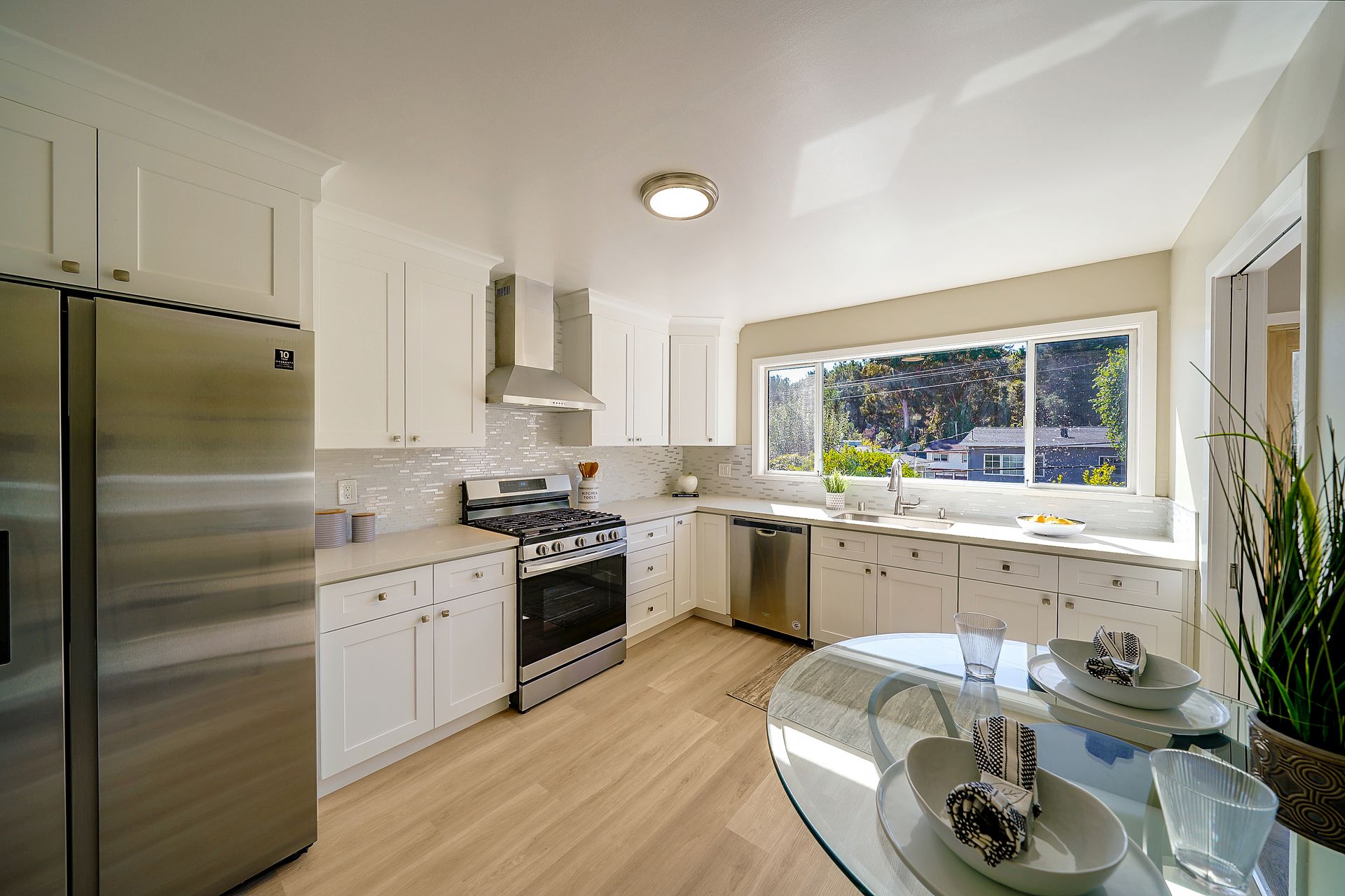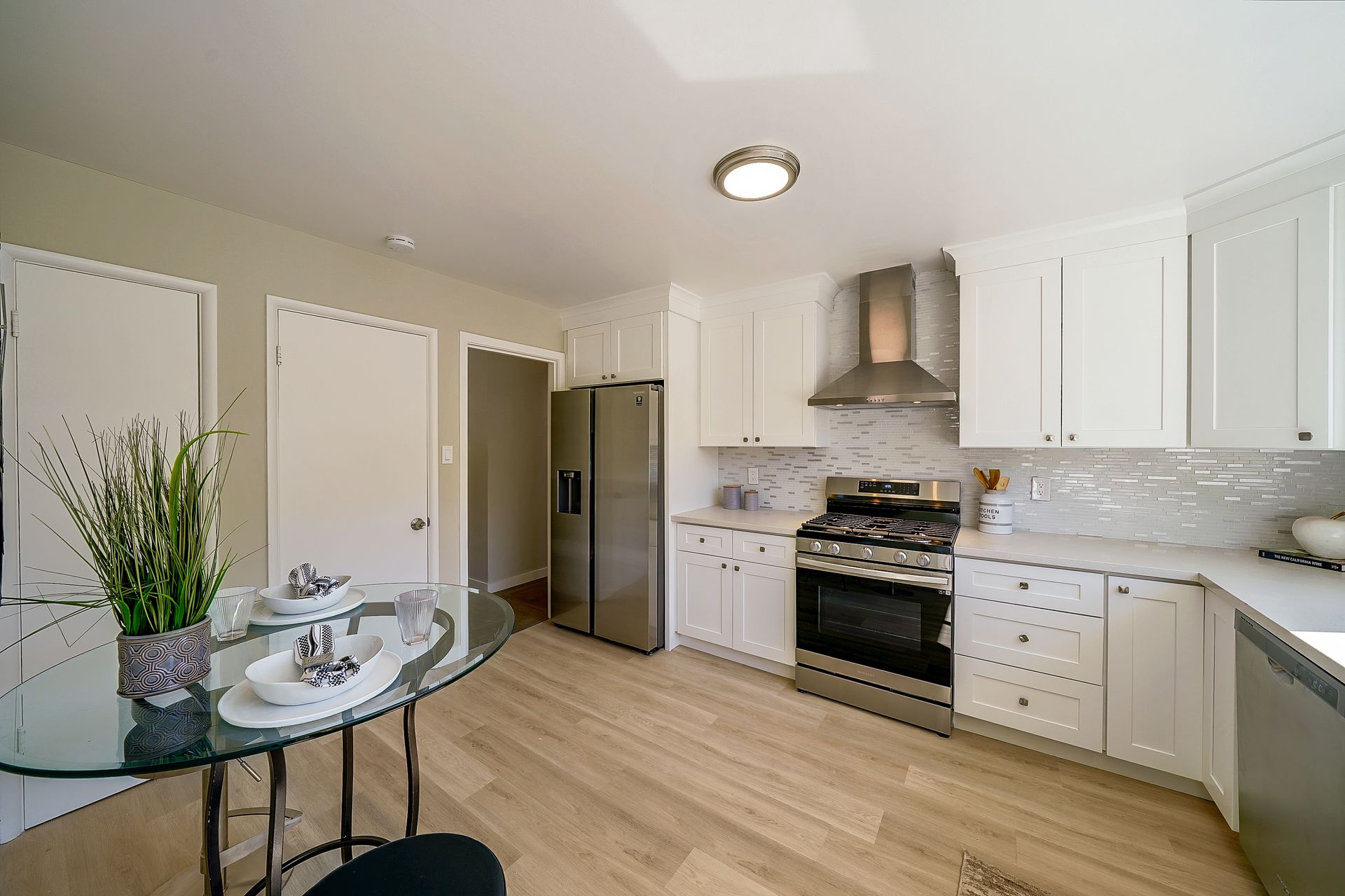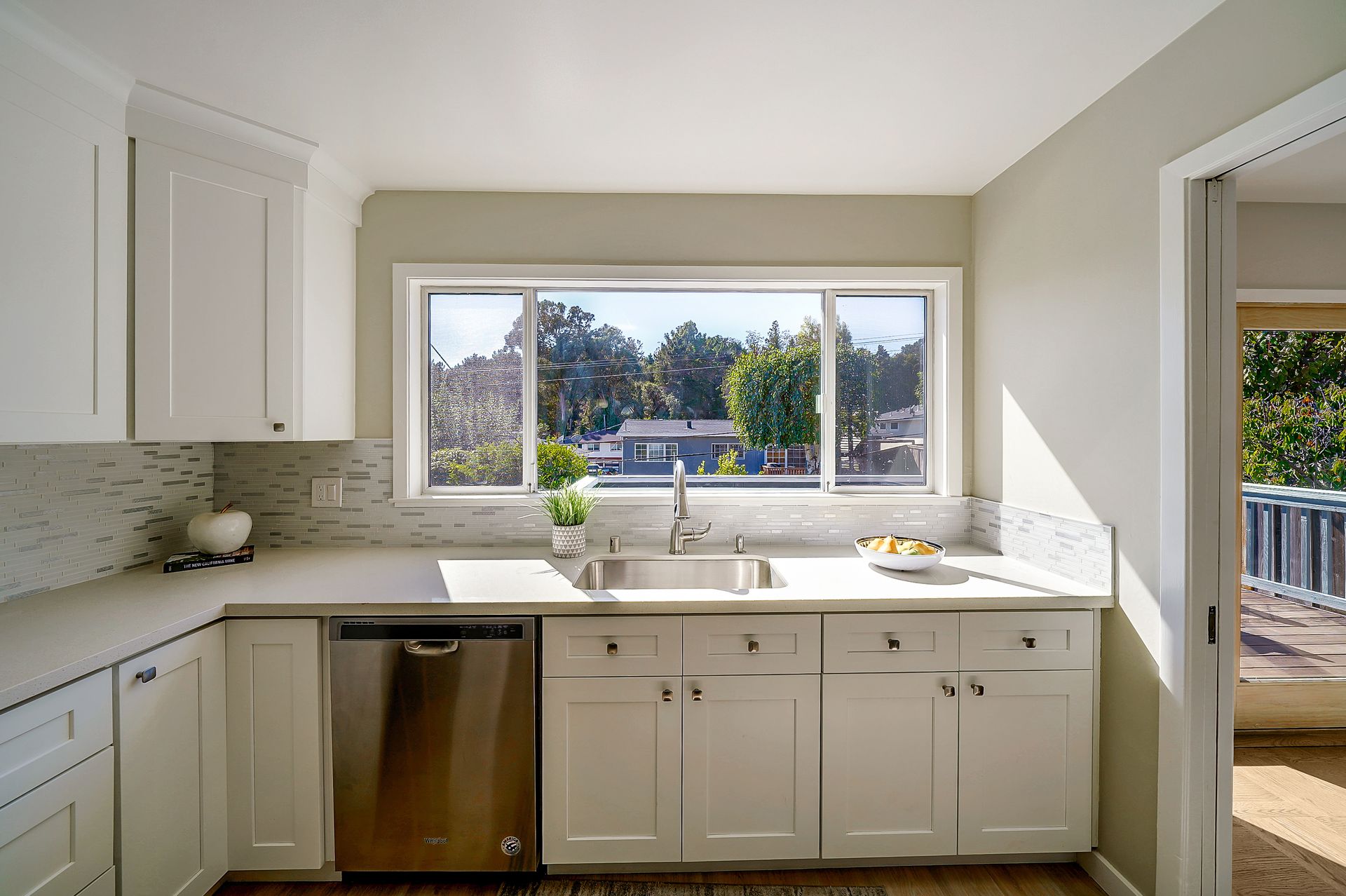 This fabulous three bedroom, two and one-half bath elevated style home is located in the desirable Meadows neighborhood of Millbrae. Features include a remodeled kitchen with quartz countertops, glass backsplash, stainless steel appliances, newly installed cabinets and laminate floors; a dining area; a living room with a fireplace; beautifully refinished hardwood and parquet floors; a freshly painted interior; a primary bedroom with an updated bathroom with a quartz topped vanity, tiled floors and a shower stall; a hall bathroom with a quartz topped vanity, tiled floors and a tub with a shower enclosure; a landscaped backyard with a covered patio area; a landscaped front yard with a sprinkler system; a spacious full basement with two bonus rooms and a one-half bathroom; an attached two-car garage and more. Enjoy this lovely, remodeled home in a great neighborhood. With approximately 1,240 square feet of livable space, this home sits on an approximately 5,073 square foot lot. www.1159Glenwood.com