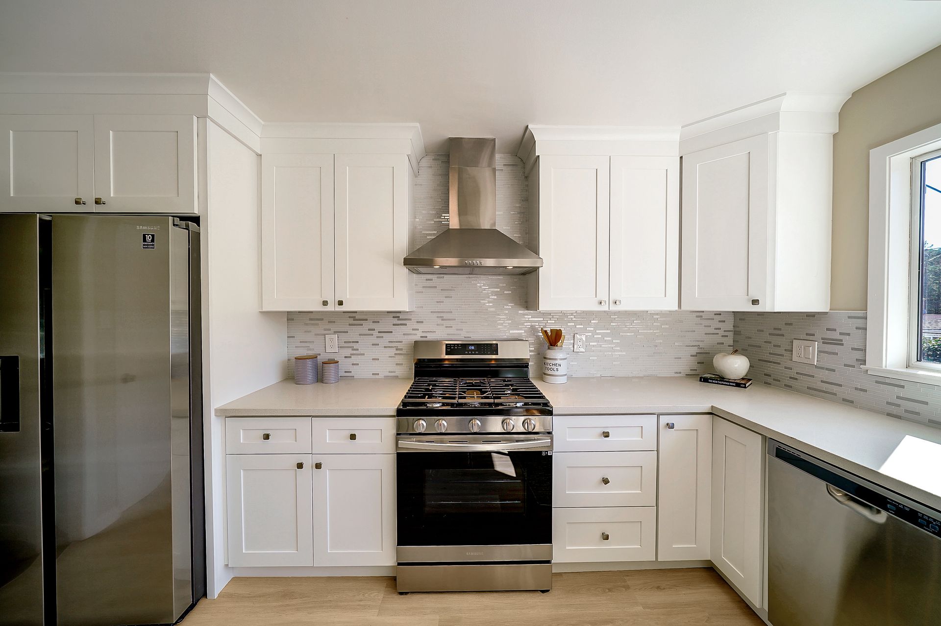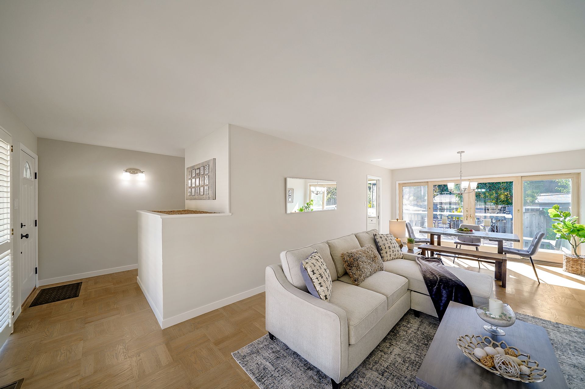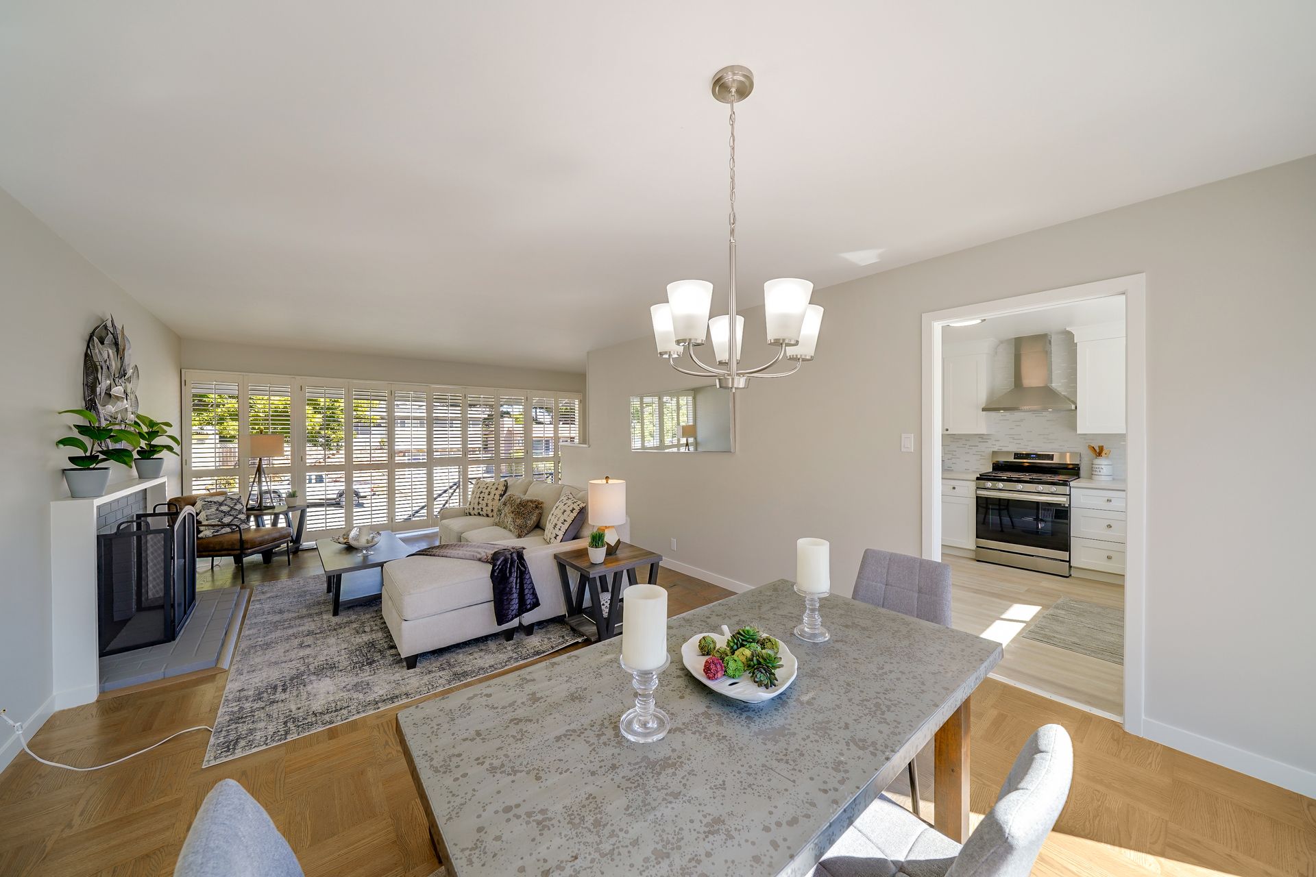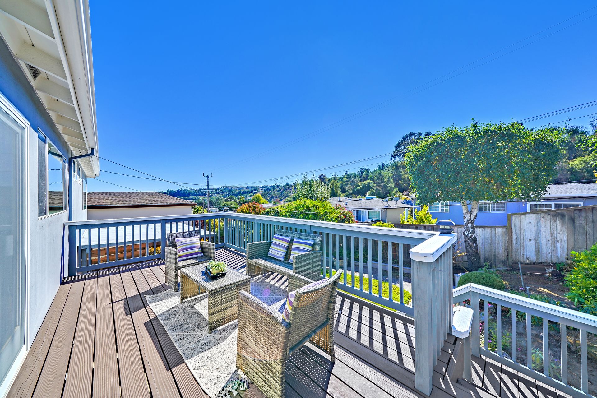 This fabulous three bedroom, two and one-half bath elevated style home is located in the desirable Meadows neighborhood of Millbrae. Features include a remodeled kitchen with quartz countertops, glass backsplash, stainless steel appliances, newly installed cabinets and laminate floors; a dining area; a living room with a fireplace; beautifully refinished hardwood and parquet floors; a freshly painted interior; a primary bedroom with an updated bathroom with a quartz topped vanity, tiled floors and a shower stall; a hall bathroom with a quartz topped vanity, tiled floors and a tub with a shower enclosure; a landscaped backyard with a covered patio area; a landscaped front yard with a sprinkler system; a spacious full basement with two bonus rooms and a one-half bathroom; an attached two-car garage and more. Enjoy this lovely, remodeled home in a great neighborhood. With approximately 1,240 square feet of livable space, this home sits on an approximately 5,073 square foot lot. www.1159Glenwood.com