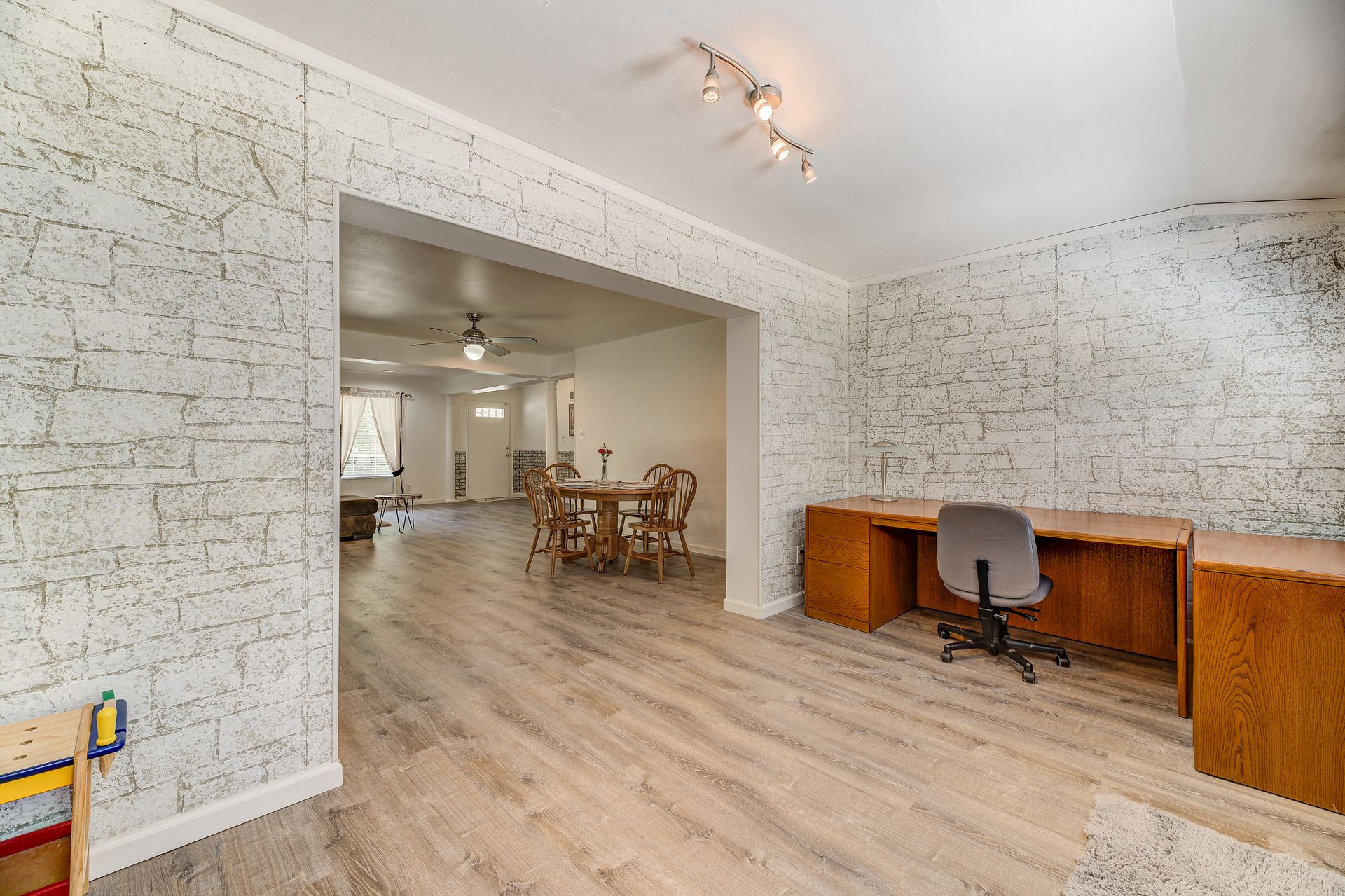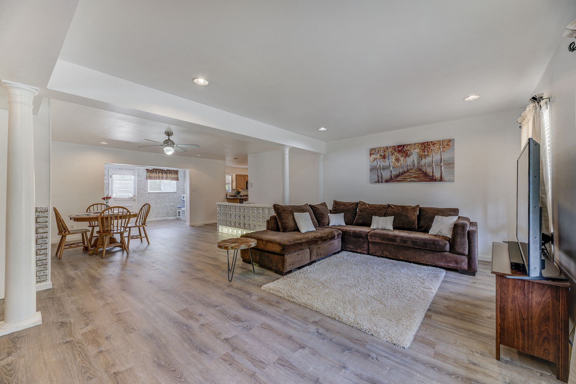 Updated, spacious, and open floor plan ranch in a highly sought-after area. The Living Room, Dining Room, and Family Room all were updated with Lifeproof laminate flooring and baseboards. All three bedrooms have hardwood flooring and the bathrooms were remodeled with newer custom cabinets. The primary bedroom features with wonderful custom closets. The kitchen boasts maple cabinets, ceramic tile floor, gas cooktop and stainless-steel appliances. The laundry room is on the main level. The lower level is partially finished with a recreation room and playroom, and plumbing access which makes the basement readily available for a full bath! The home also has an oversized two-car garage, newer concrete driveway, newer roof, and a newer AC unit (2019) with a ten-year warranty. Flat, usable, fenced and private rear yard. The central location is convenient to highways, hospitals, restaurants and shopping. One-level living with broad appeal to buyers of all ages.