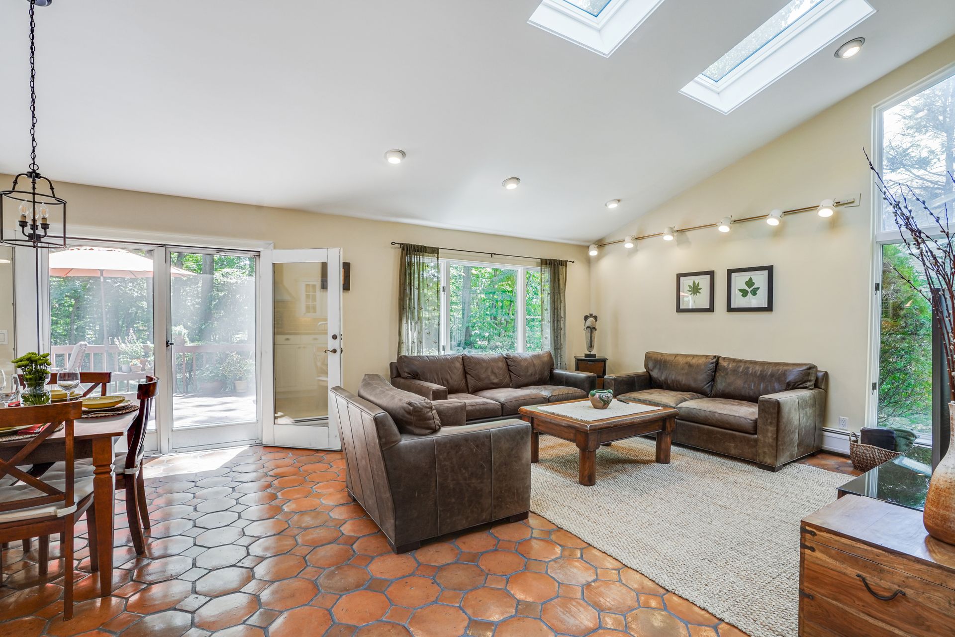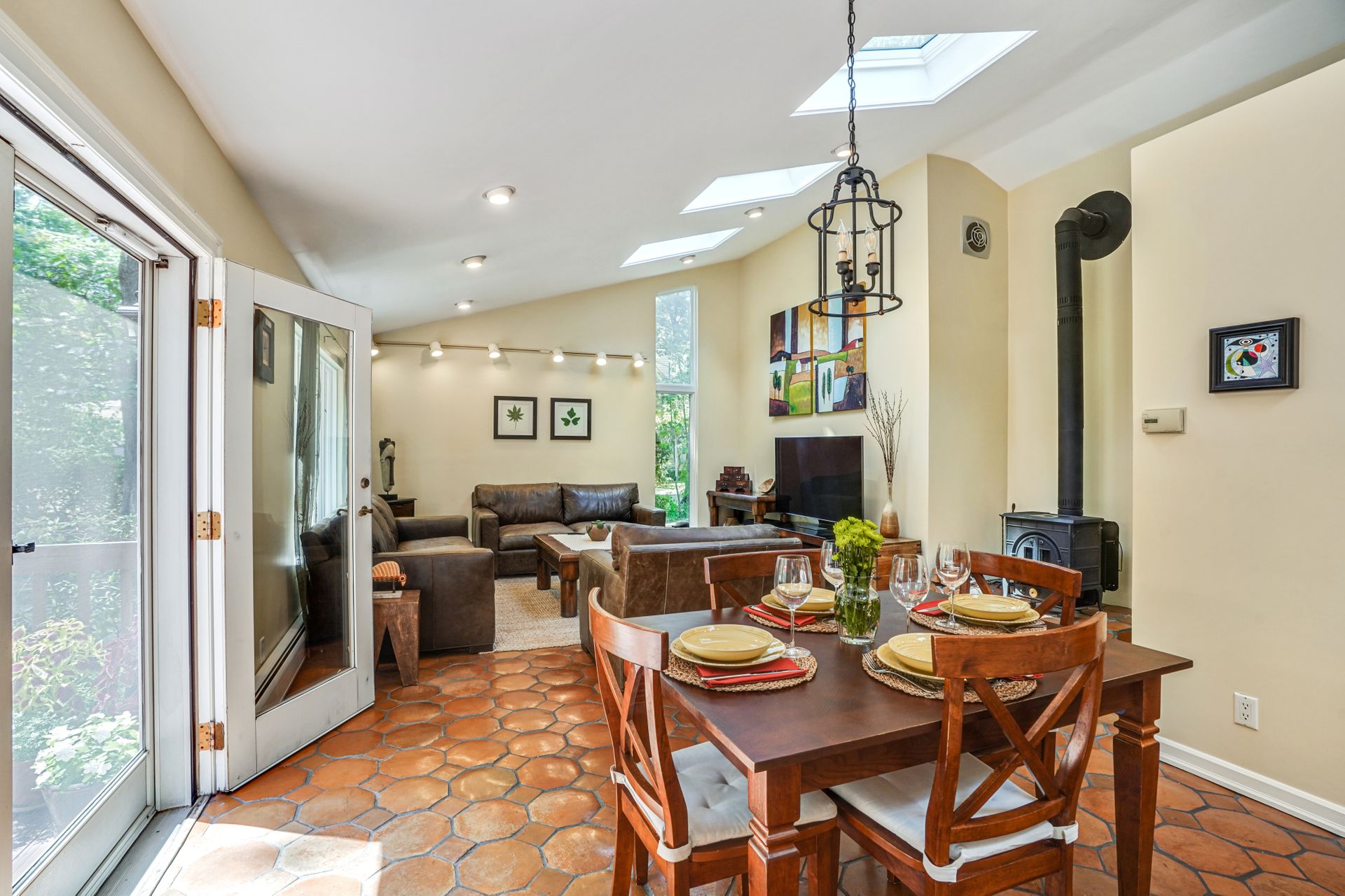 This storybook Dutch Colonial offers a stone facade, newly painted exterior, large level corner property and one of the most desirable neighborhoods in beautiful Mountain Lakes. Bringing the past to the present, this home enjoys a first floor plan that is unique to most Mountain Lakes homes of this vintage. Details include a vaulted ceiling in the family room featuring a wood-burning stove, open kitchen and family room design, a flexible space turns into an office/sunroom/playroom/guest bedroom, arched doorways, stainless steel appliances, ten year young roof and skylights, formal dining room plus a living room with a wood-burning fireplace. Additional amenities showcase a furnace of seven years, two units of central air conditioning, hardwood floors in most rooms, updated windows, six-panel doors plus a large deck overlooking a private backyard. Beautiful flowering shrubs boast hydrangeas, azaleas, rhododendron, forsythia and Japanese Maple. If peace and tranquility are what you desire while still having all of life's conveniences, then this is the home for you. The location of this property is minutes to all Mountain Lakes Schools, public transportation, stores, shops, banks and 35 minutes from NYC and Newark International Airport. Come tour this special treasure and fall in love!
