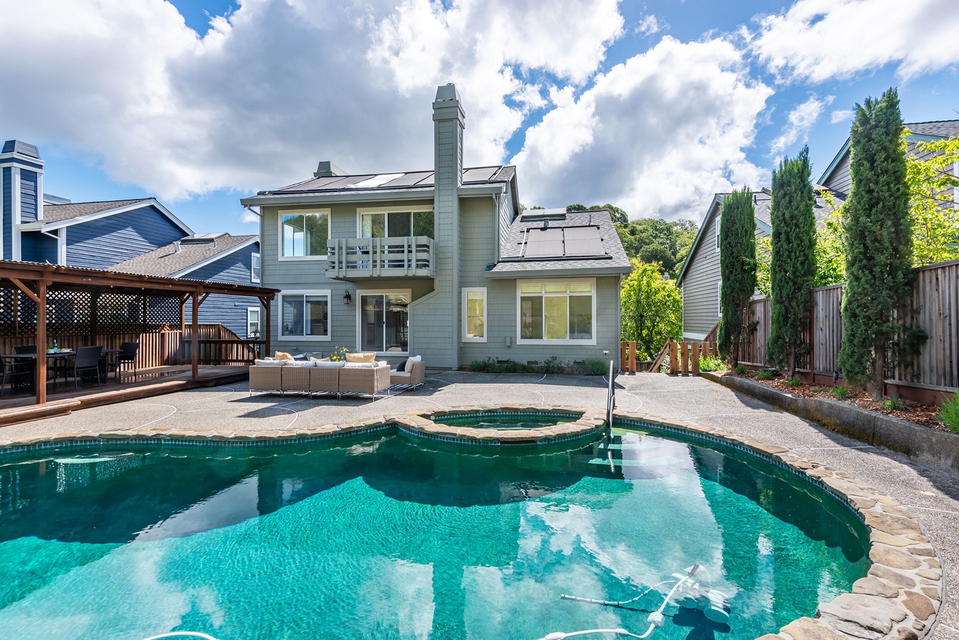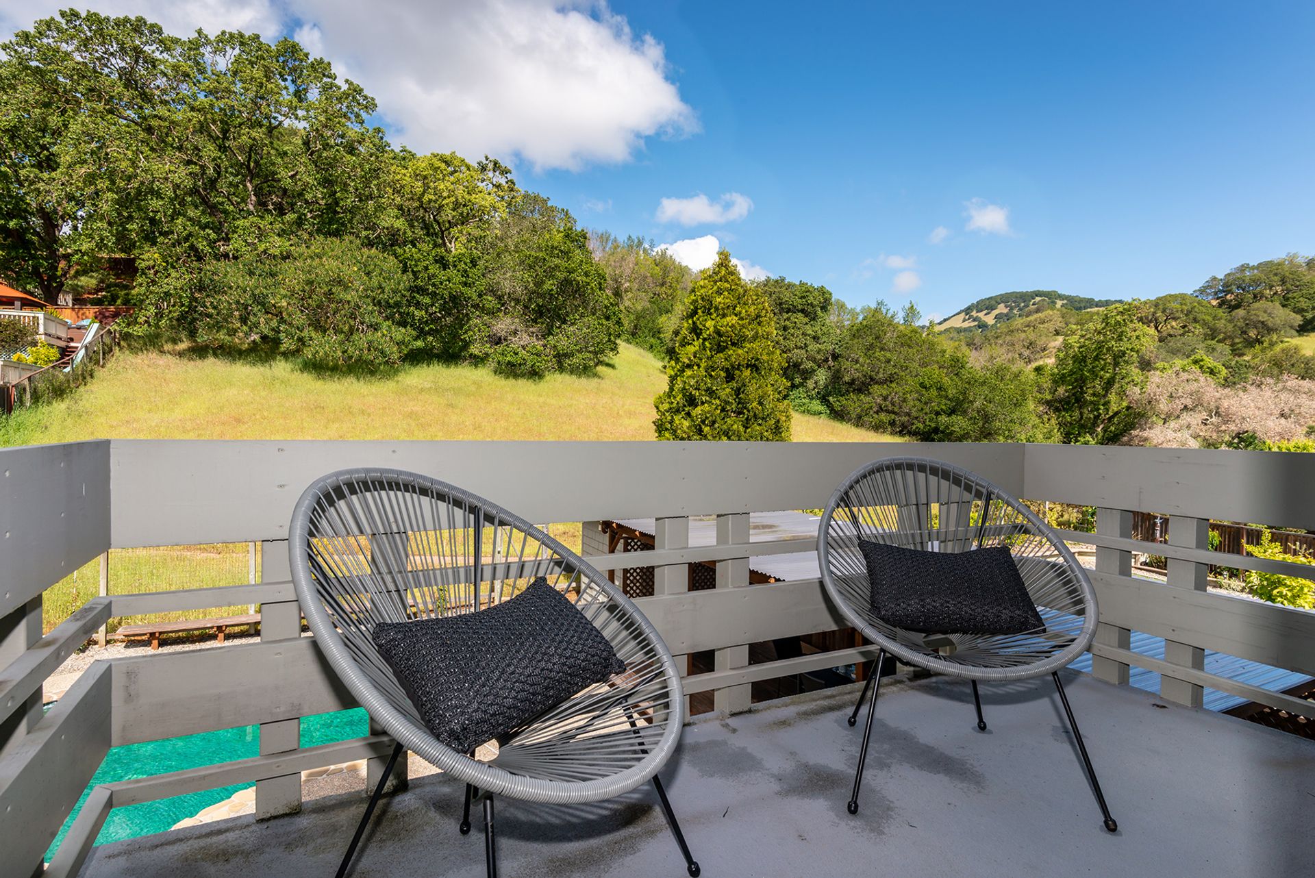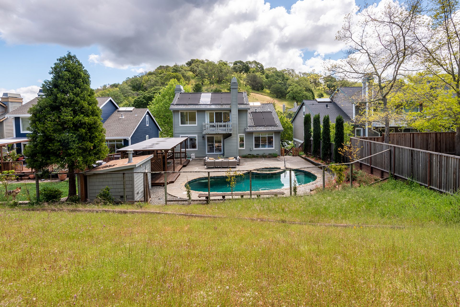 Located in a gorgeous, tranquil setting, sits this spacious home on a sizeable .27 acre lot! Fall in love with the nature that surrounds this property. This immaculate & generous sized 4bd/3 full bath boasts 2697 sq.ft. of living space. Features include eat in kitchen, Living room/dining rm combo w/high ceilings. Family rm w/slider & deck access. Main Suite incl. lrg. sitting room/bonus area w/ fireplace. 4th bd. incl. full ba. separate from upstairs with private entry usage as in-law, home office, or play. Dramatic views from almost every rm! Central air & EV charger. Plenty of room to entertain, garden, or just relax in the backyard w/sparkling solar pool/spa, lrg. patio, covered deck & gate to the open, natural, hillside. Quick access to Mt. Burdell's hiking biking, & bridle trails! Close to SMART train station, Hwy 101 & 37, yet tucked away on a peaceful, serene dead-end street. Mins. to downtown Novato for shopping, dining & many more conveniences. You will not want to miss this one!