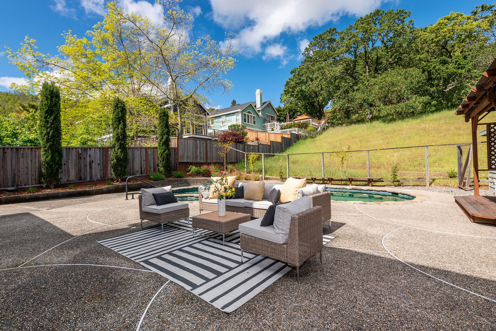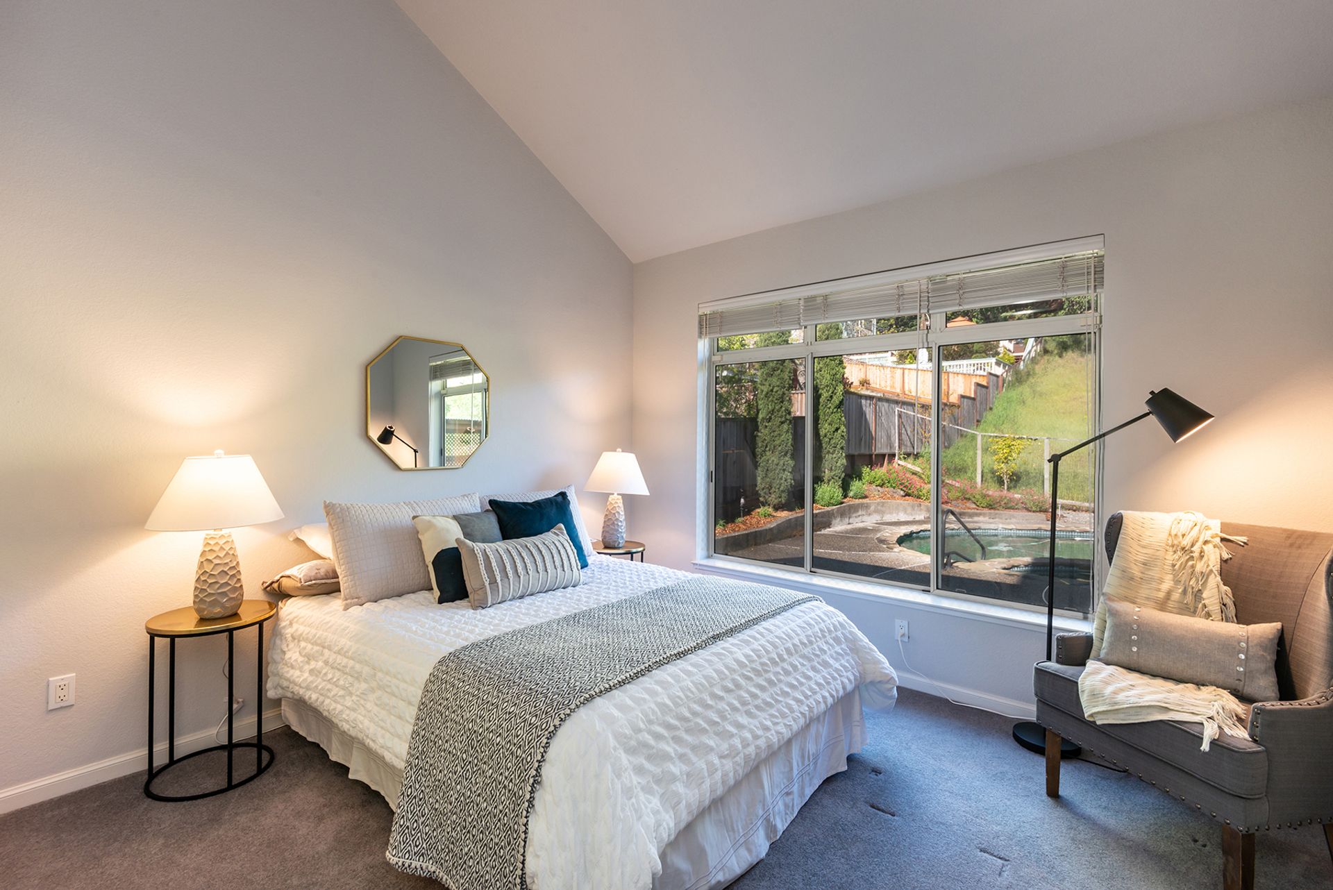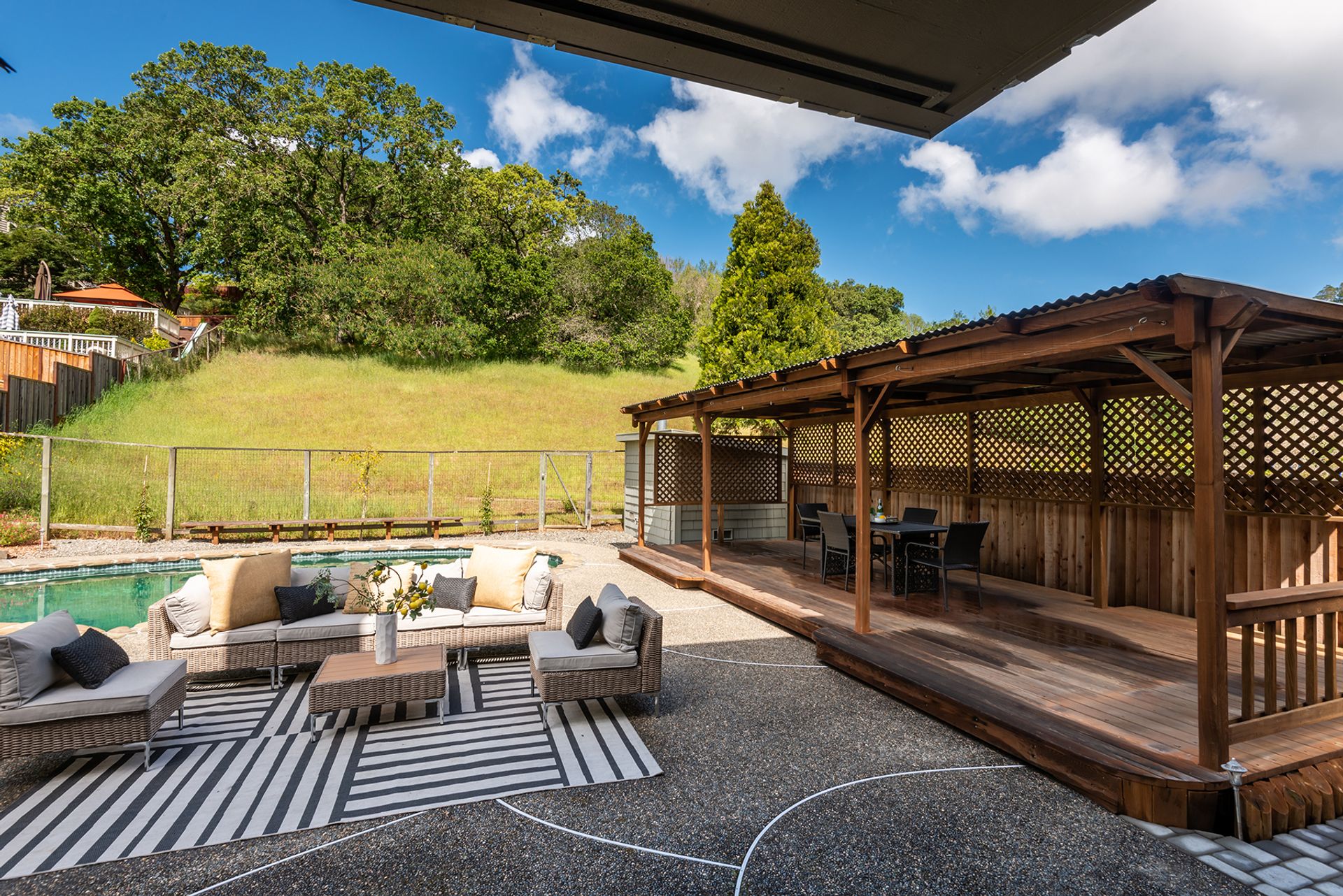 Located in a gorgeous, tranquil setting, sits this spacious home on a sizeable .27 acre lot! Fall in love with the nature that surrounds this property. This immaculate & generous sized 4bd/3 full bath boasts 2697 sq.ft. of living space. Features include eat in kitchen, Living room/dining rm combo w/high ceilings. Family rm w/slider & deck access. Main Suite incl. lrg. sitting room/bonus area w/ fireplace. 4th bd. incl. full ba. separate from upstairs with private entry usage as in-law, home office, or play. Dramatic views from almost every rm! Central air & EV charger. Plenty of room to entertain, garden, or just relax in the backyard w/sparkling solar pool/spa, lrg. patio, covered deck & gate to the open, natural, hillside. Quick access to Mt. Burdell's hiking biking, & bridle trails! Close to SMART train station, Hwy 101 & 37, yet tucked away on a peaceful, serene dead-end street. Mins. to downtown Novato for shopping, dining & many more conveniences. You will not want to miss this one!
