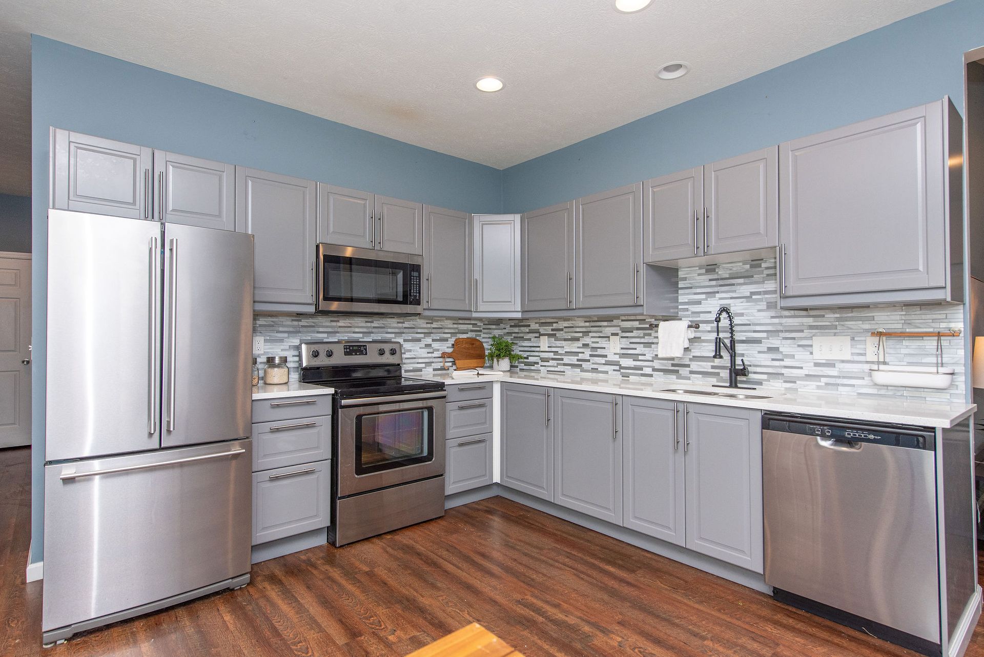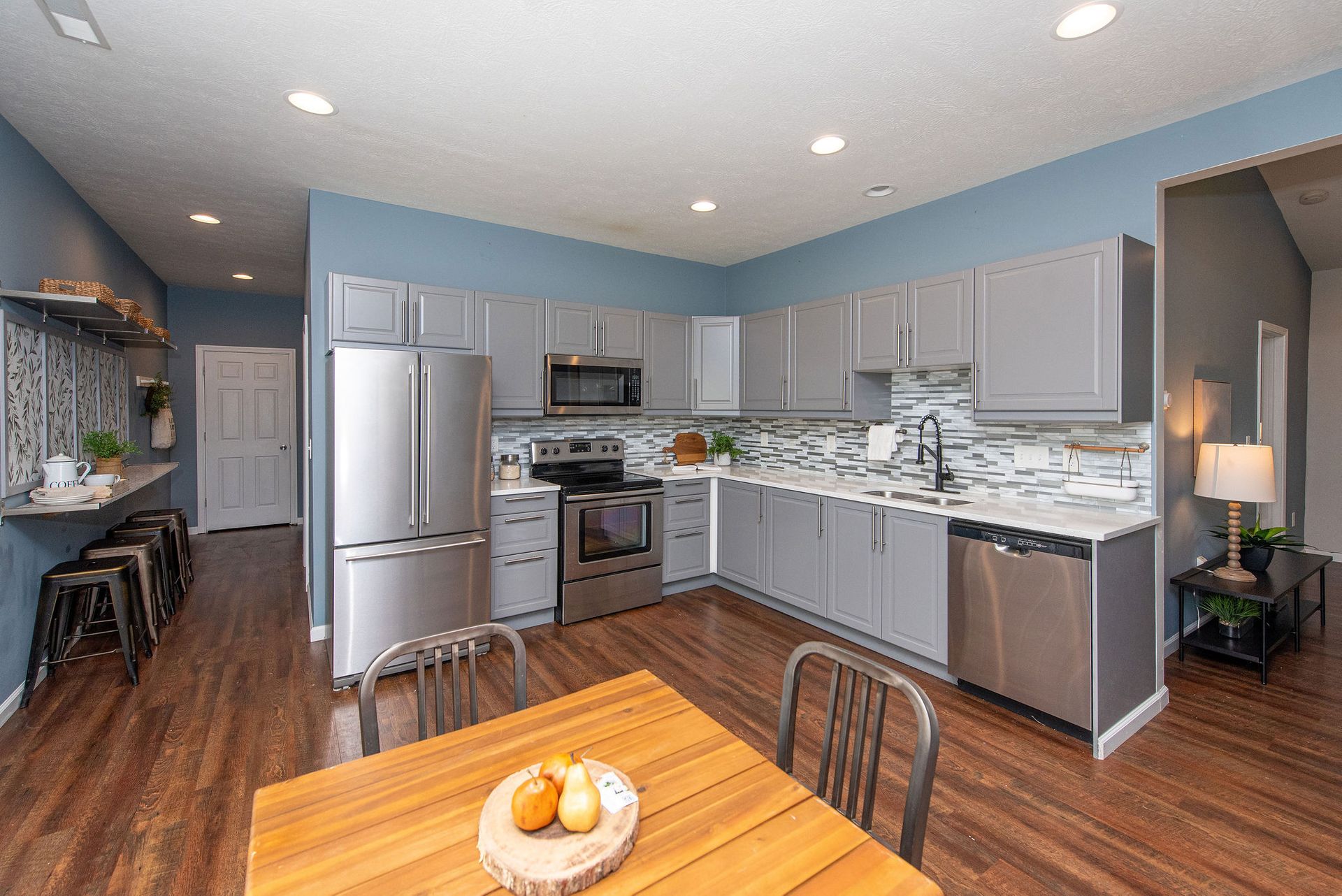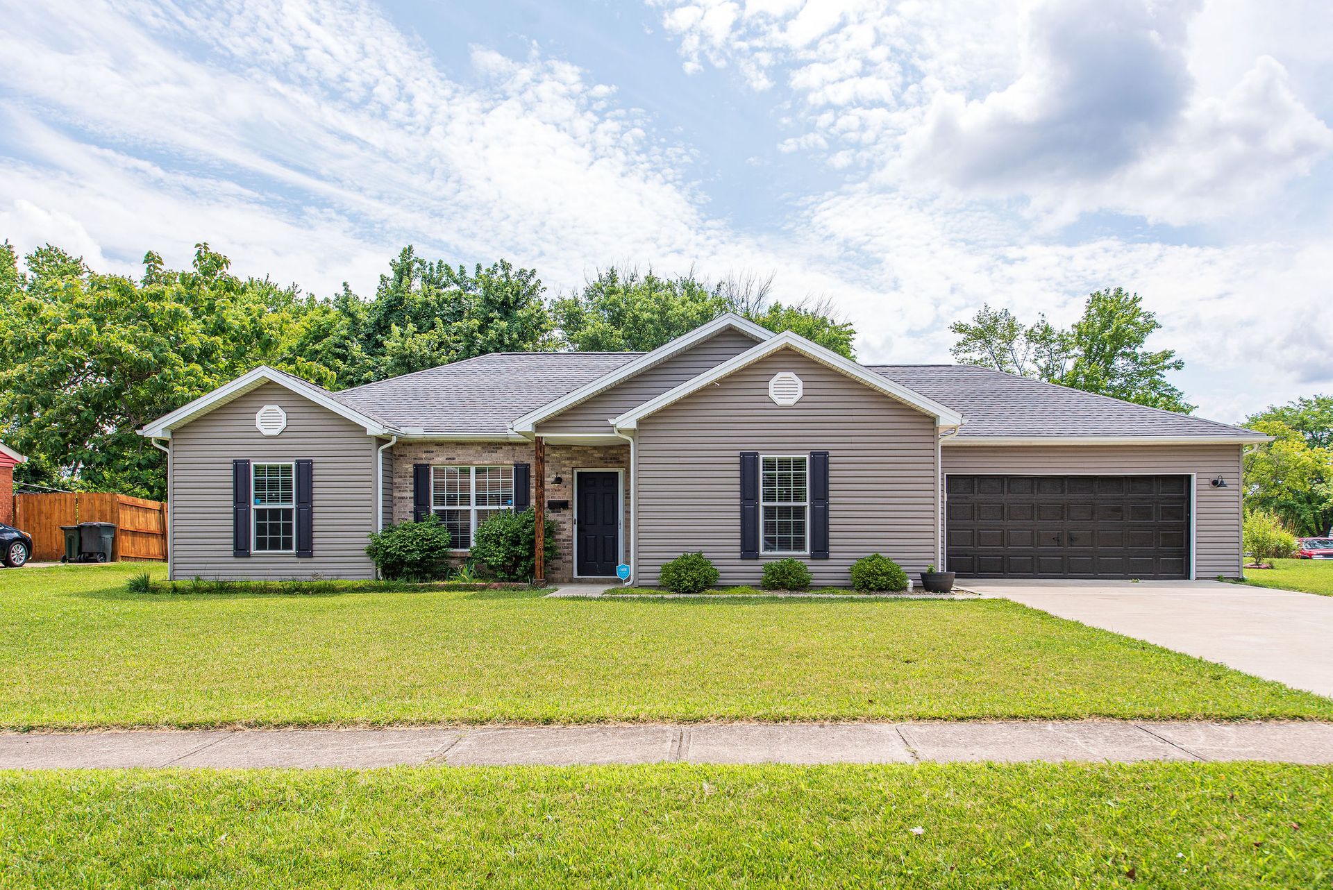 Fantastic 4-bedroom 2 full bathroom ranch slab built in 2017. Living room has vaulted ceiling and laminate flooring. Kitchen has solid surface countertops, backsplash, stainless steel appliances, dining area, coffee bar, and a walkout to an uncovered patio. Recessed lighting. Primary bedroom has newer flooring, walk-in closet, and an adjoined newly remodeled full bathroom, and double vanity. Two car garage. Corner lot with a flat back & side yard.