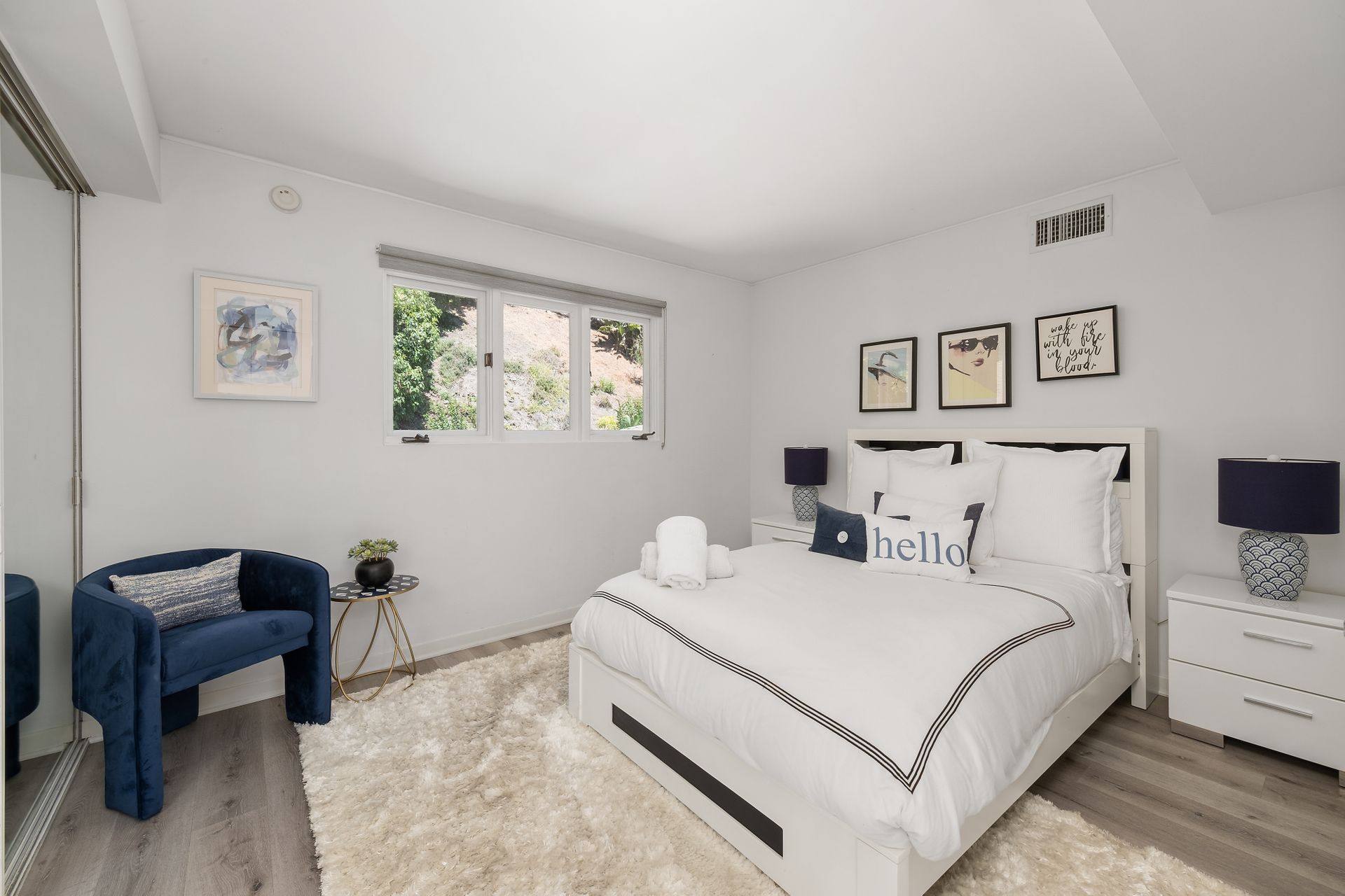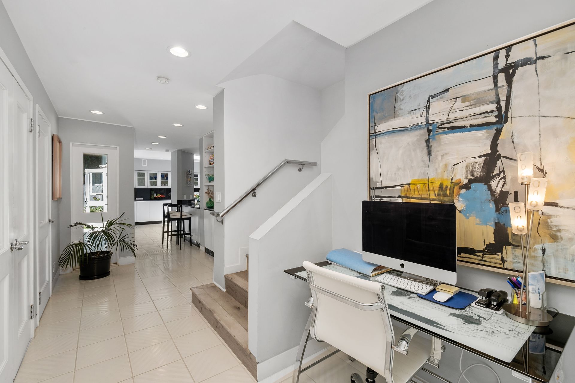 Three bedrooms and one-and-one-half-baths up as well as an upstairs den area. Extraordinarily high ceilings throughout, moderne accents and etched art glass complete the artistic journey of this home.