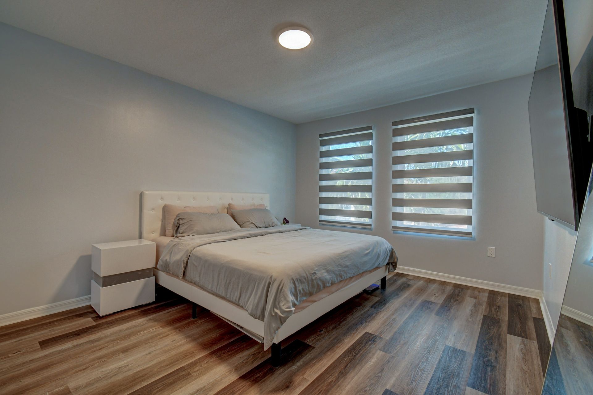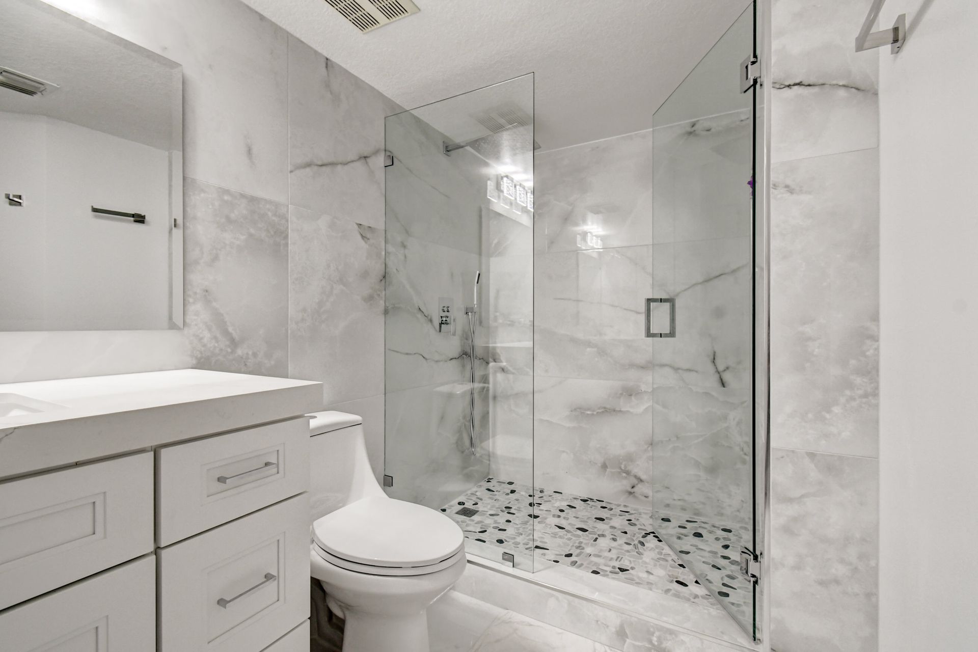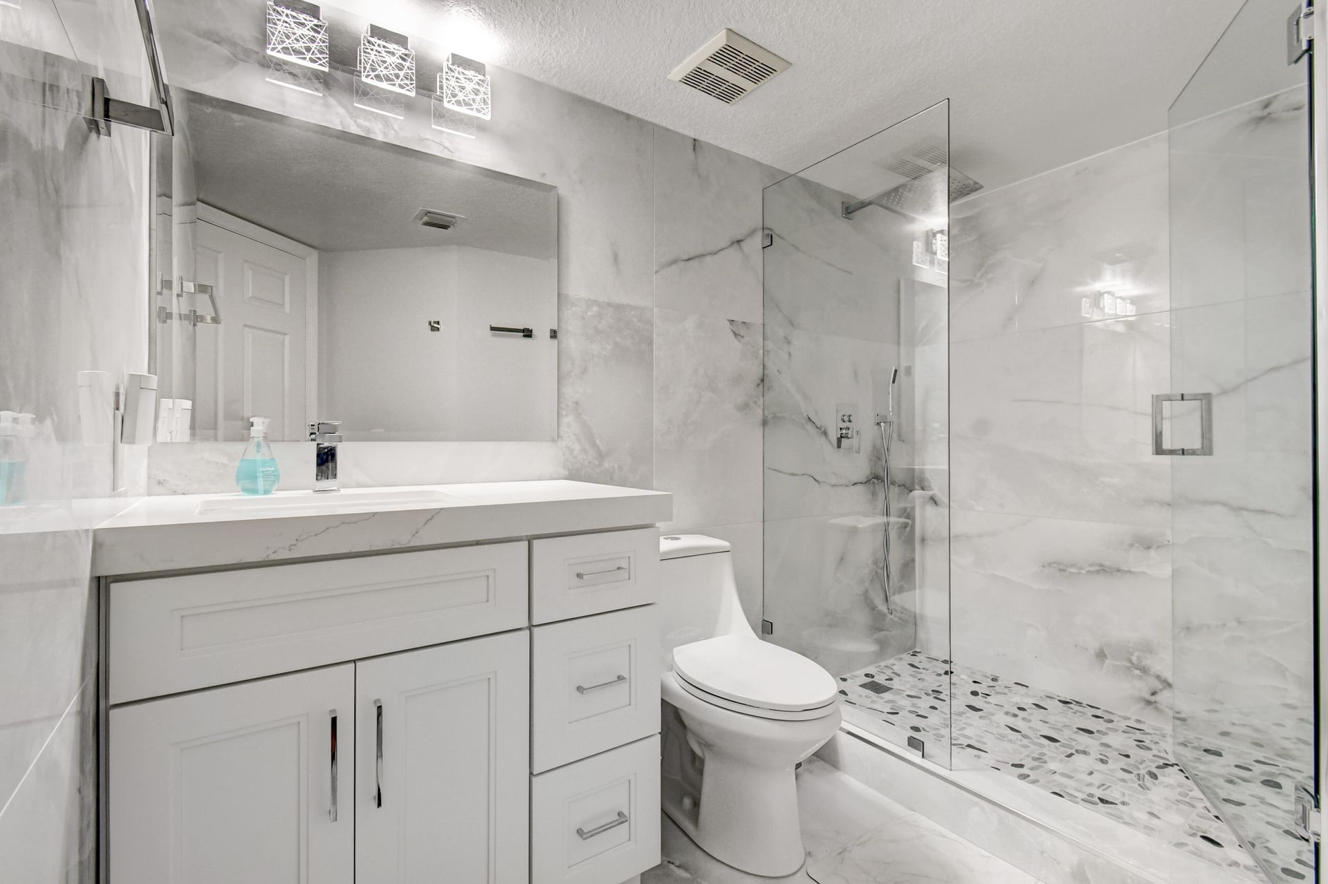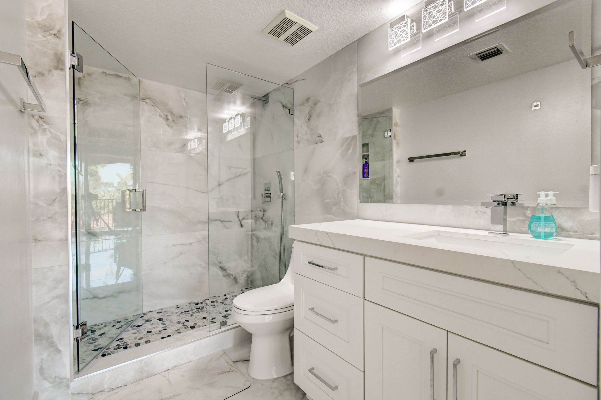 Experience grandeur with this stunning, completely remodeled penthouse in the highly-desired, gated Mirabella Villas. This rarely available three bedroom, two bathroom residence boasts vaulted ceilings and high-end finishes like oversized marbled porcelain tile and quartz countertops in the open concept kitchen. Brand new appliances include a full-sized washer and dryer. This luxuriously furnished unit offers high-tech details throughout. The primary bedroom has a generous walk-in closet and a fully redone en-suite bath with a step-in shower. The split floor plan provides privacy. There are Smart TVs in the living room, primary suite and one secondary bedroom. A covered, east facing balcony is perfect for morning coffee while you watch the sun rise. Mirabella Villas has endless amenities like a resort-style pool and spa, volleyball court, covered grilling area, billiards, gym room and indoor basketball / racquetball court. The property is one mile to I-95, 1.7 to the beach, around three miles to Delray Beach's famed Atlantic Avenue and about 20 minutes to PBI International Airport.