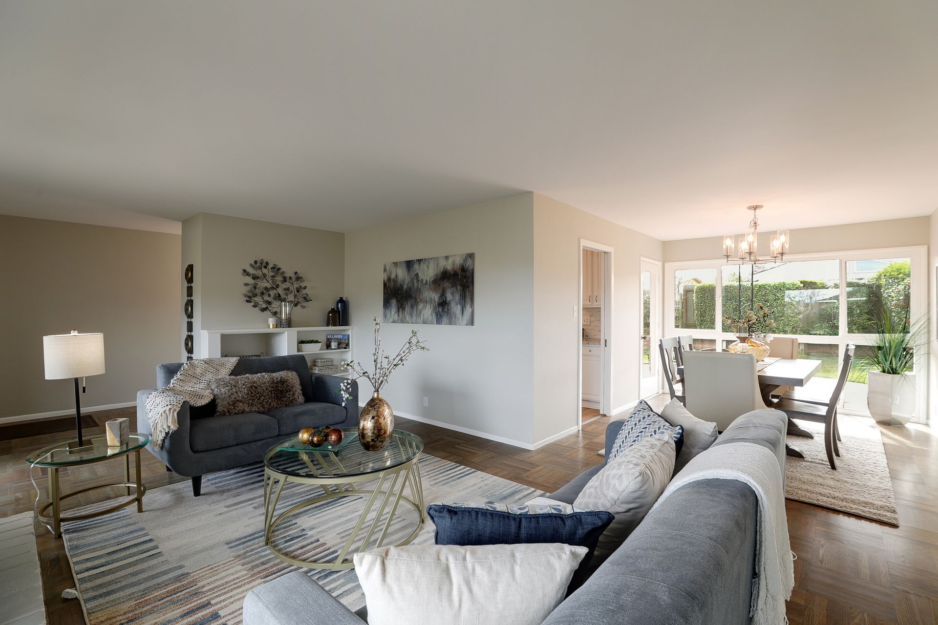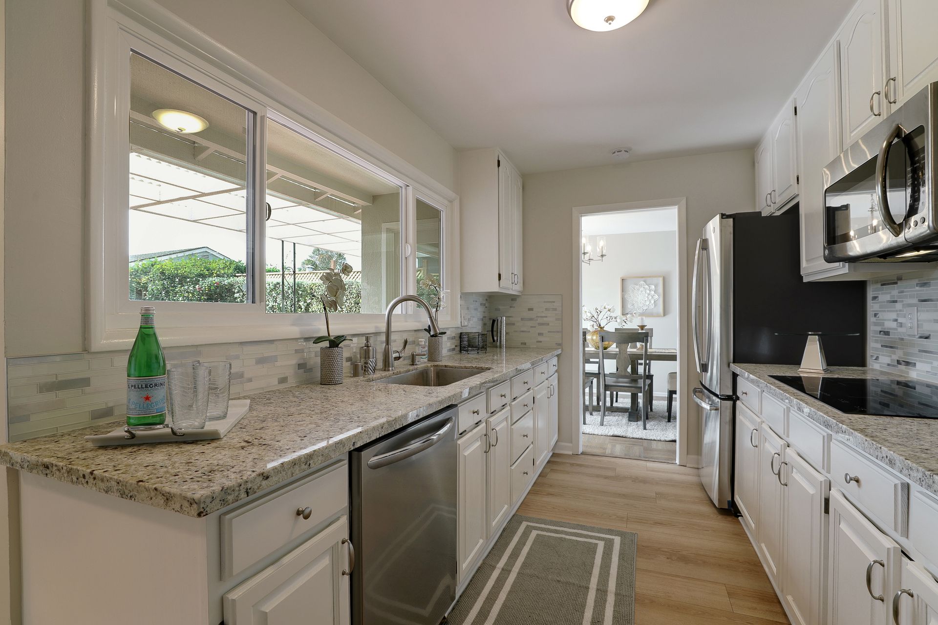 This lovely three bedroom, two bath ranch style home, built in 1956, is located in the desirable Meadows neighborhood of Millbrae. Features include a remodeled kitchen with an induction cooktop, granite countertops and backsplash, stainless steel appliances and laminate floors, an adjacent breakfast room, formal entryway, beautifully refinished hardwood and parquet floors, double pane windows, a dining area and a living room with a fireplace. This home has been freshly painted inside and out. The master bedroom suite has an updated bathroom. Additional features include a remodeled hall bathroom with a tub and shower, two additional bedrooms, lovely landscaped yards, an attached two-car garage and more. Enjoy approximately 1,410 square feet of livable space that sits on an approximately 5,040 square foot lot.