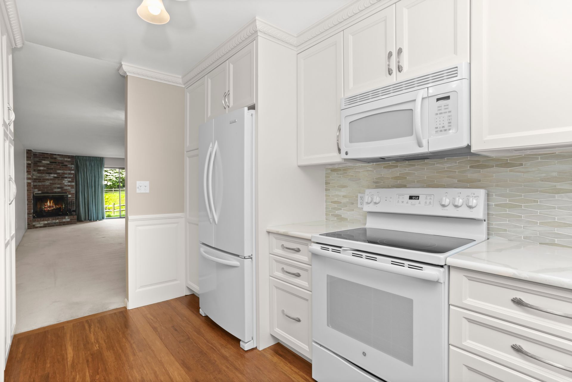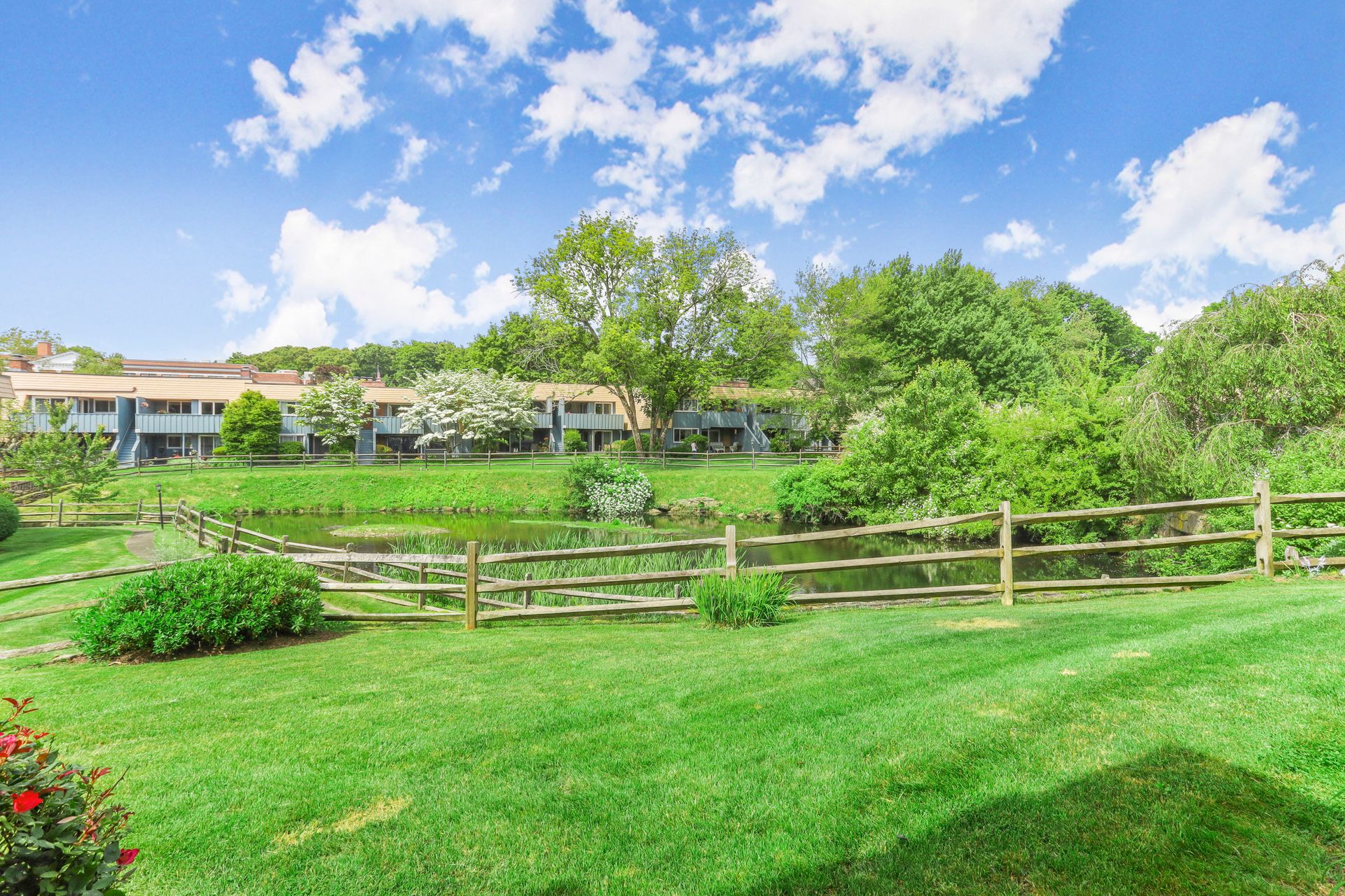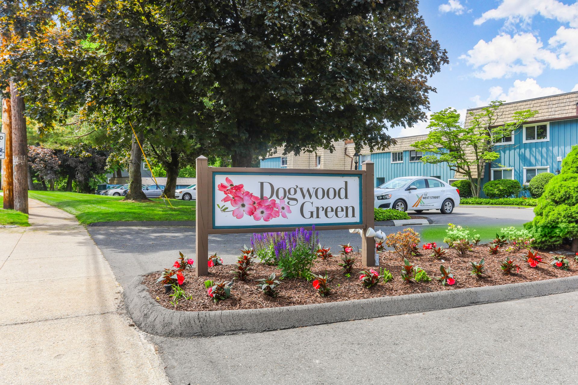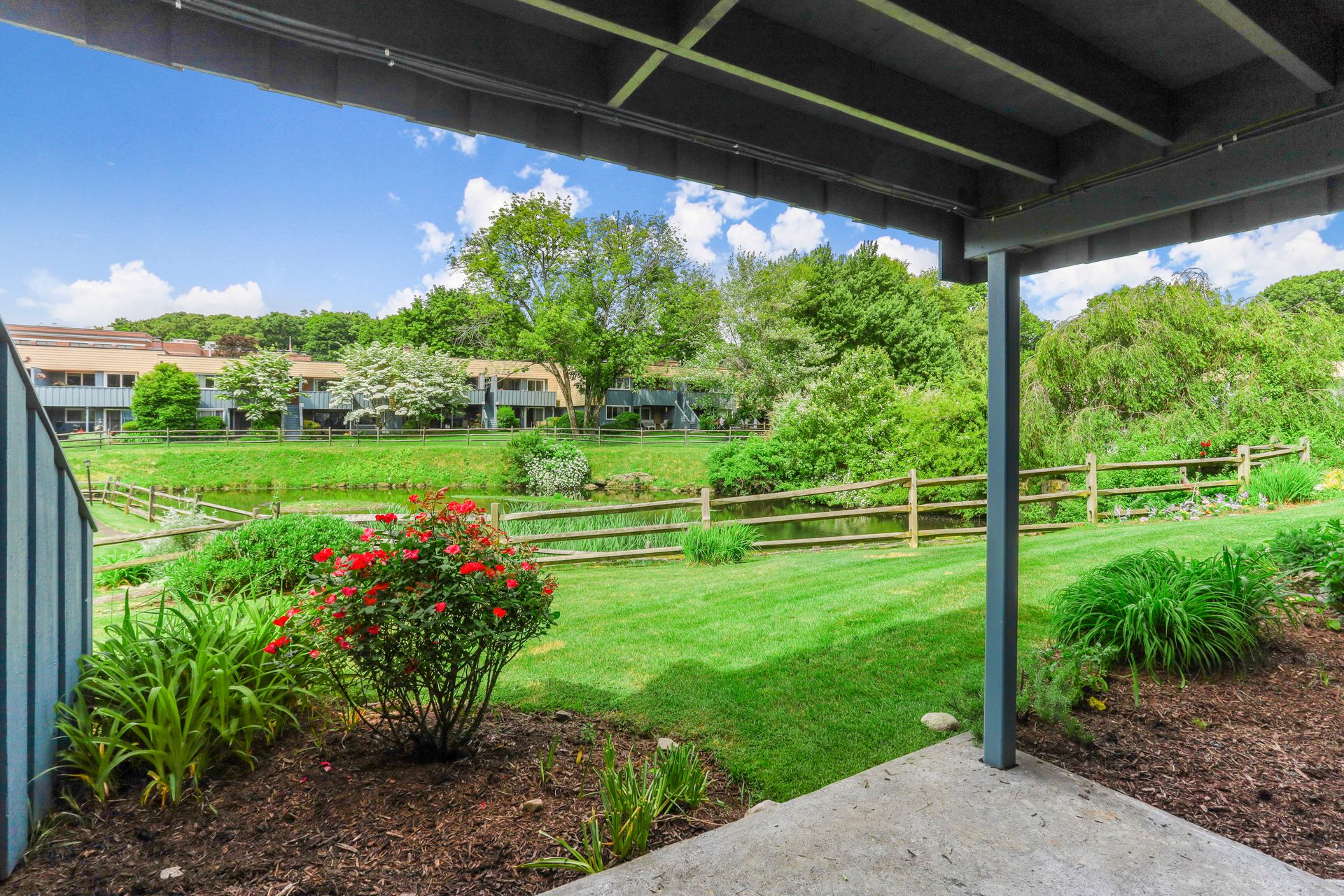 Welcome to Dogwood Green, a wonderful opportunity for a 2 bedroom ranch style condo, ground level, single level living unit in the perfect location. This well maintained unit boasts a living/dining room with brick fireplace and sliders to the patio. A newer kitchen with granite countertops, white cabinets plus built-in pantry. There are 2 spacious bedrooms, the primary bedroom has a double closet and a scenic view of the serene pond and lawn plus a primary bath with shower/tub. The second bedroom has ample closet space, an updated hallway bath with stall shower and granite countertops plus tons of storage space and washer/dryer. It is in a prime location in this complex with steps to the unit from the parking area(assigned parking space #44), ample visitor parking and the most optimal backyard location. The covered patio overlooks the pretty pond with walking paths, close to association in-ground pool, plus has an addt'l storage unit attached to the patio. The added bonus is the ONE CAR garage with even more storage. A convenient Stratfield location near shops, Owen Fish Park and minutes to the train and highway. A must see and a great opportunity!