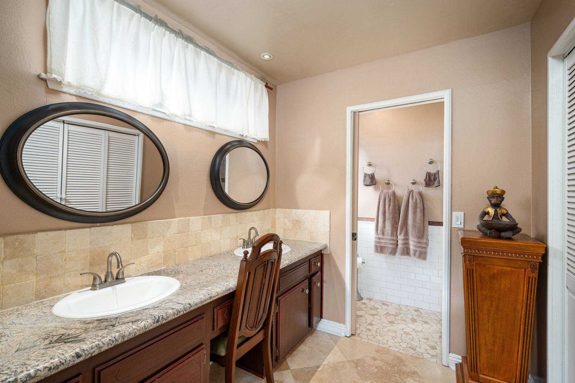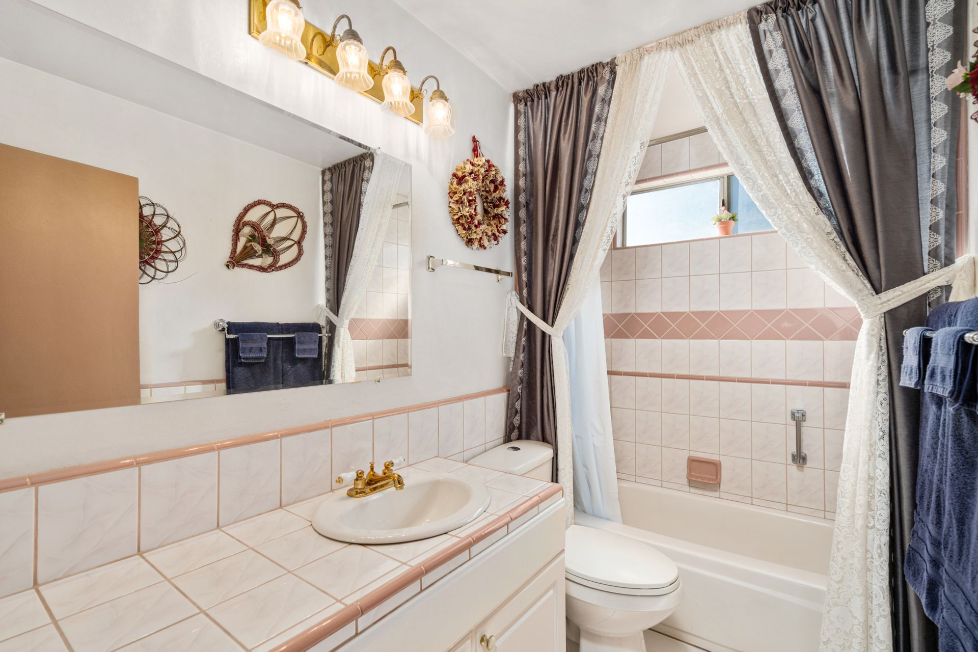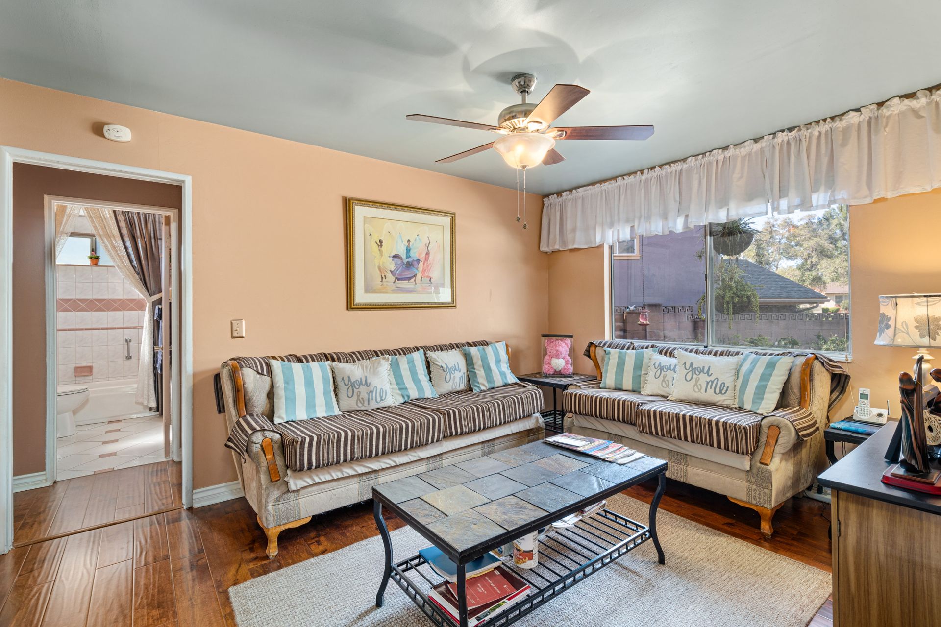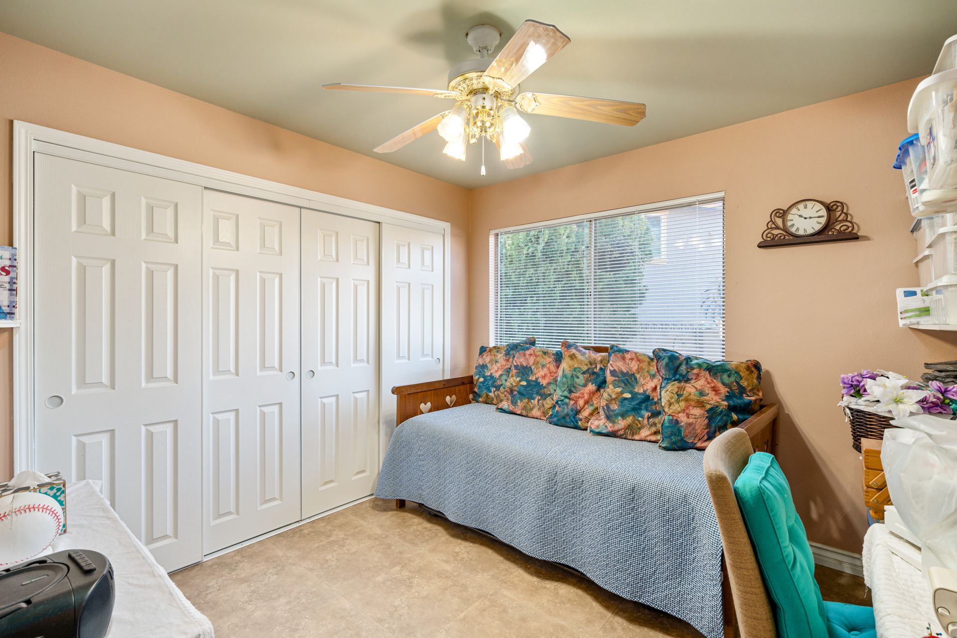 The main bedroom suite offers serene yard views and features an oversized bathroom with a double vanity, separate shower and toilet retreat. The fourth bedroom has been transformed into an awesome den with a flat-screen TV and comfy couches. A two-car garage and additional parking for two cars as well as drought-resistant landscaping complete this home not to be missed!