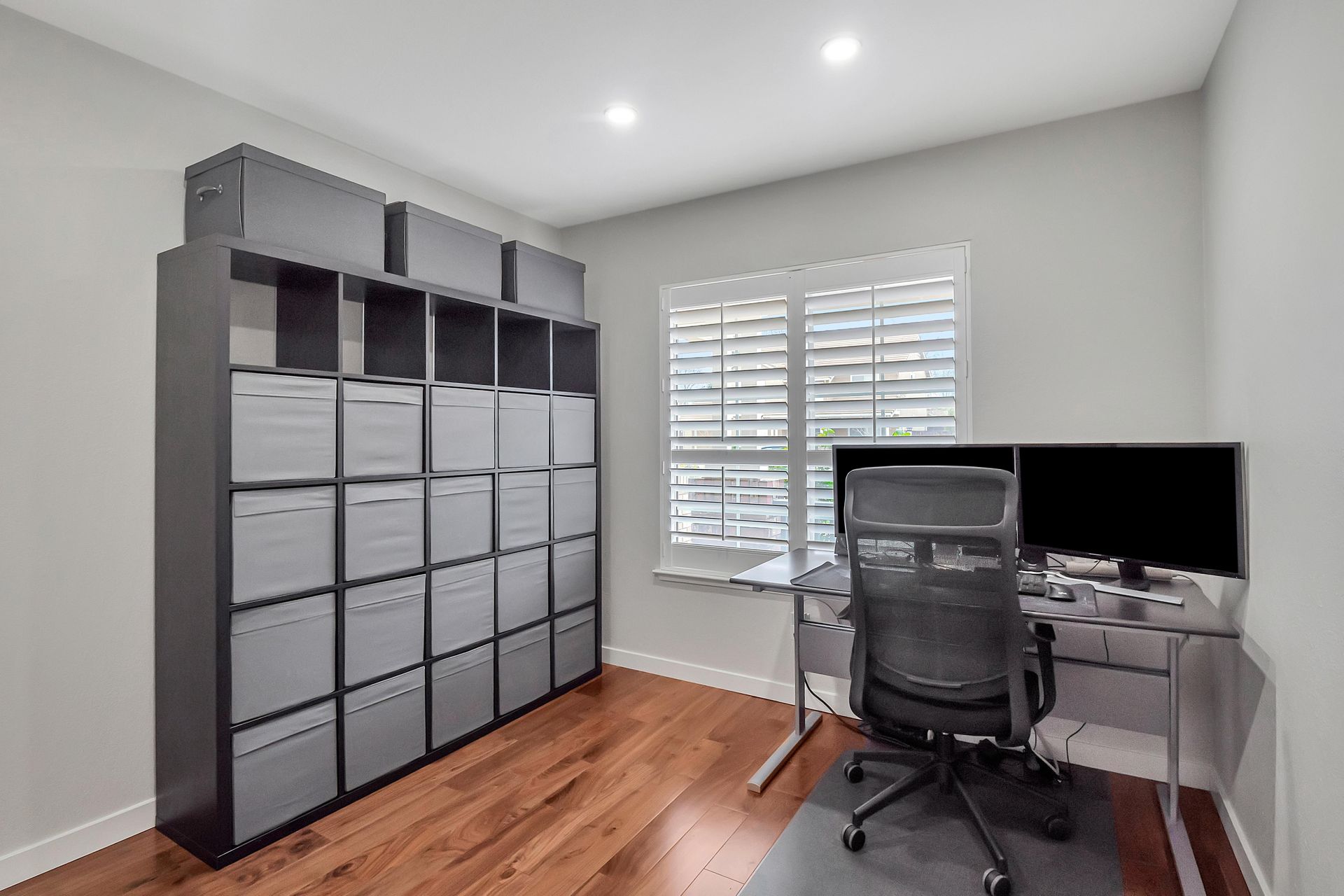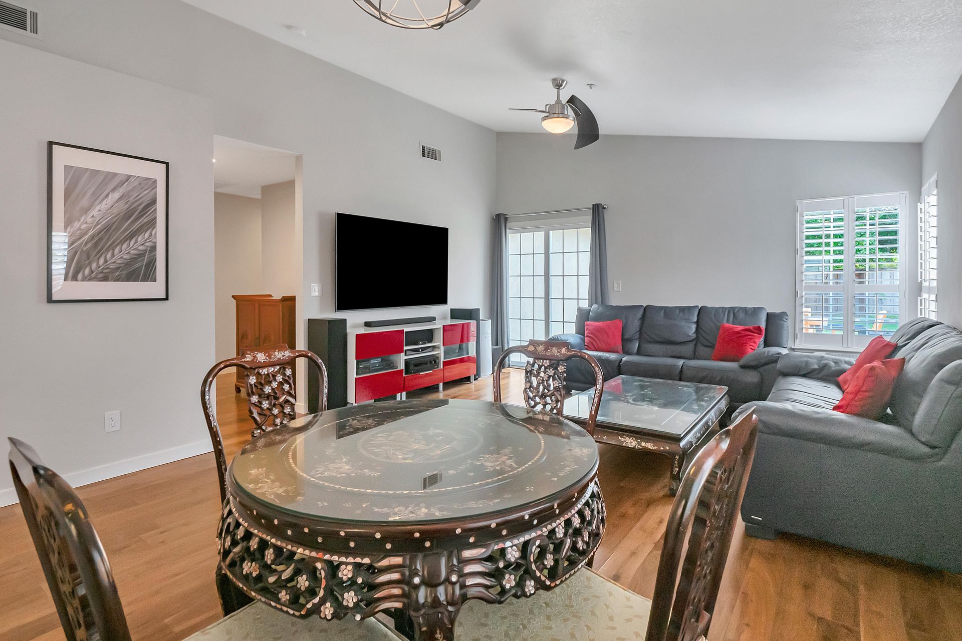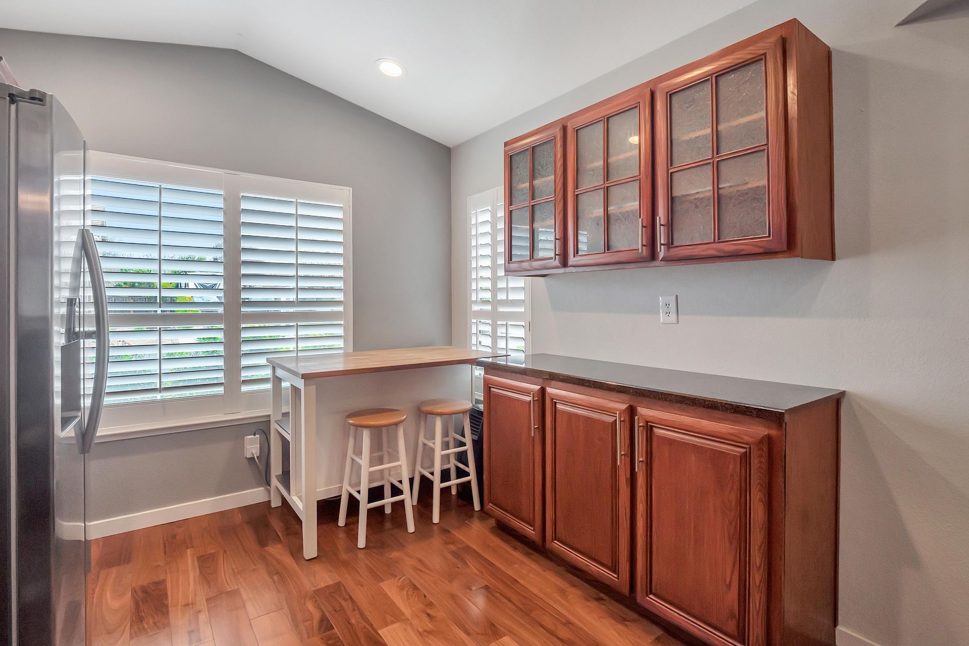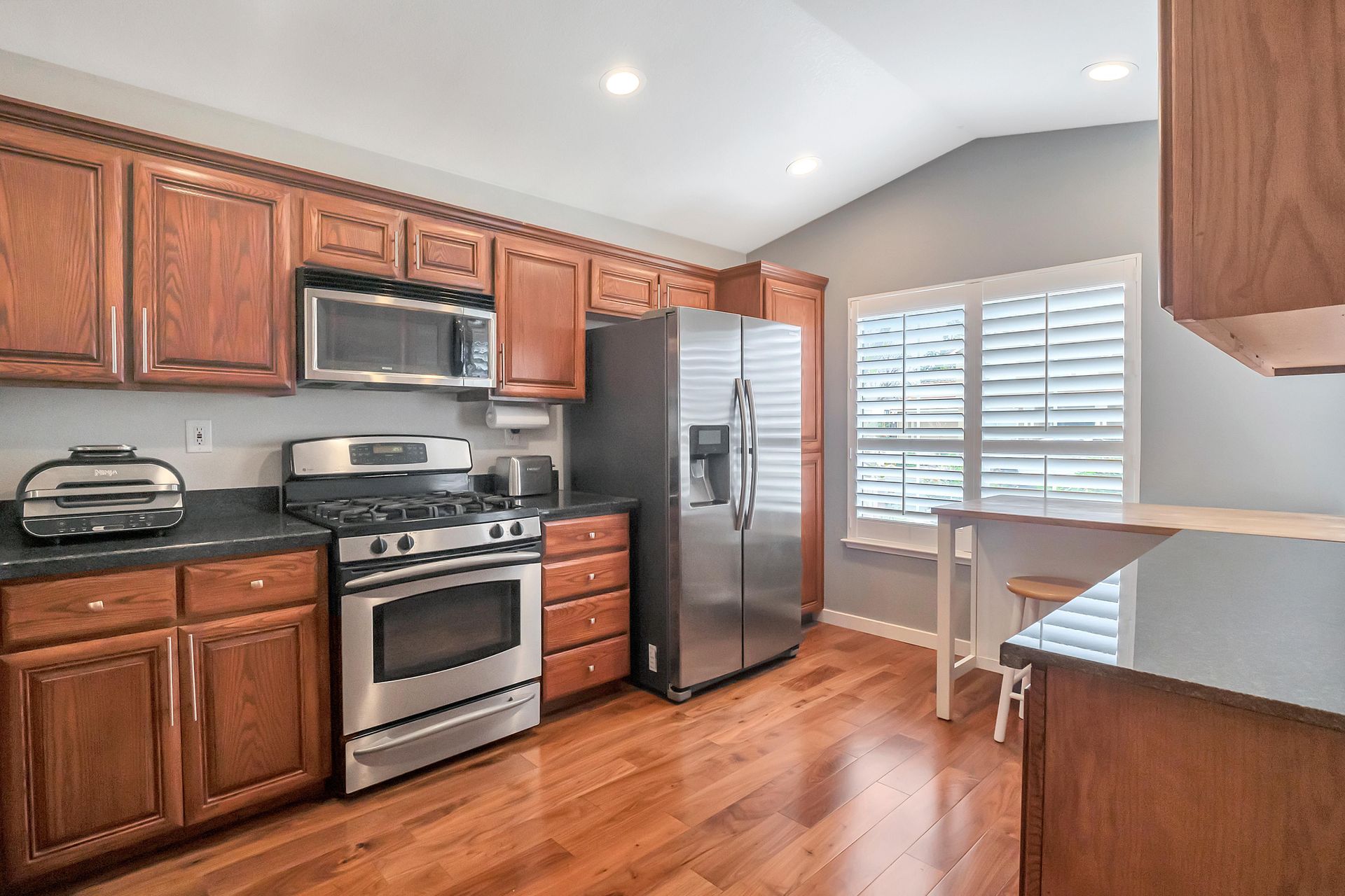 Gorgeous home inside and out. Spacious open concept living and newer beautiful wood floors. Updated kitchen has granite counters, a gas stove and stainless-steel appliances. Other features include washer/dryer, updated primary bath, plantation shutters throughout, updated light fixtures with all LED lights, parking pad for three cars, side yard access, newer concrete walkway in back and side yard, natural gas BBQ, two storage sheds and lush gardens including peach tree, plum tree, and so much more. Conveniently located close to major tech companies, restaurants, entertainment, parks and schools, as well as quick easy access to freeways. Don't miss this opportunity!