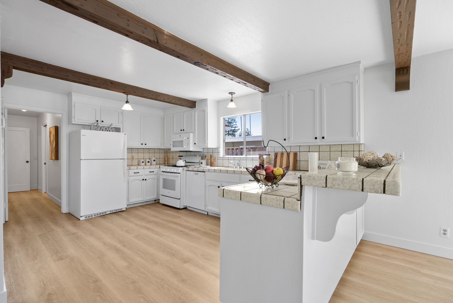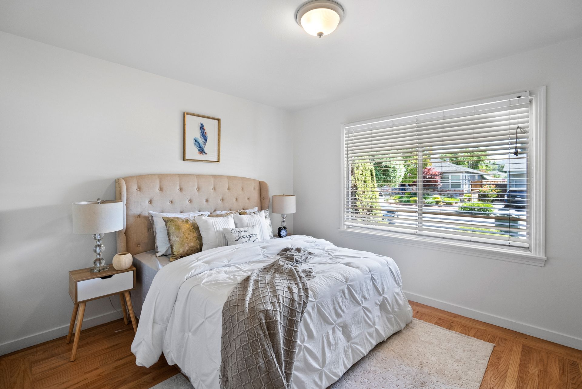 Welcome to this charming single-family home in Redwood City, constructed in 1949, that has only had one owner. It's just the right size with two bedrooms and two bathrooms. The exterior and interior have been freshly painted, giving it a clean and welcoming feel. The living room, hallway and bedrooms boast original oak wood floors, while the utility room, hallway to great room, great room and second bathroom have new vinyl flooring. The original bathroom boasts a unique design with maroon and grey tiles and a white swan accent trim. The great room also features a cast iron fireplace from the early 1900s, adding to the home's character. With plenty of natural light, the space feels open and cozy. There's even an opportunity for an ADU or outside kitchen. The location is ideal, just about one block from Roosevelt Center, Key Market, Shell Gas Station, Public Library, Rite Aid and Roosevelt elementary school. Plus, it's easy to access the 280 and 101, making it easy for commuters.