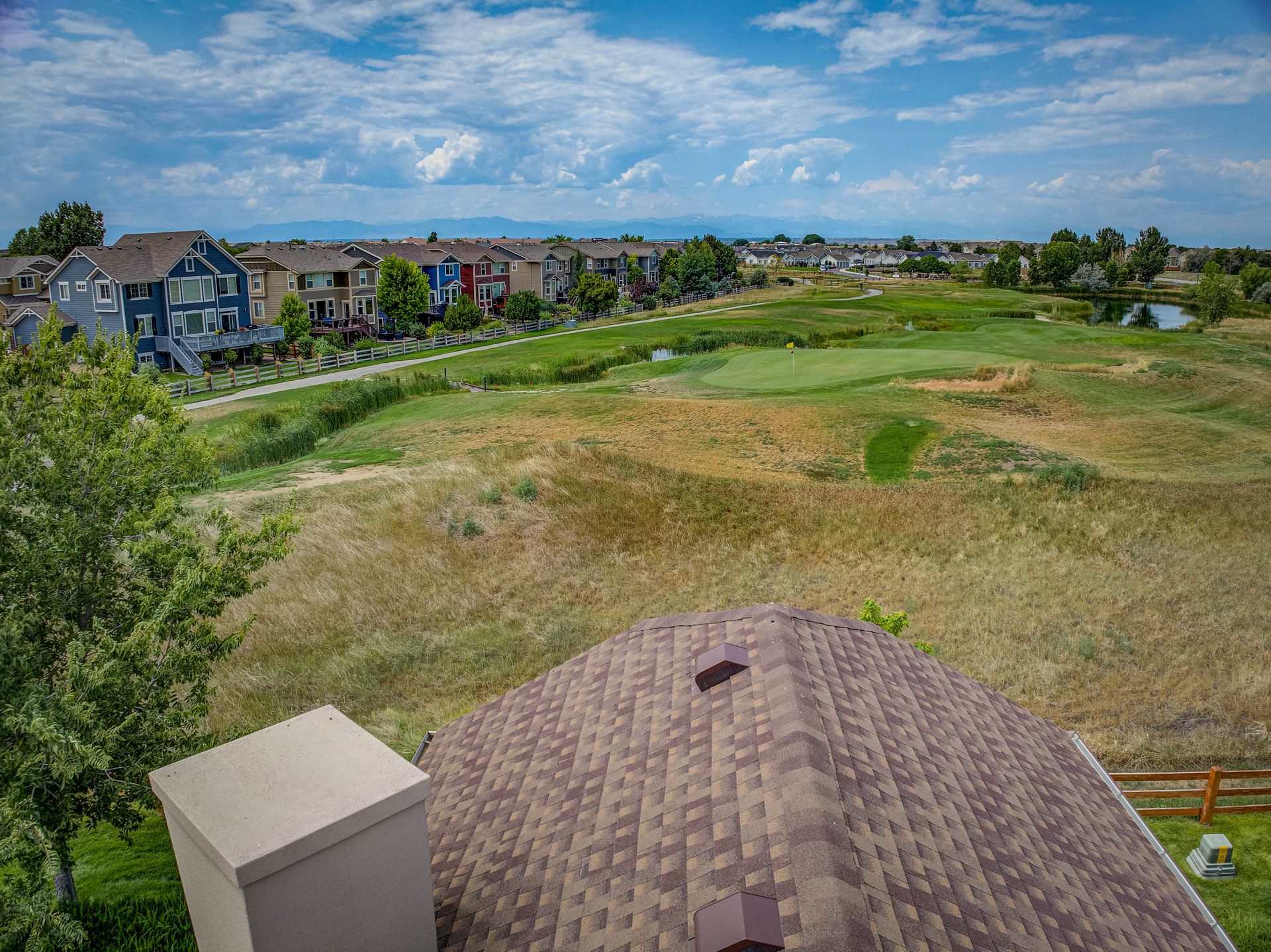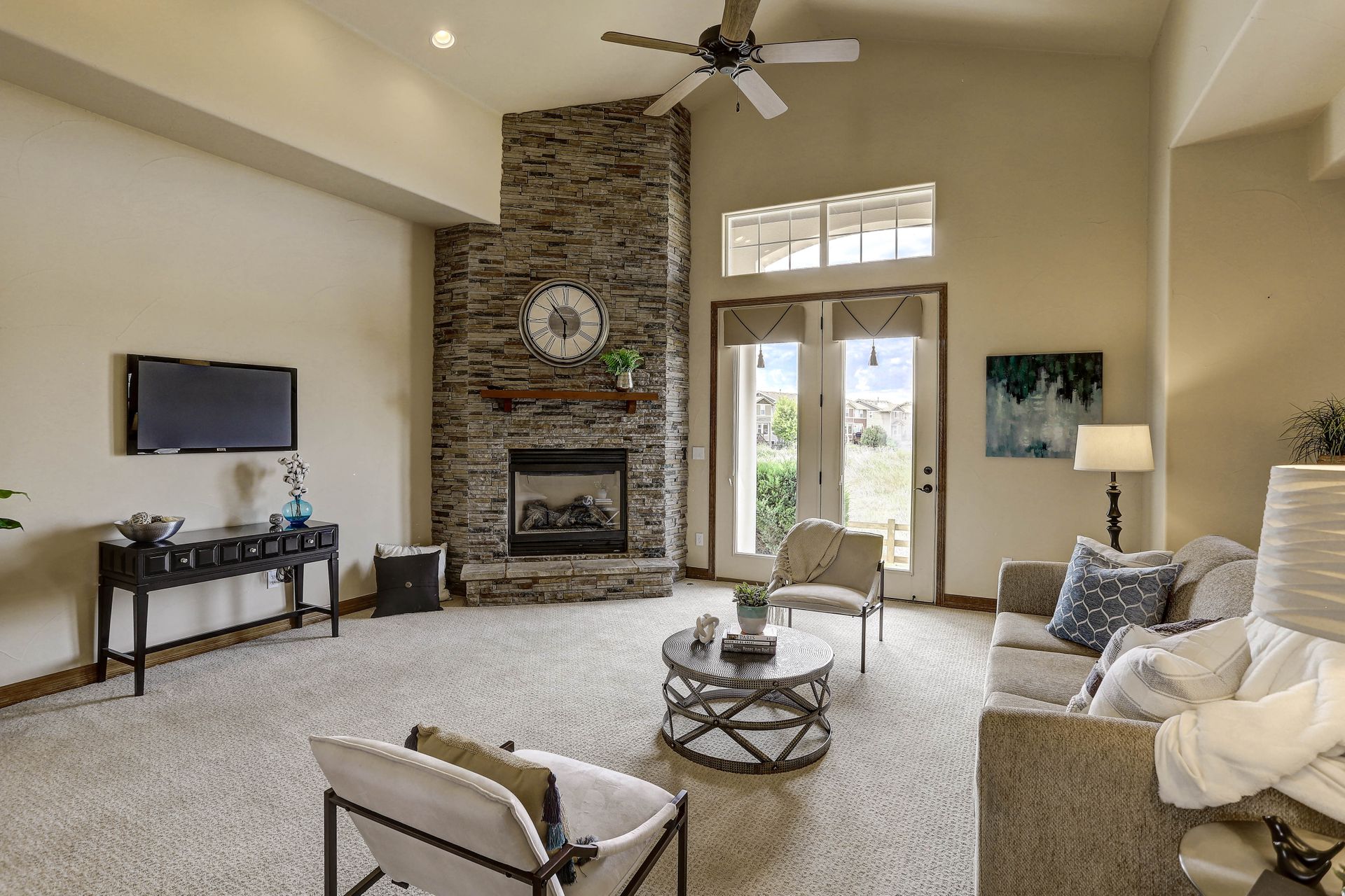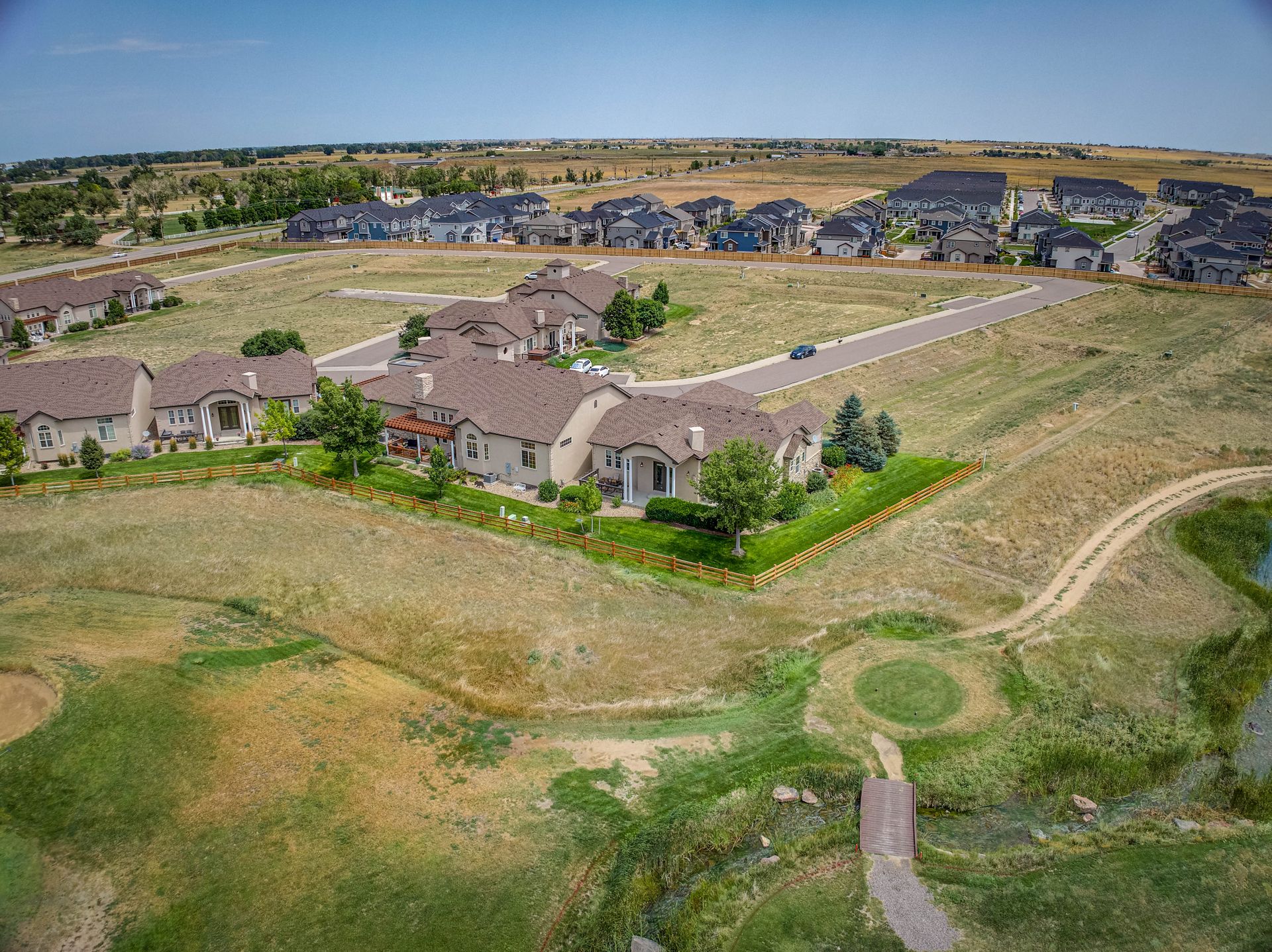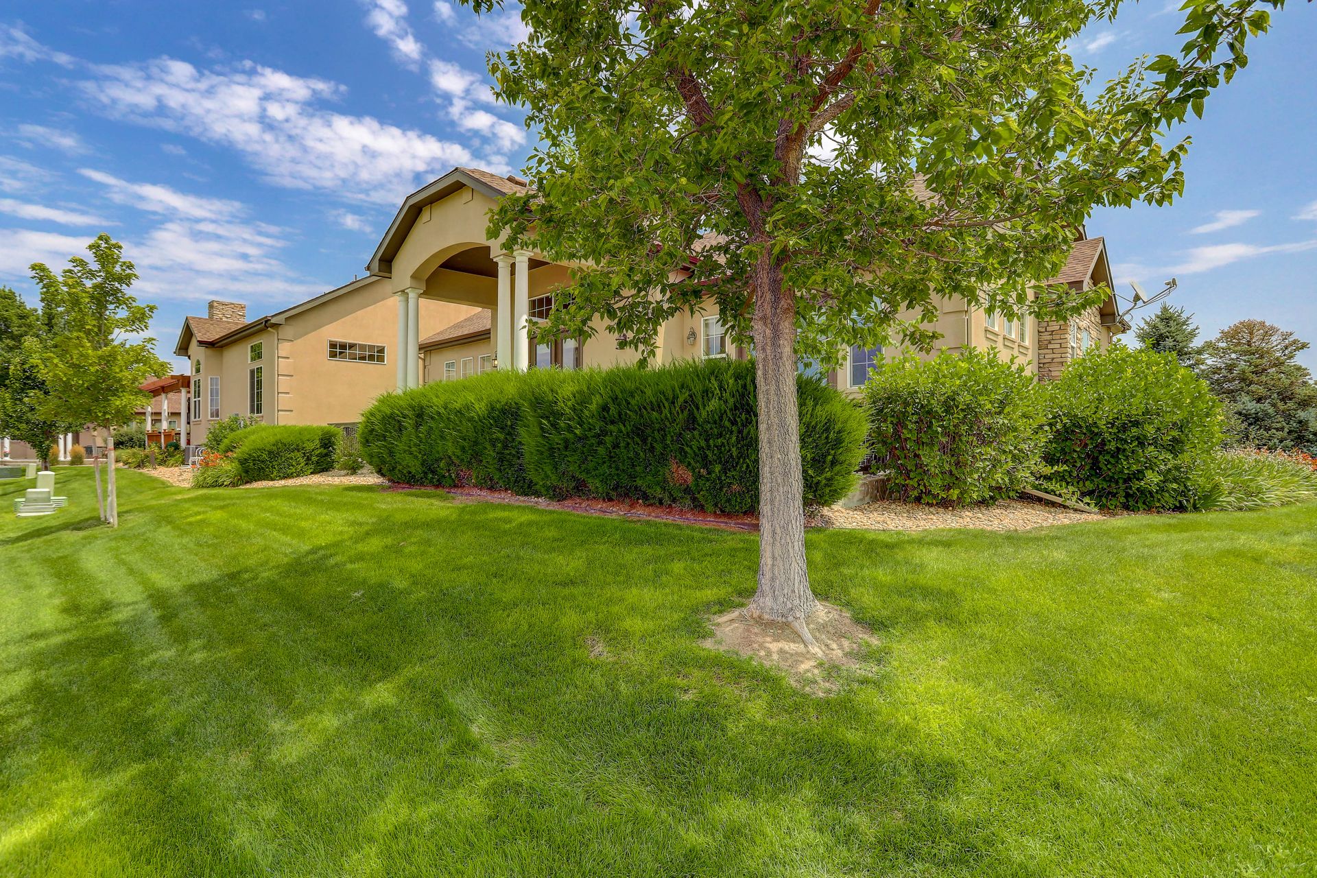 Gorgeous patio home surrounded by golf course, with over 4100 finished square feet. This beautiful home has high ceilings and an open floor plan. The kitchen hosts granite countertops with a breakfast bar, stainless steel appliances and plenty of cabinets, accented with decorative crown molding and under cabinet lighting. The living room has a stacked-stone, gas fireplace, vaulted ceilings and double glass doors leading to the patio. The spacious dining room offers a coffered ceiling and a graceful archway. The main floor primary suite also has double doors leading to the patio, a five-piece bath and a walk-in closet. The main floor also has an office and additional bedroom. The finished basement includes a family room with a fireplace and a wet bar as well as a three-fourths bath and two large bedrooms. Outside you'll find a spacious patio with views of the mountains, golf course and pond. The HOA provides exterior building maintenance, snow removal and grounds maintenance. This is a very quiet, gated community with easy highway access to I-76.