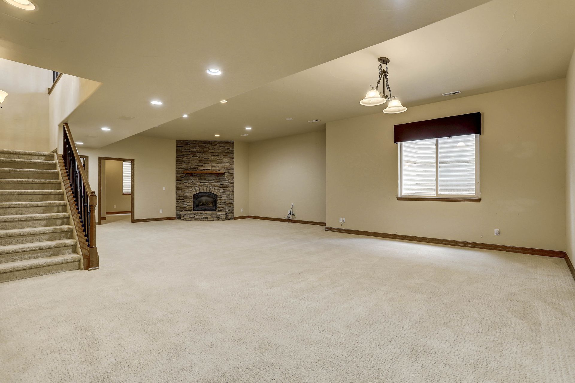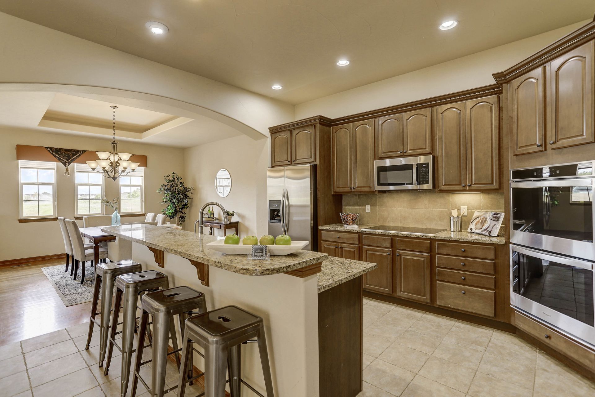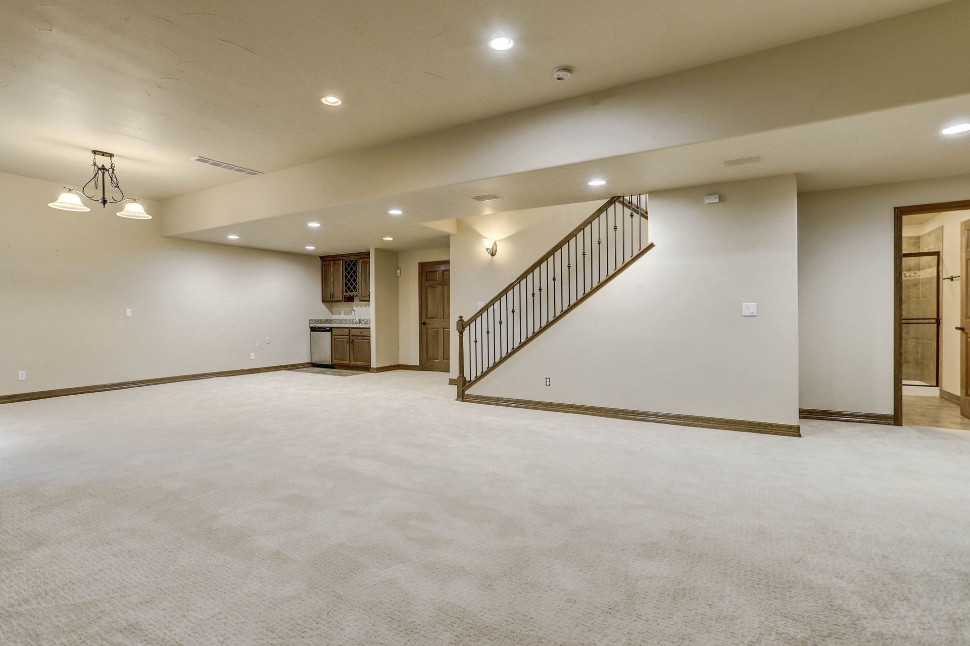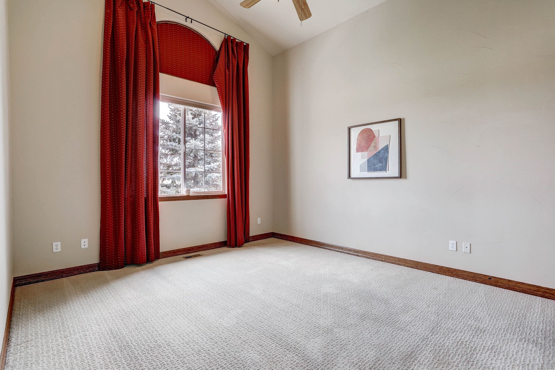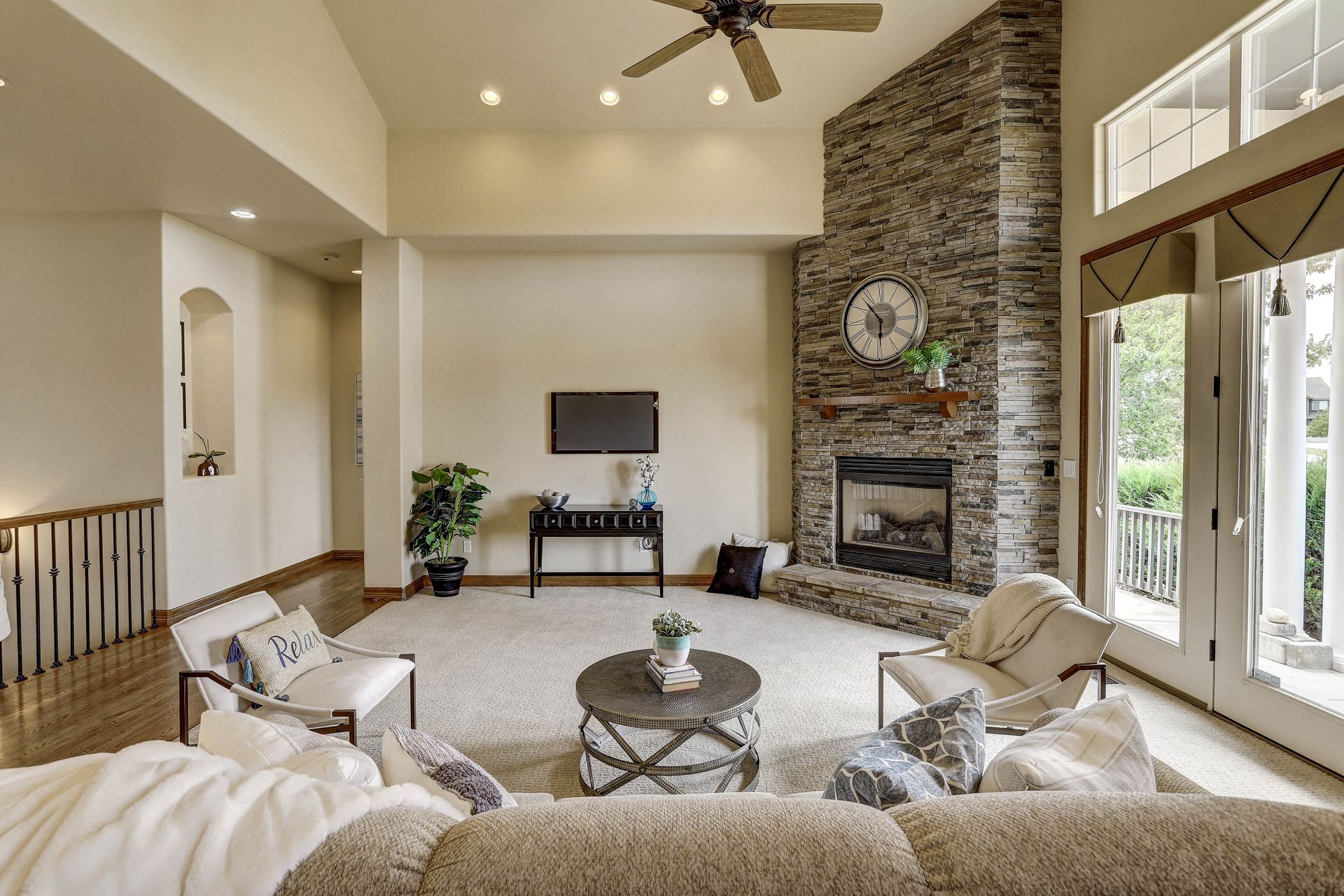 Gorgeous patio home surrounded by golf course, with over 4100 finished square feet. This beautiful home has high ceilings and an open floor plan. The kitchen hosts granite countertops with a breakfast bar, stainless steel appliances and plenty of cabinets, accented with decorative crown molding and under cabinet lighting. The living room has a stacked-stone, gas fireplace, vaulted ceilings and double glass doors leading to the patio. The spacious dining room offers a coffered ceiling and a graceful archway. The main floor primary suite also has double doors leading to the patio, a five-piece bath and a walk-in closet. The main floor also has an office and additional bedroom. The finished basement includes a family room with a fireplace and a wet bar as well as a three-fourths bath and two large bedrooms. Outside you'll find a spacious patio with views of the mountains, golf course and pond. The HOA provides exterior building maintenance, snow removal and grounds maintenance. This is a very quiet, gated community with easy highway access to I-76.