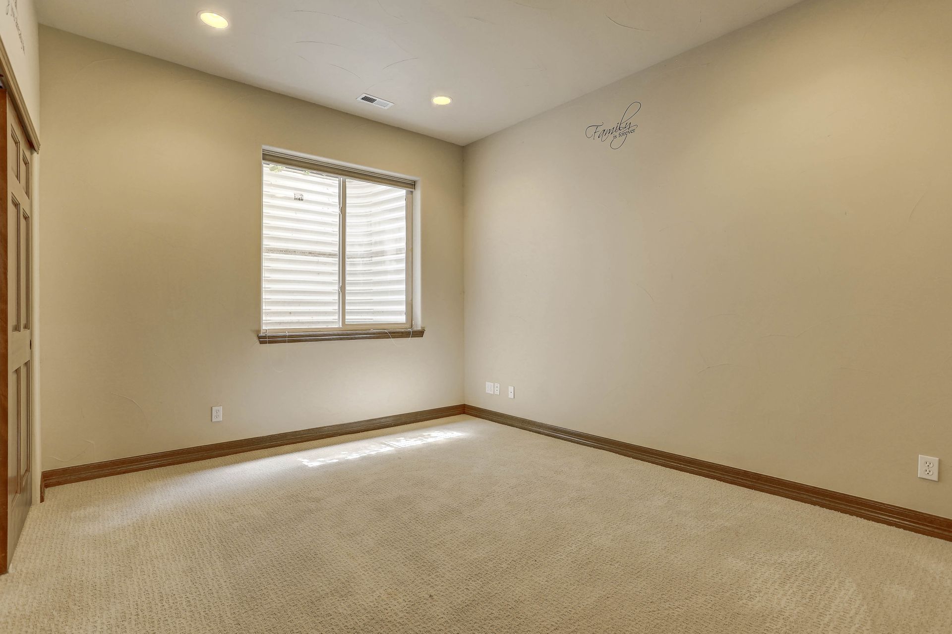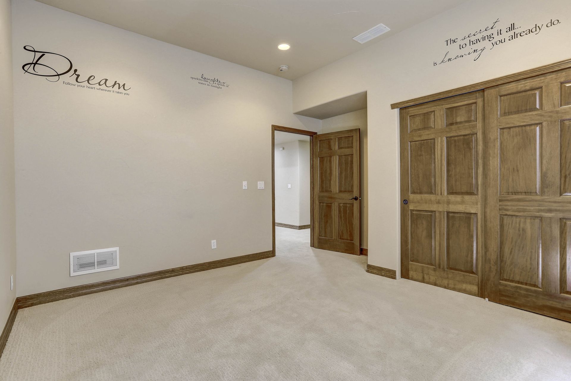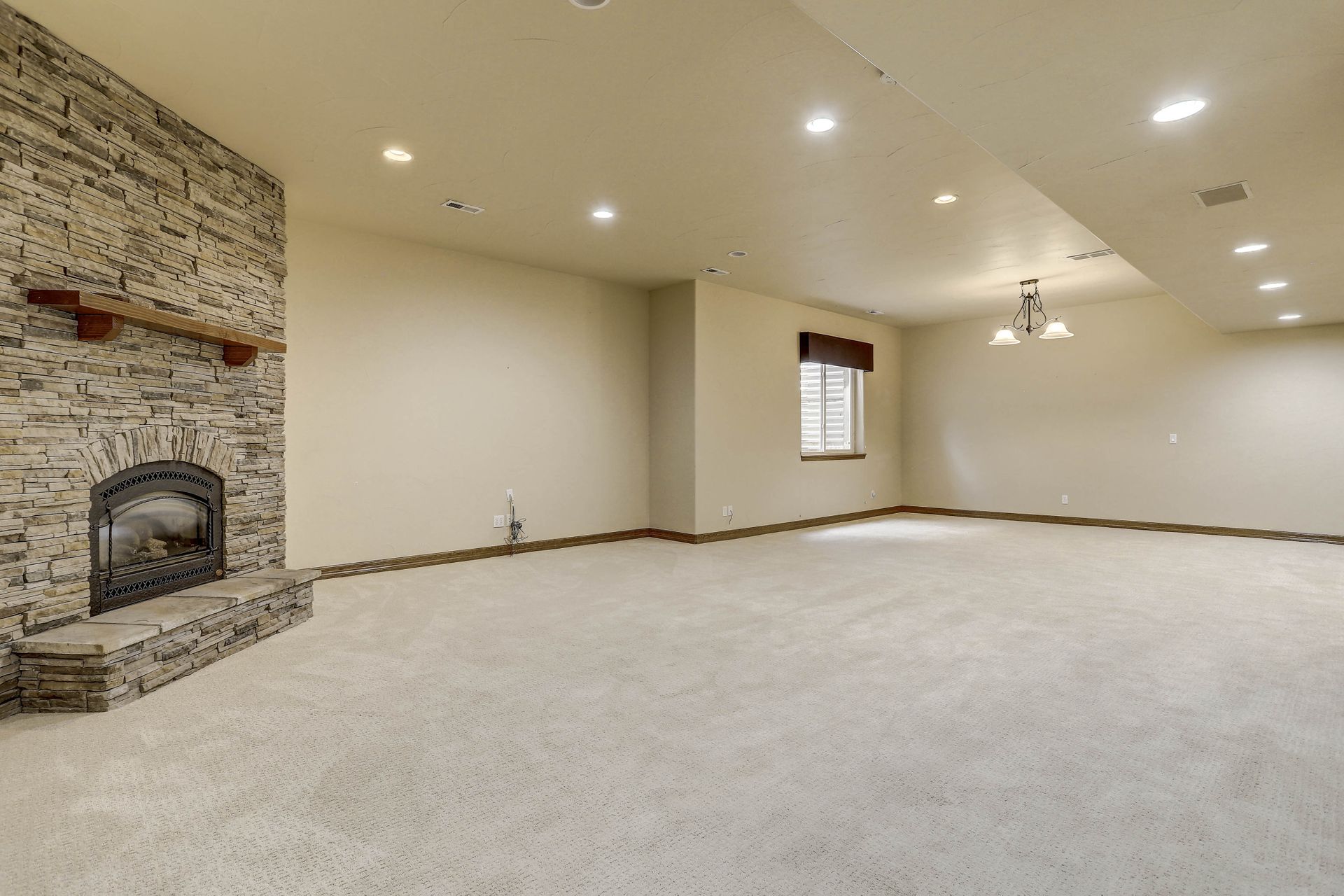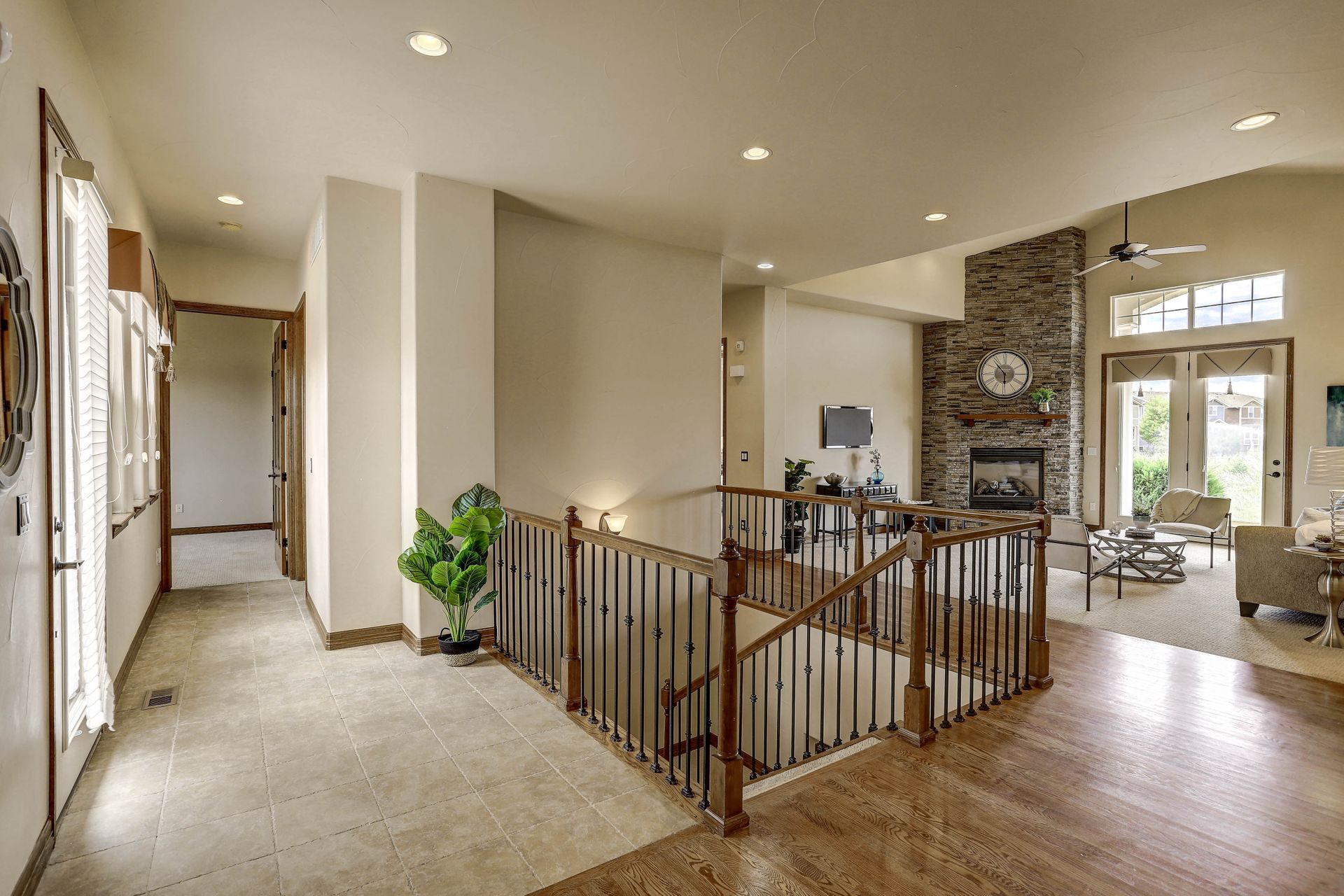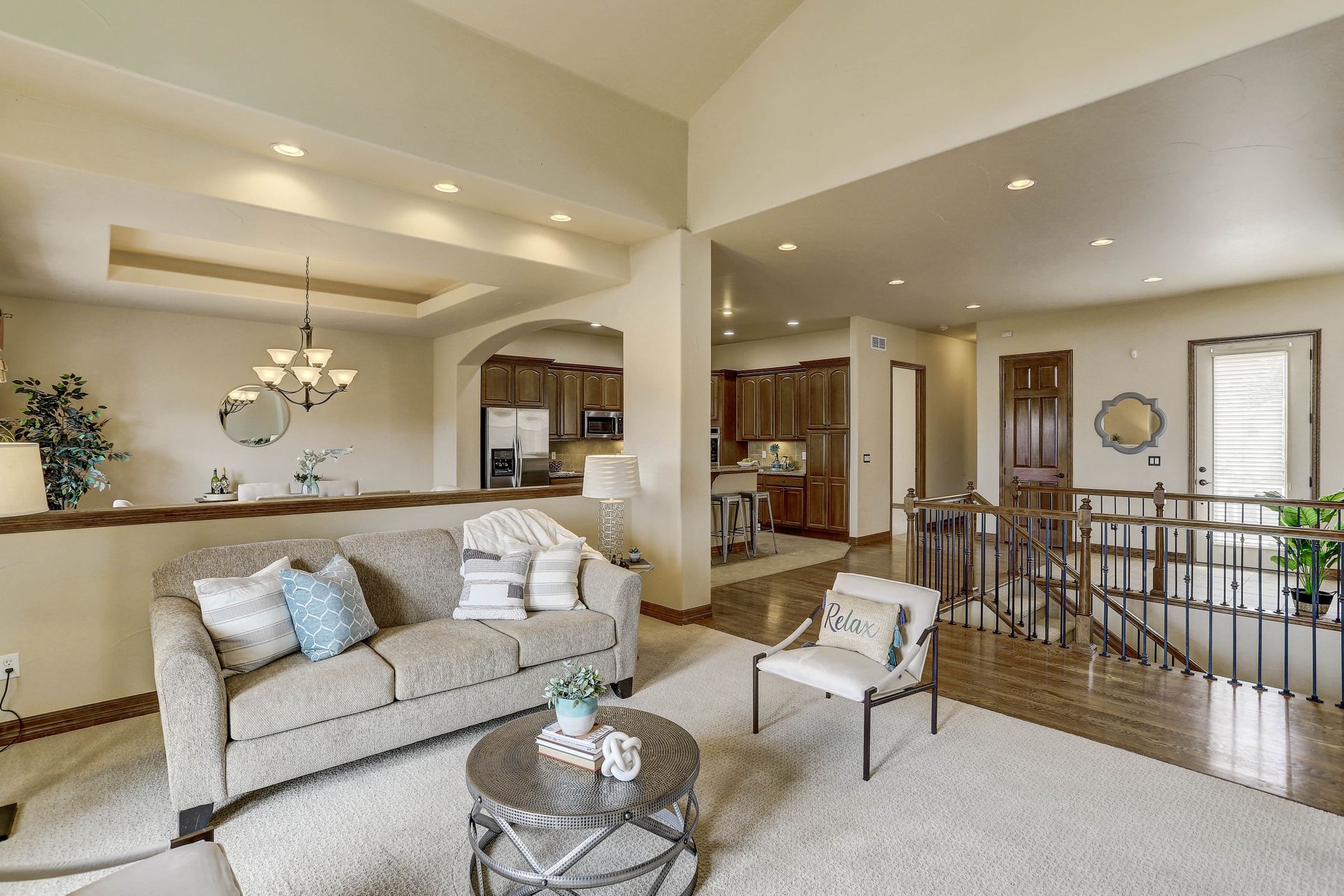 Gorgeous patio home surrounded by golf course, with over 4100 finished square feet. This beautiful home has high ceilings and an open floor plan. The kitchen hosts granite countertops with a breakfast bar, stainless steel appliances and plenty of cabinets, accented with decorative crown molding and under cabinet lighting. The living room has a stacked-stone, gas fireplace, vaulted ceilings and double glass doors leading to the patio. The spacious dining room offers a coffered ceiling and a graceful archway. The main floor primary suite also has double doors leading to the patio, a five-piece bath and a walk-in closet. The main floor also has an office and additional bedroom. The finished basement includes a family room with a fireplace and a wet bar as well as a three-fourths bath and two large bedrooms. Outside you'll find a spacious patio with views of the mountains, golf course and pond. The HOA provides exterior building maintenance, snow removal and grounds maintenance. This is a very quiet, gated community with easy highway access to I-76.