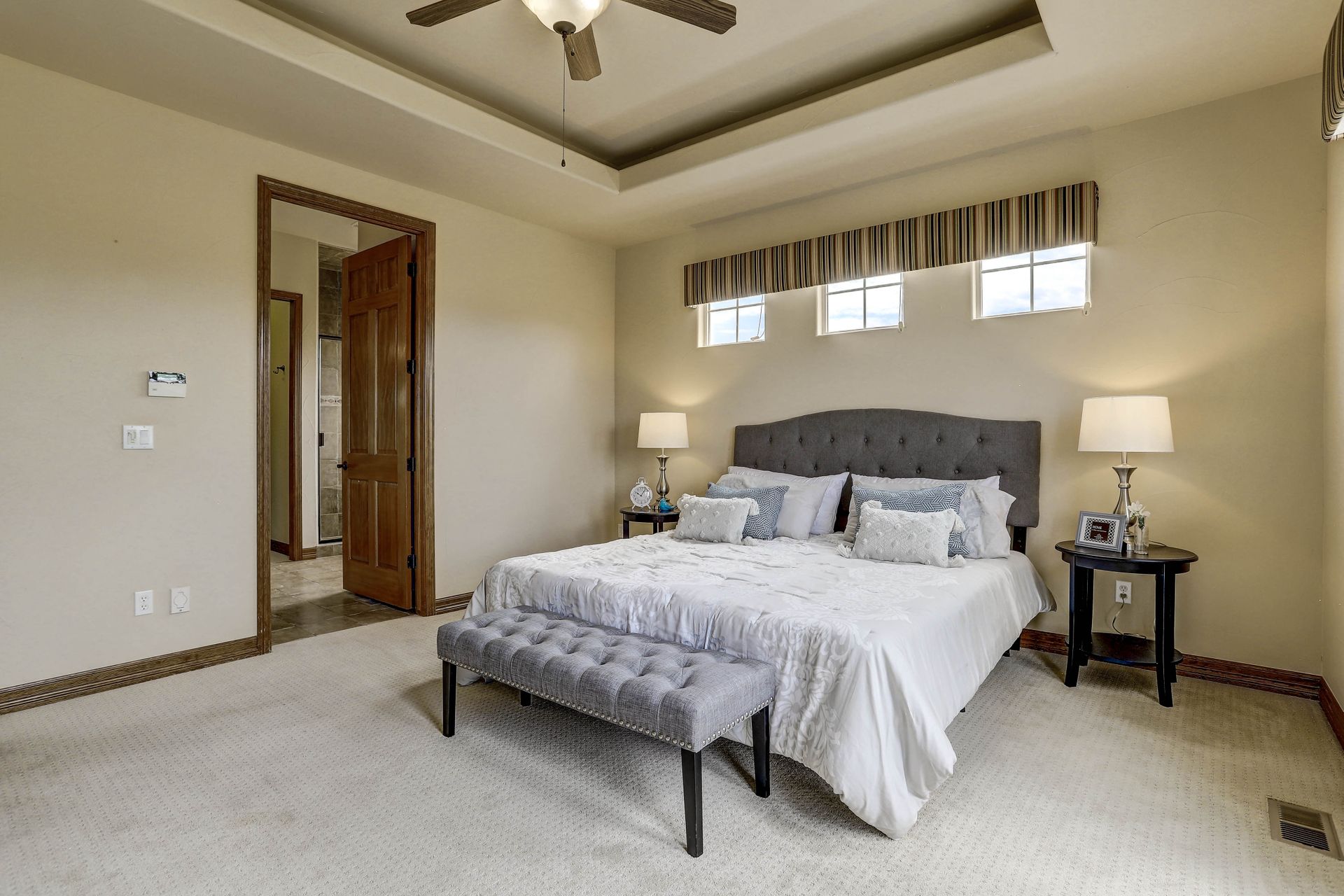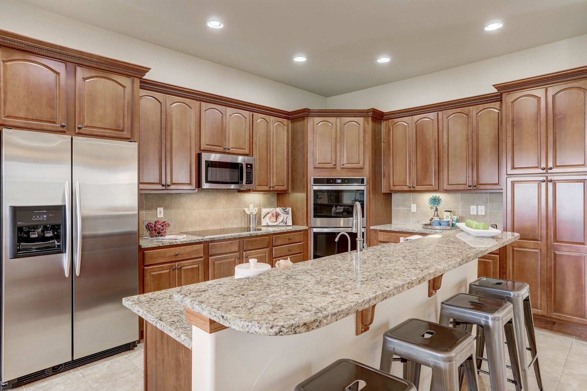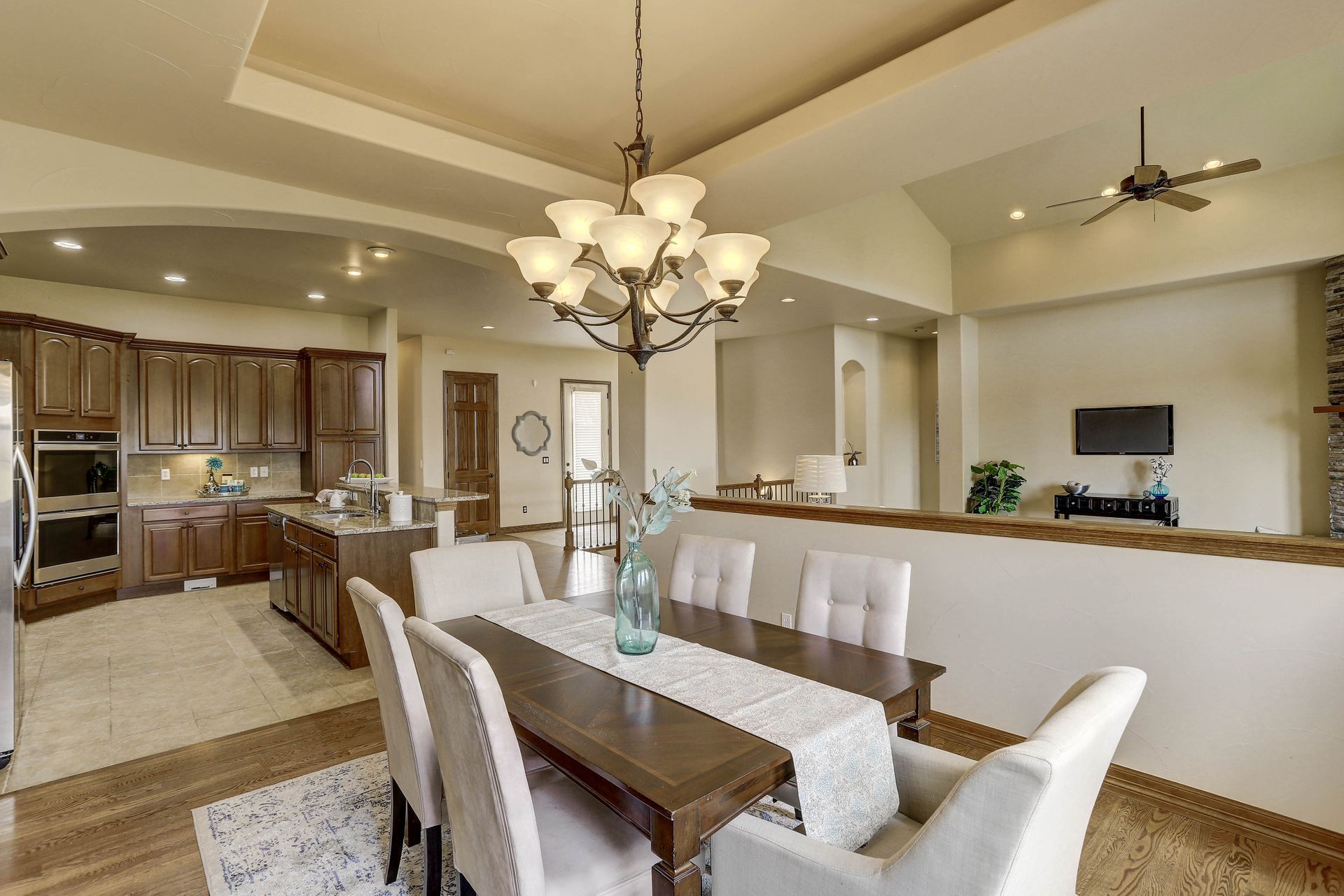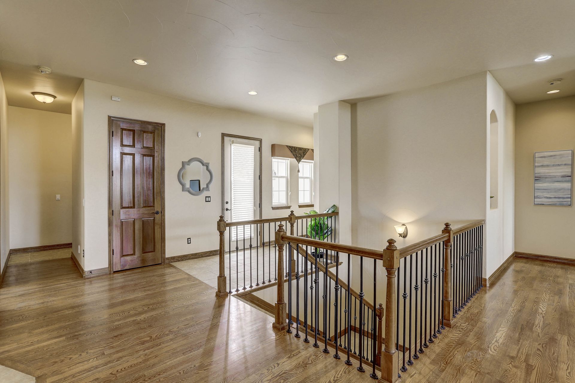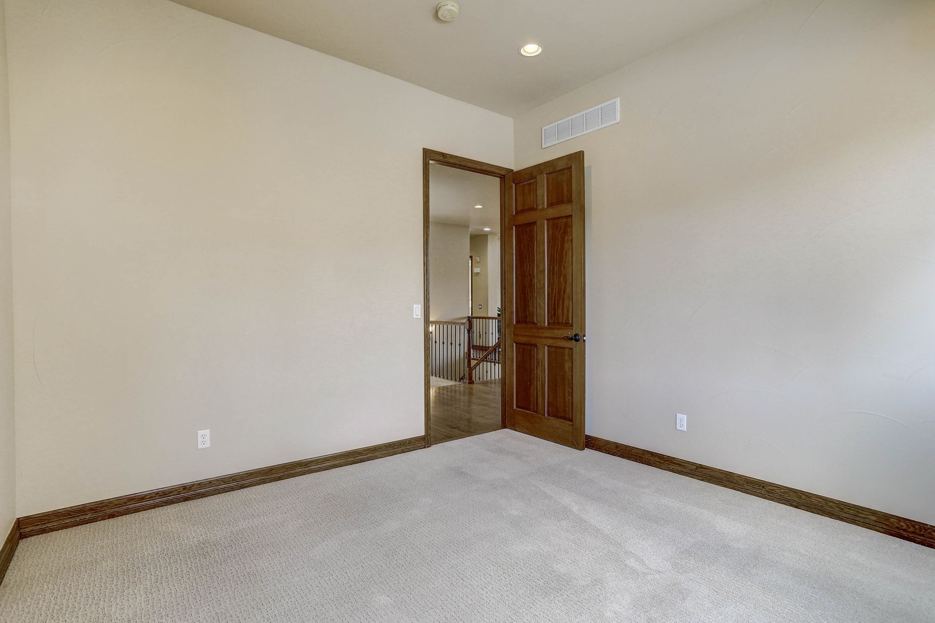 Gorgeous patio home surrounded by golf course, with over 4100 finished square feet. This beautiful home has high ceilings and an open floor plan. The kitchen hosts granite countertops with a breakfast bar, stainless steel appliances and plenty of cabinets, accented with decorative crown molding and under cabinet lighting. The living room has a stacked-stone, gas fireplace, vaulted ceilings and double glass doors leading to the patio. The spacious dining room offers a coffered ceiling and a graceful archway. The main floor primary suite also has double doors leading to the patio, a five-piece bath and a walk-in closet. The main floor also has an office and additional bedroom. The finished basement includes a family room with a fireplace and a wet bar as well as a three-fourths bath and two large bedrooms. Outside you'll find a spacious patio with views of the mountains, golf course and pond. The HOA provides exterior building maintenance, snow removal and grounds maintenance. This is a very quiet, gated community with easy highway access to I-76.