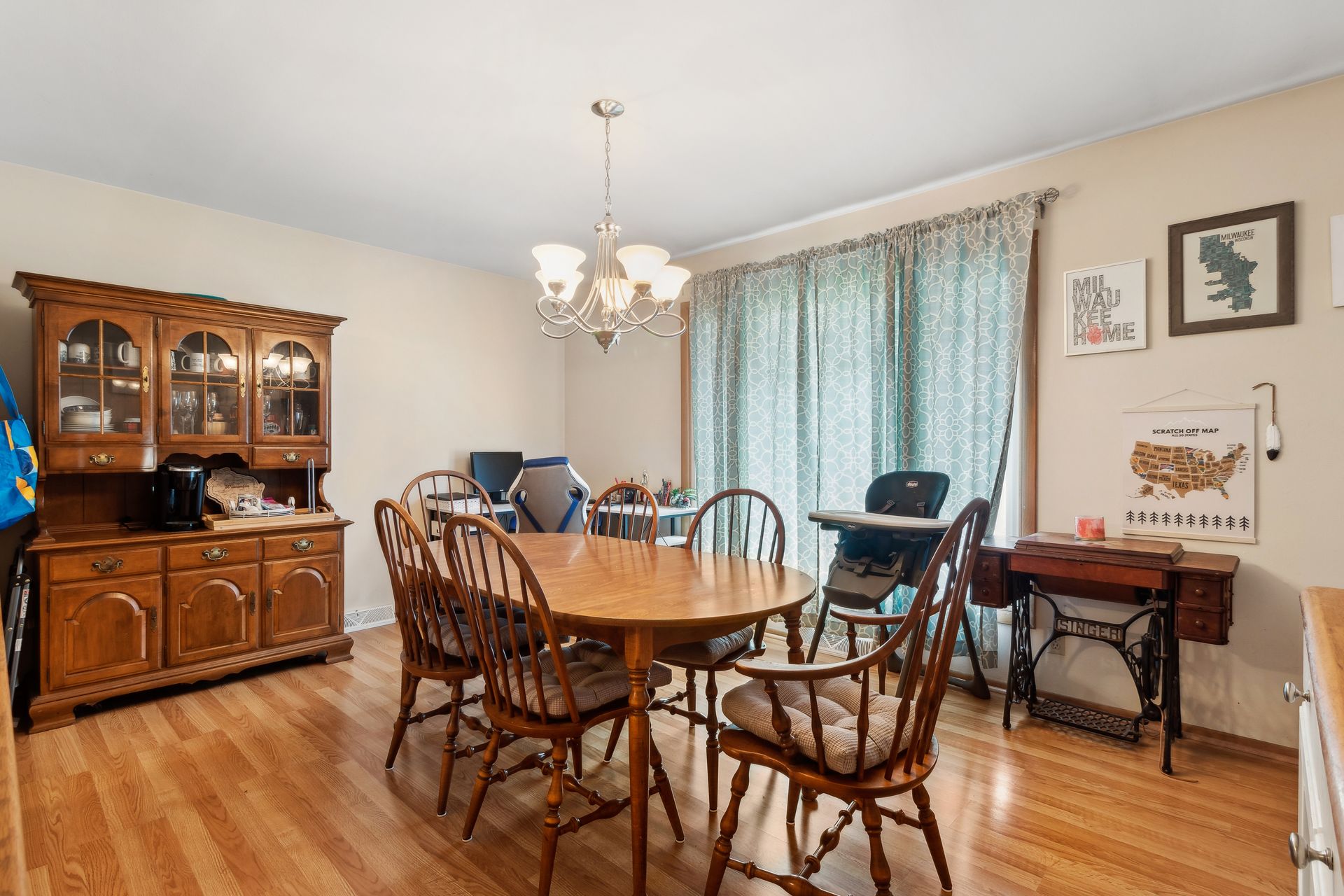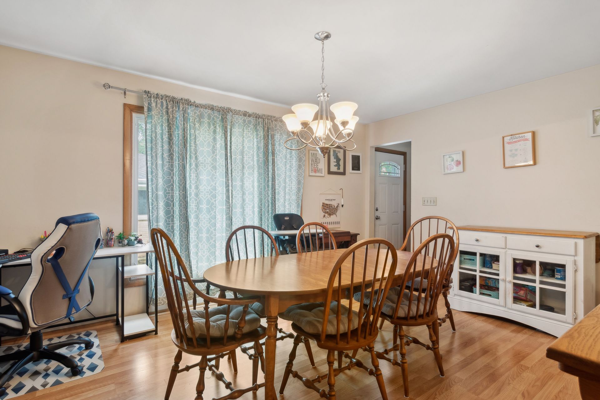 As you step into this dwelling, you're greeted by hardwood floors that run throughout the entire home. The space is complemented by a large eating area that is perfect for both intimate family dinners and entertaining guests.