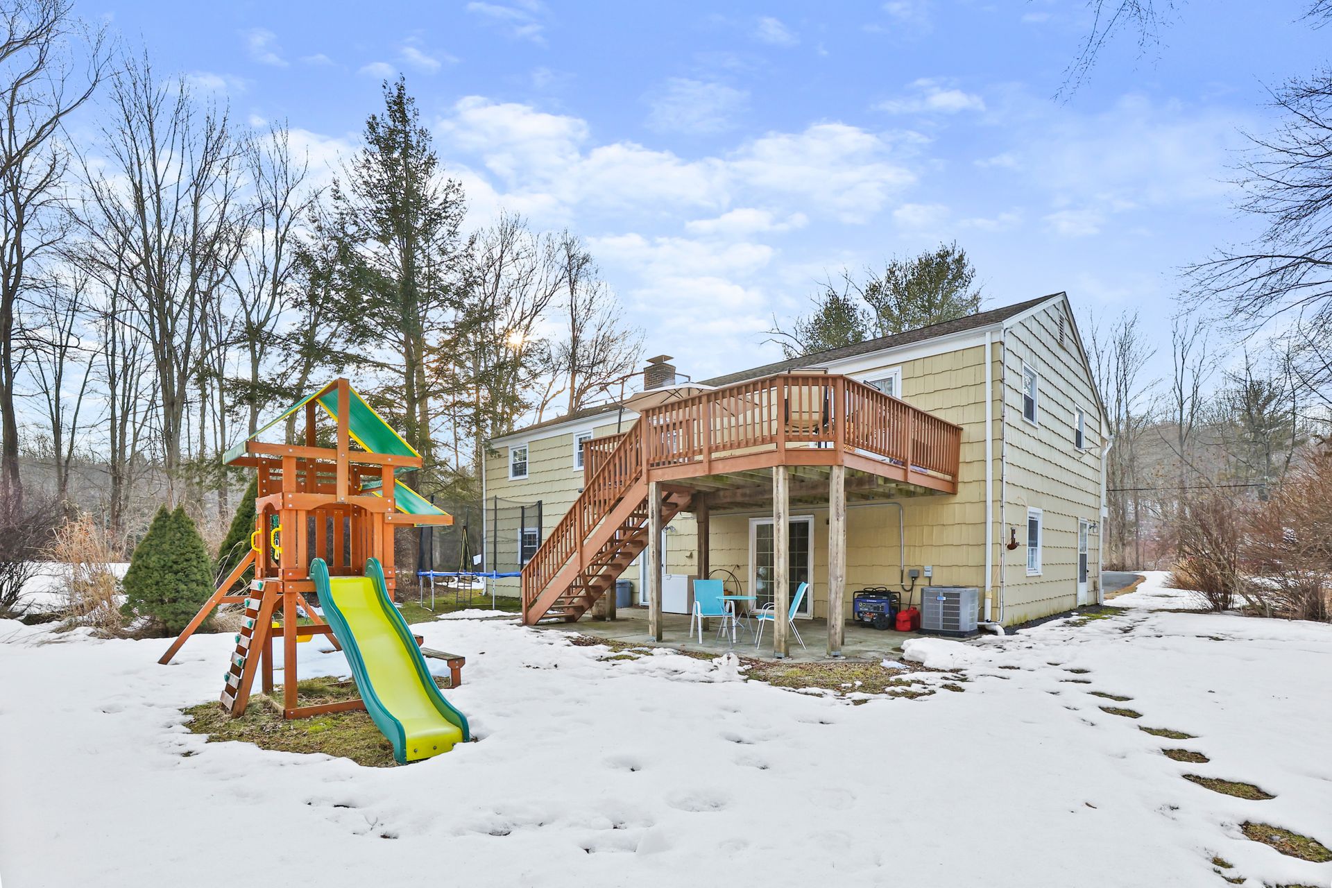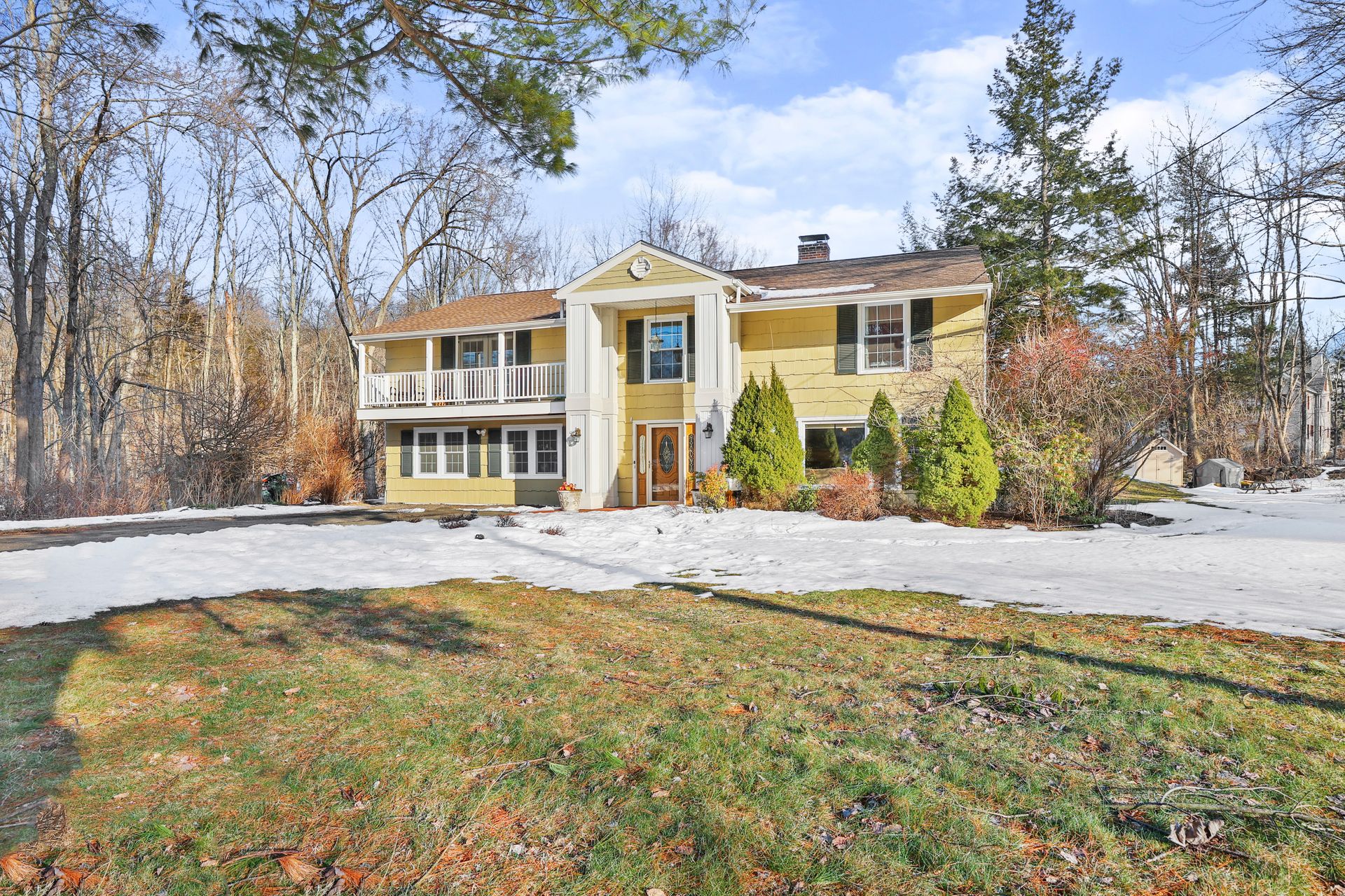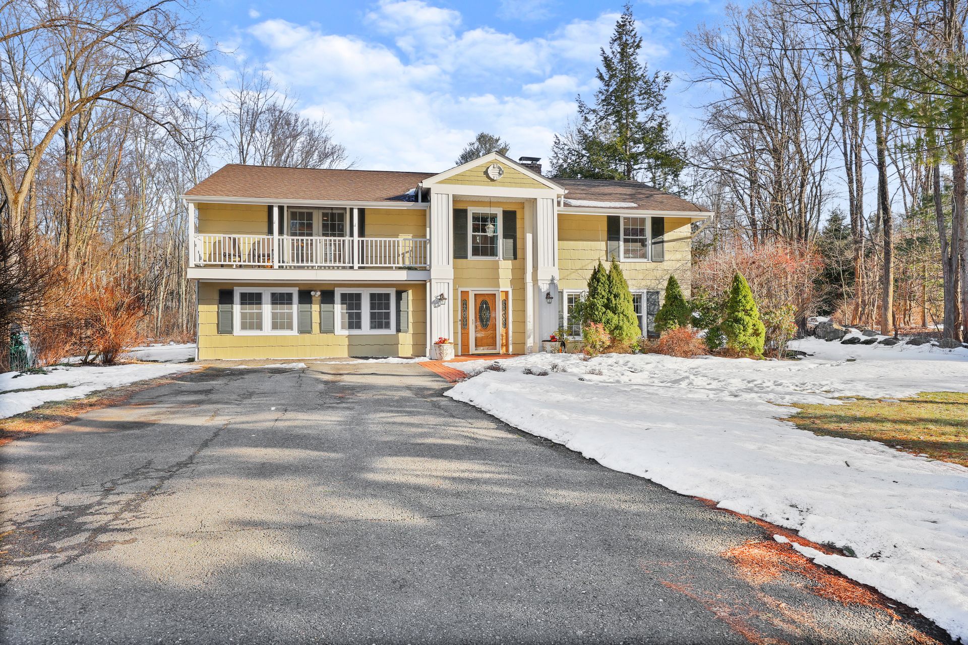 Come see this beautifully updated Hi-Ranch located on a convenient and very desirable cul-de-sac neighborhood. The amazing 700+/- square feet open flow Kitchen-Dining-Family Room combination, ideal for entertaining and everyday living, is flooded with natural light with French doors to the front balcony deck and sliders to the back 20' x 16' deck overlooking the ample gardens and play yard. The chef's kitchen enjoys stainless steel appliances, granite counters plus an oversized island/breakfast bar and tiled floor. The beautifully renovated tiled bath with twin sink vanity, jetted tub and large walk in shower is accessed from both the Master bedroom and the other two upper bedrooms. The lower level bedroom with tub bath offers a master bedroom alternative or guest room with a living room with fireplace on this level. There is a sound studio/gym and playroom on this level as well. This location is convenient to Redding's award winning schools, Mark Twain Library, Community Center, New Pond Farm, Topstone Park swimming, shopping, restaurants, commuting roads and Metro North stations. Escape to the friendly community of Redding known as the "Vermont of Fairfield County" because of its long term commitment to preserving open space lands with 100's of miles of hiking trails. This home is MOVE-IN READY.