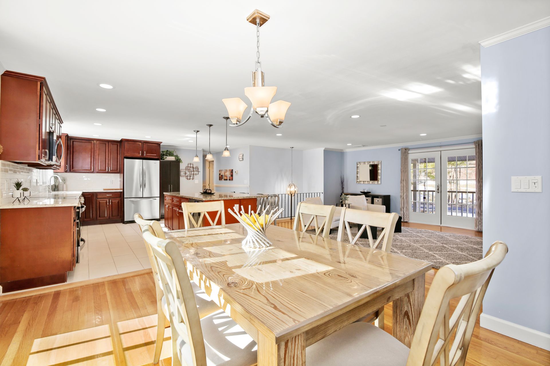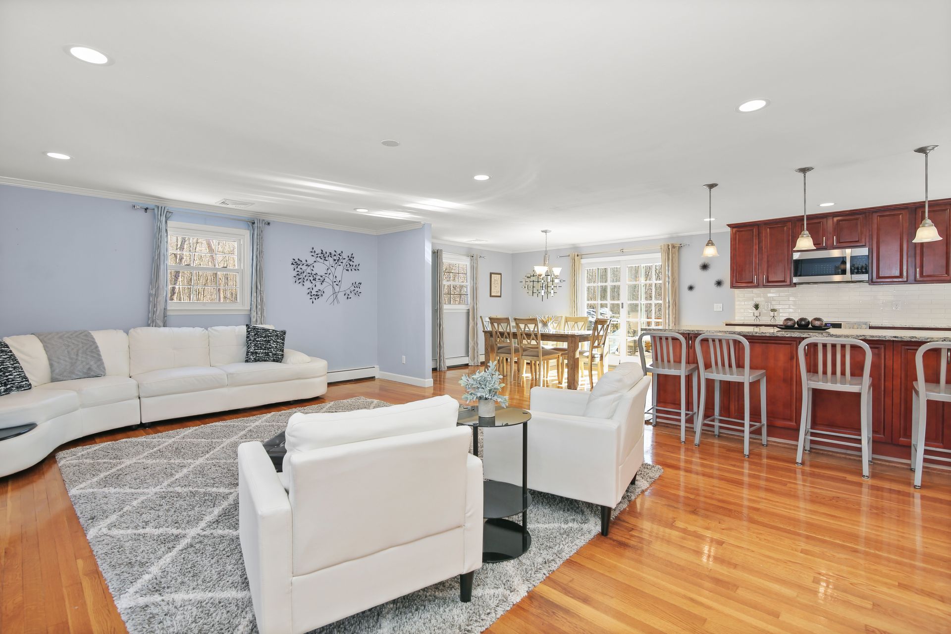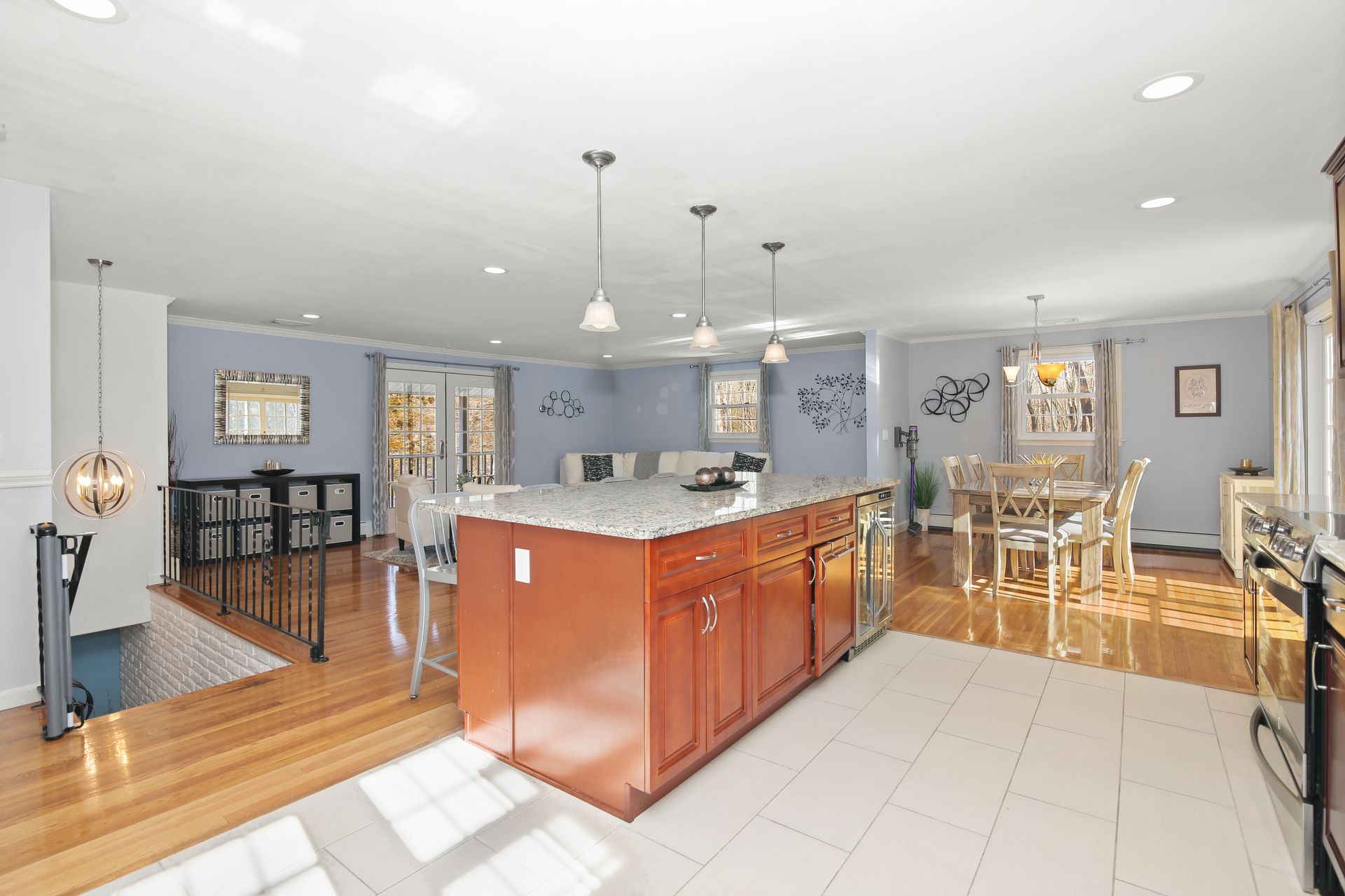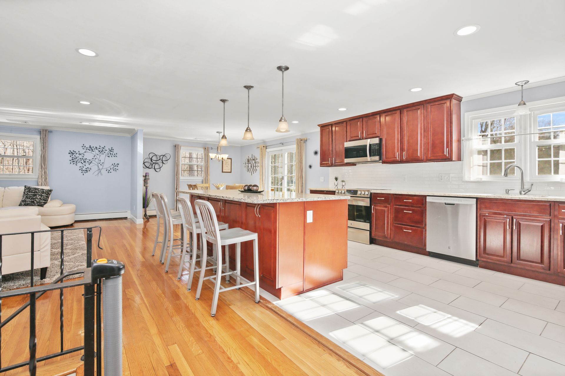 Come see this beautifully updated Hi-Ranch located on a convenient and very desirable cul-de-sac neighborhood. The amazing 700+/- square feet open flow Kitchen-Dining-Family Room combination, ideal for entertaining and everyday living, is flooded with natural light with French doors to the front balcony deck and sliders to the back 20' x 16' deck overlooking the ample gardens and play yard. The chef's kitchen enjoys stainless steel appliances, granite counters plus an oversized island/breakfast bar and tiled floor. The beautifully renovated tiled bath with twin sink vanity, jetted tub and large walk in shower is accessed from both the Master bedroom and the other two upper bedrooms. The lower level bedroom with tub bath offers a master bedroom alternative or guest room with a living room with fireplace on this level. There is a sound studio/gym and playroom on this level as well. This location is convenient to Redding's award winning schools, Mark Twain Library, Community Center, New Pond Farm, Topstone Park swimming, shopping, restaurants, commuting roads and Metro North stations. Escape to the friendly community of Redding known as the "Vermont of Fairfield County" because of its long term commitment to preserving open space lands with 100's of miles of hiking trails. This home is MOVE-IN READY.