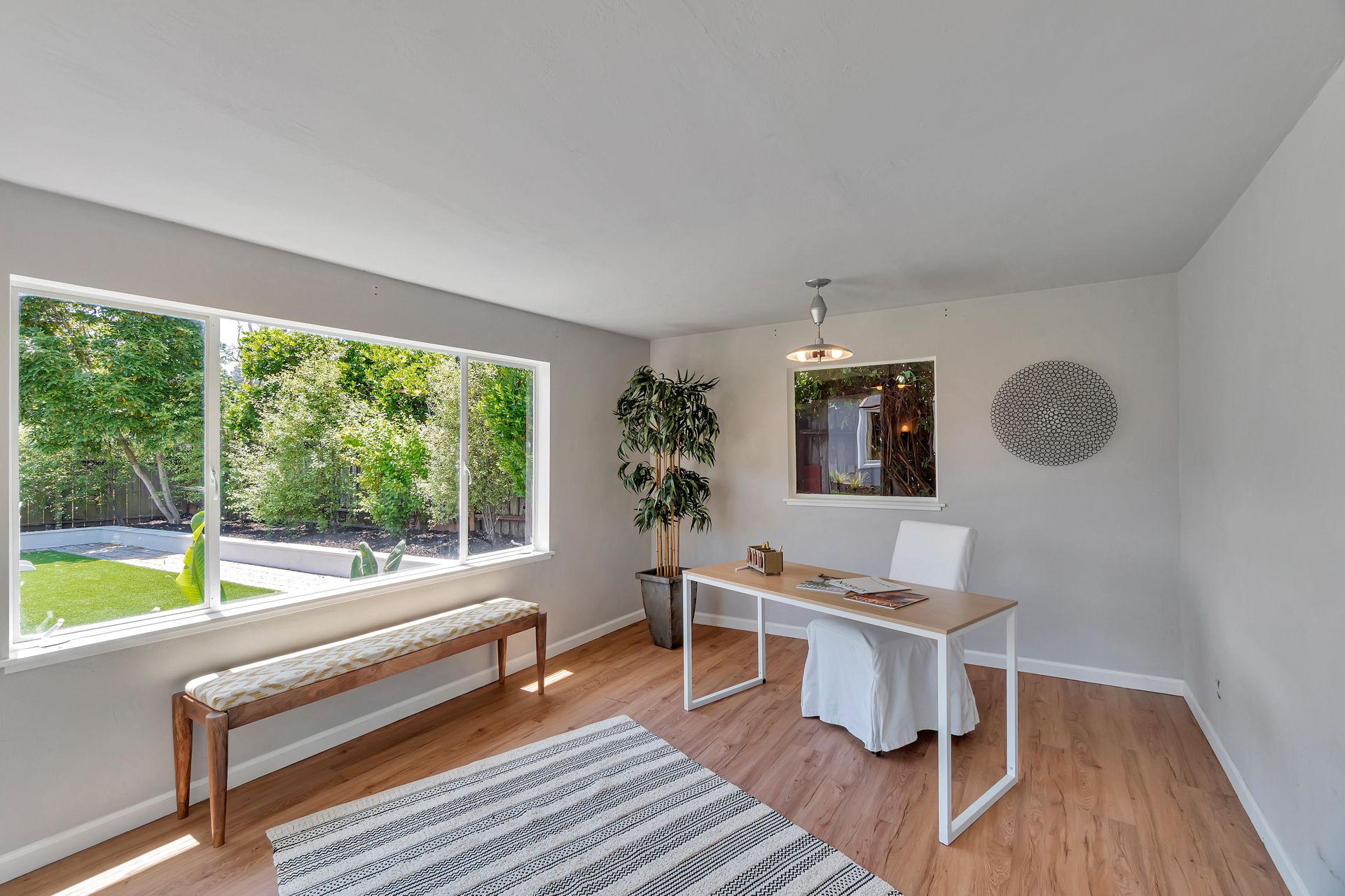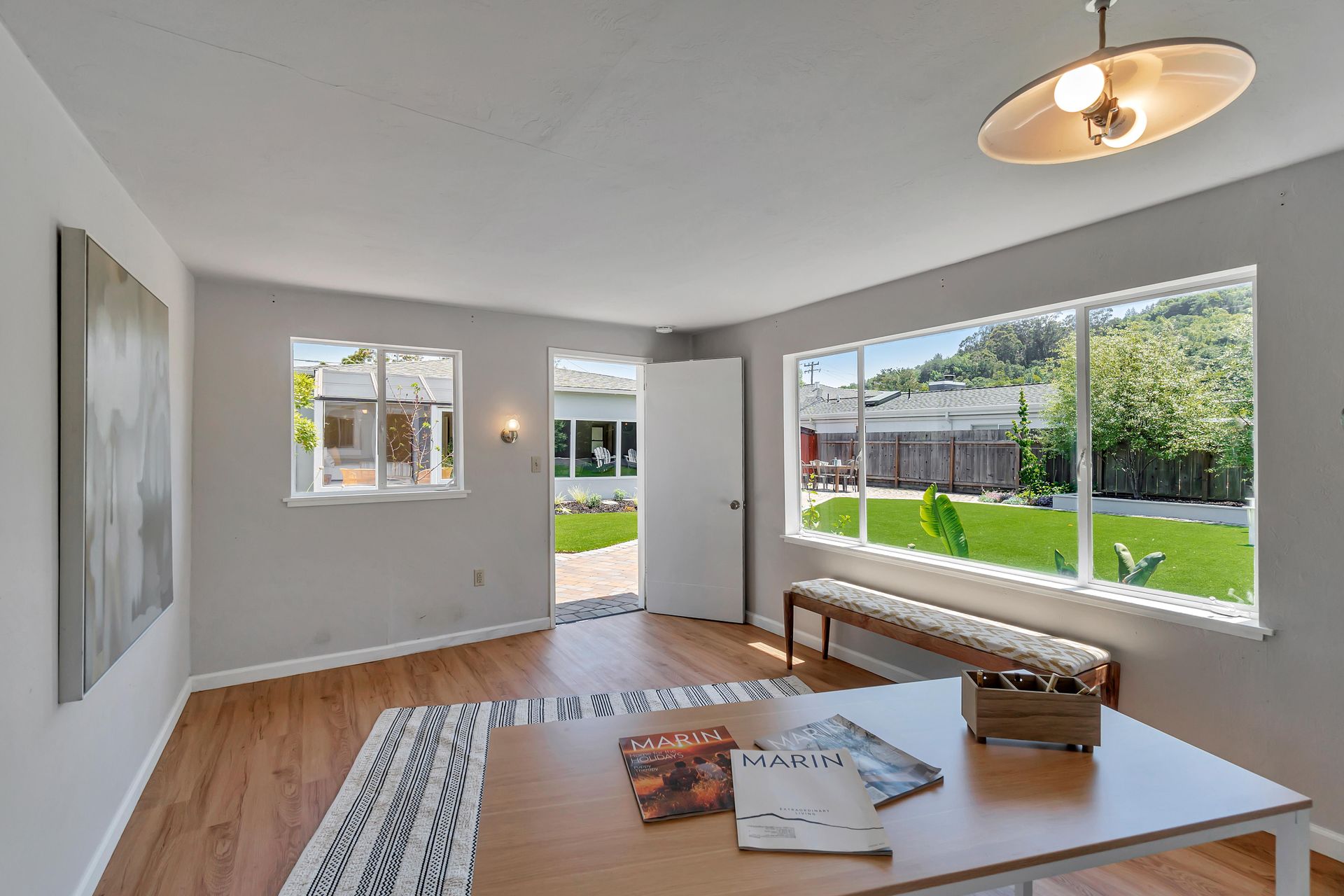 Ideally located, this home is in the coveted Madera Gardens neighborhood! This immaculate and charming west side home includes two bedrooms, one bathroom and a separate office/art studio out building. Enjoy Mount Tam views. The sunny living/dining room features a beautiful fireplace and gleaming hardwood floors. The updated kitchen offers a desk nook. The primary bedroom has a sitting area. Don’t miss the one-car garage with laundry hook ups. The wonderful yard for entertaining includes a stone patio and large artificial turf lawn. Enjoy being close to award-winning schools, parks, hiking, bike paths and Town Center.