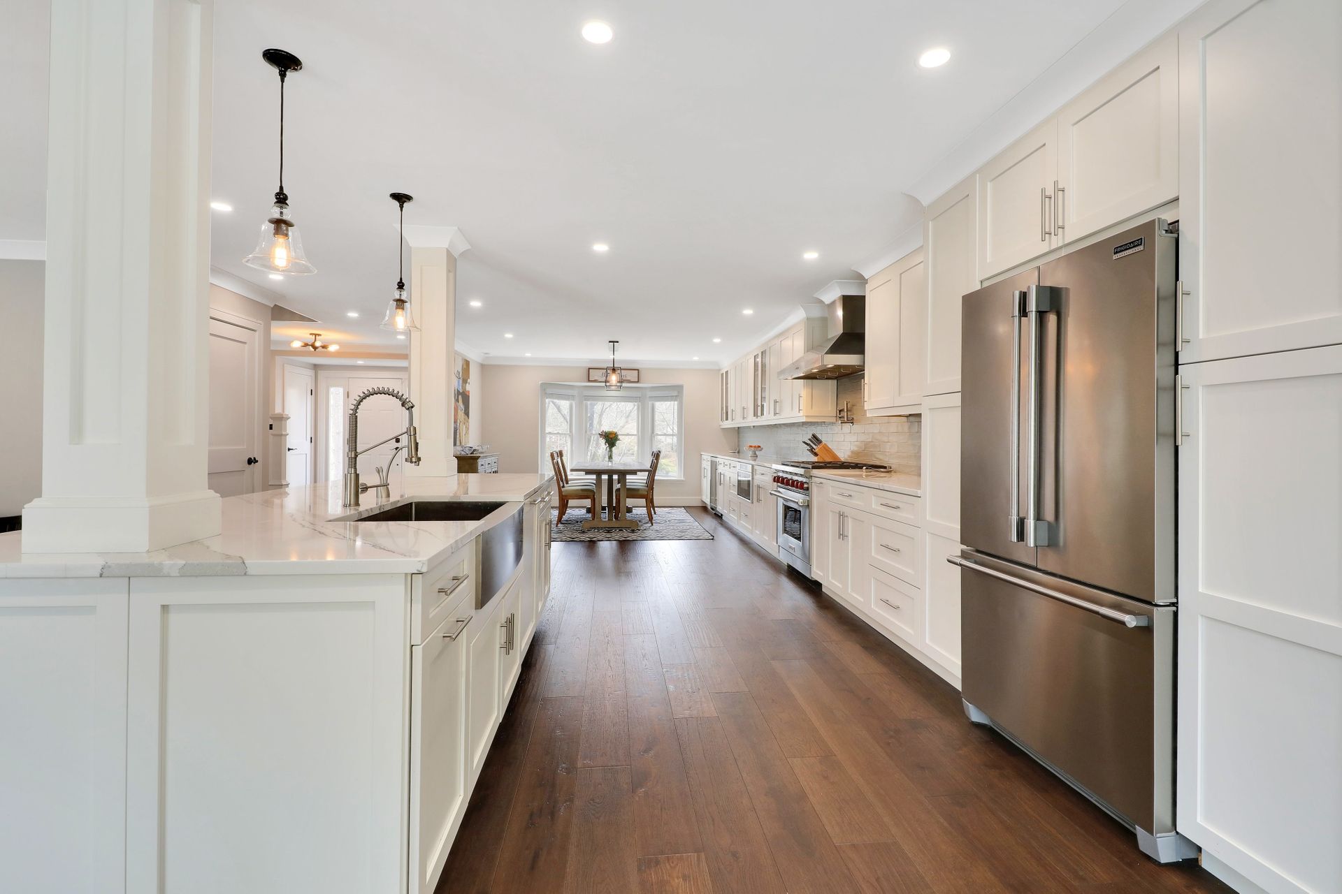 This center-hall colonial located in the Strathmore Hills section of Melville has been completely renovated top-to-bottom. This like-new, elegant four, possibly five bedroom home boasts brand new, high-end everything which includes a custom chef's kitchen with a Wolf gas range, quartz countertops, oversized island, wine fridge, wide-plank wood flooring, garbage disposal, security system, smart home, central vac, new HVAC, new ductwork, new electrical, new utilities, custom closets, radiant heat, electric blinds, custom built-in mudroom, outdoor custom built-in kitchen, large patio, in-ground sprinkler system, Indoor/outdoor living, approximately .70 acres of prime property in a prime location within Strathmore Hills - community pool club, gas, sewers, Signal Hill, HS East. Diamond+++
