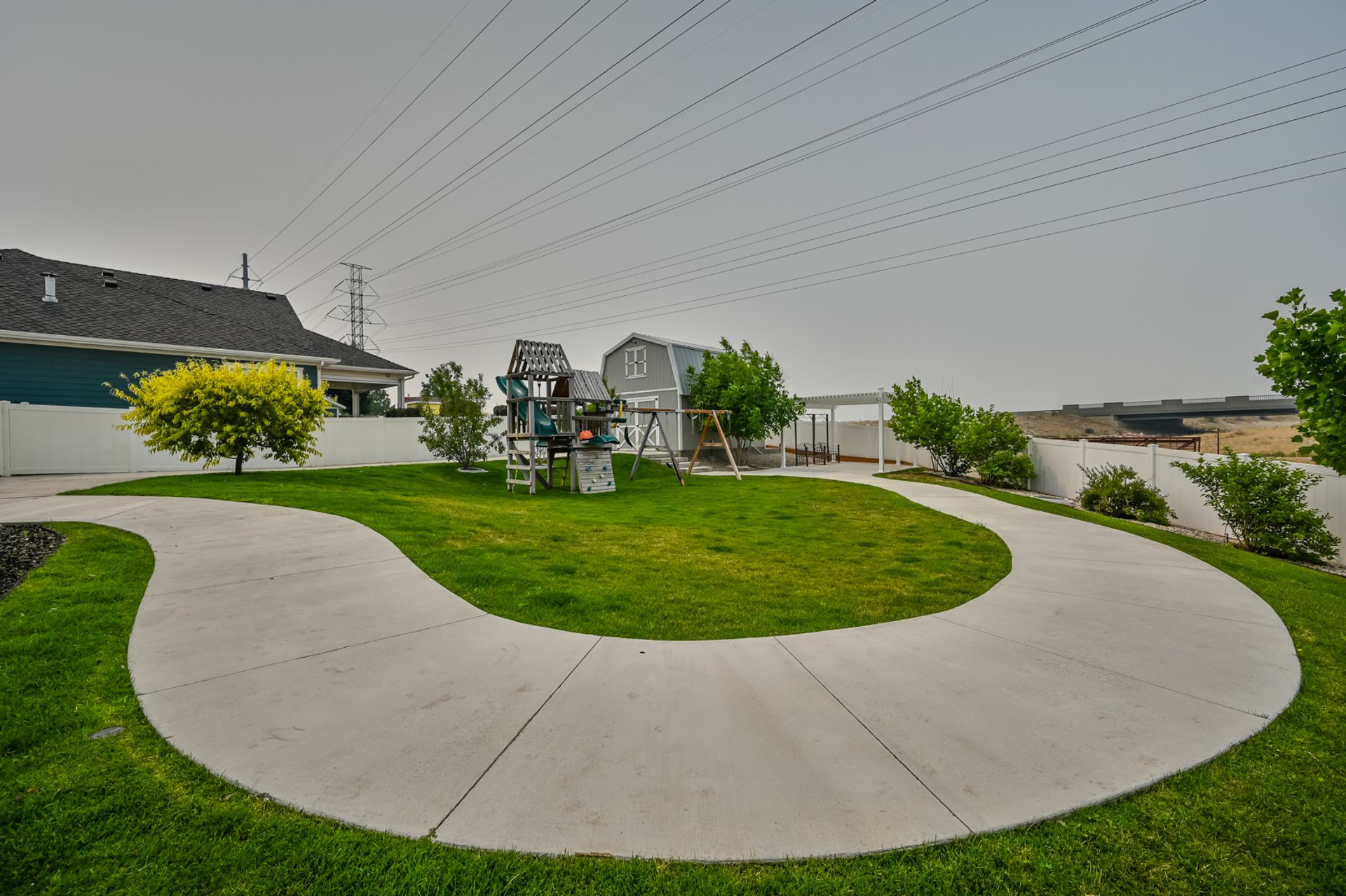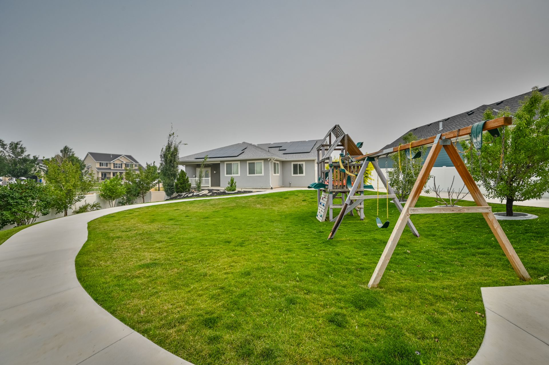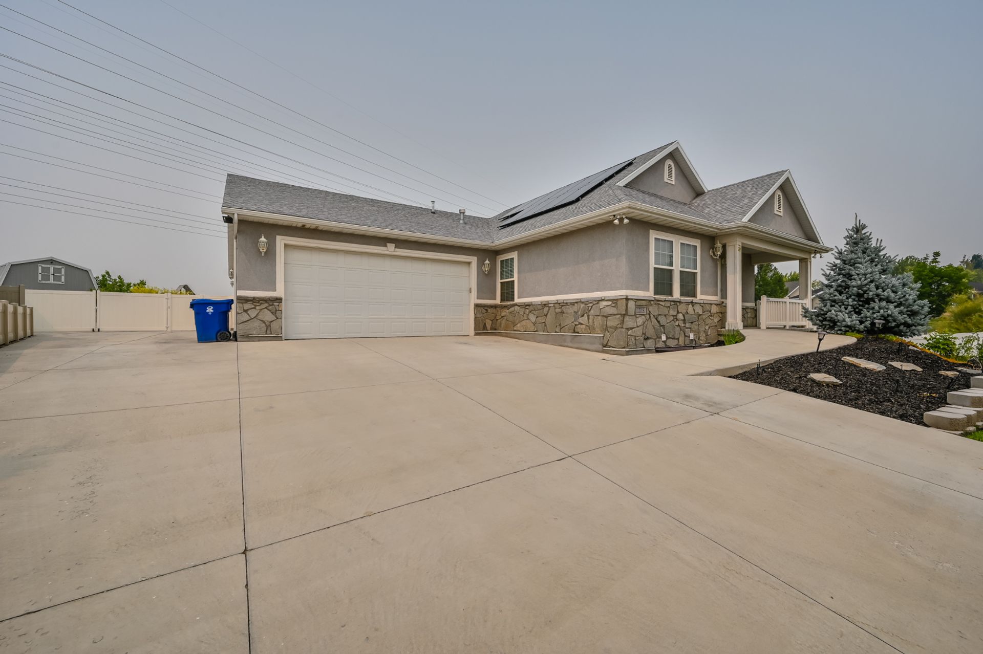 There is a lot about this home that is hard to find; all wrapped into one! Open and spacious with five bedrooms and two and one-half baths. Open kitchen and family room with gas log fireplace to cozy up to on those chilly mornings and evenings. Lots of cupboard space, large pantry and laundry. Hot tub room off the master bedroom. You can enjoy the sunsets with a gorgeous view of the Oquirrh Mountains from the spacious deck. Recreational trails surround your 0.31 acres. The lovely backyard, with no back neighbors, has a gazebo, two-story shed with power, large RV parking, guest apartment with a separate entrance and storage galore. This home has owned solar panels and is handicap friendly. Great neighborhood, great neighbors and close to schools, shopping and Mountain View Corridor for easy freeway access.