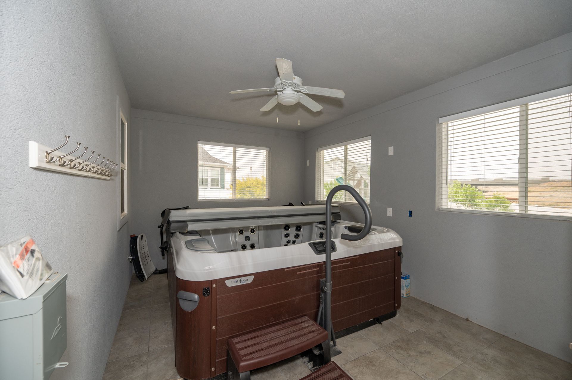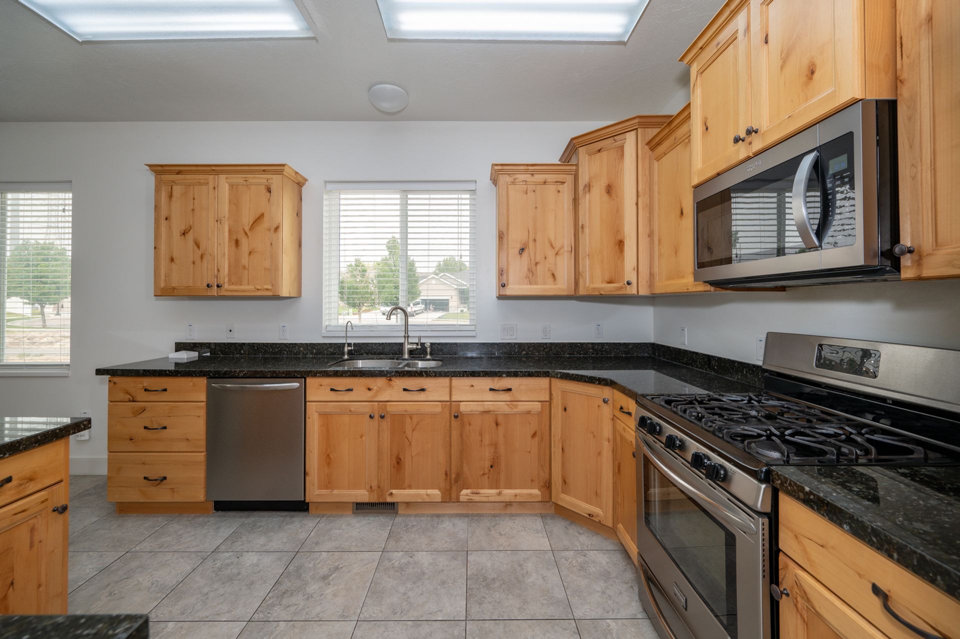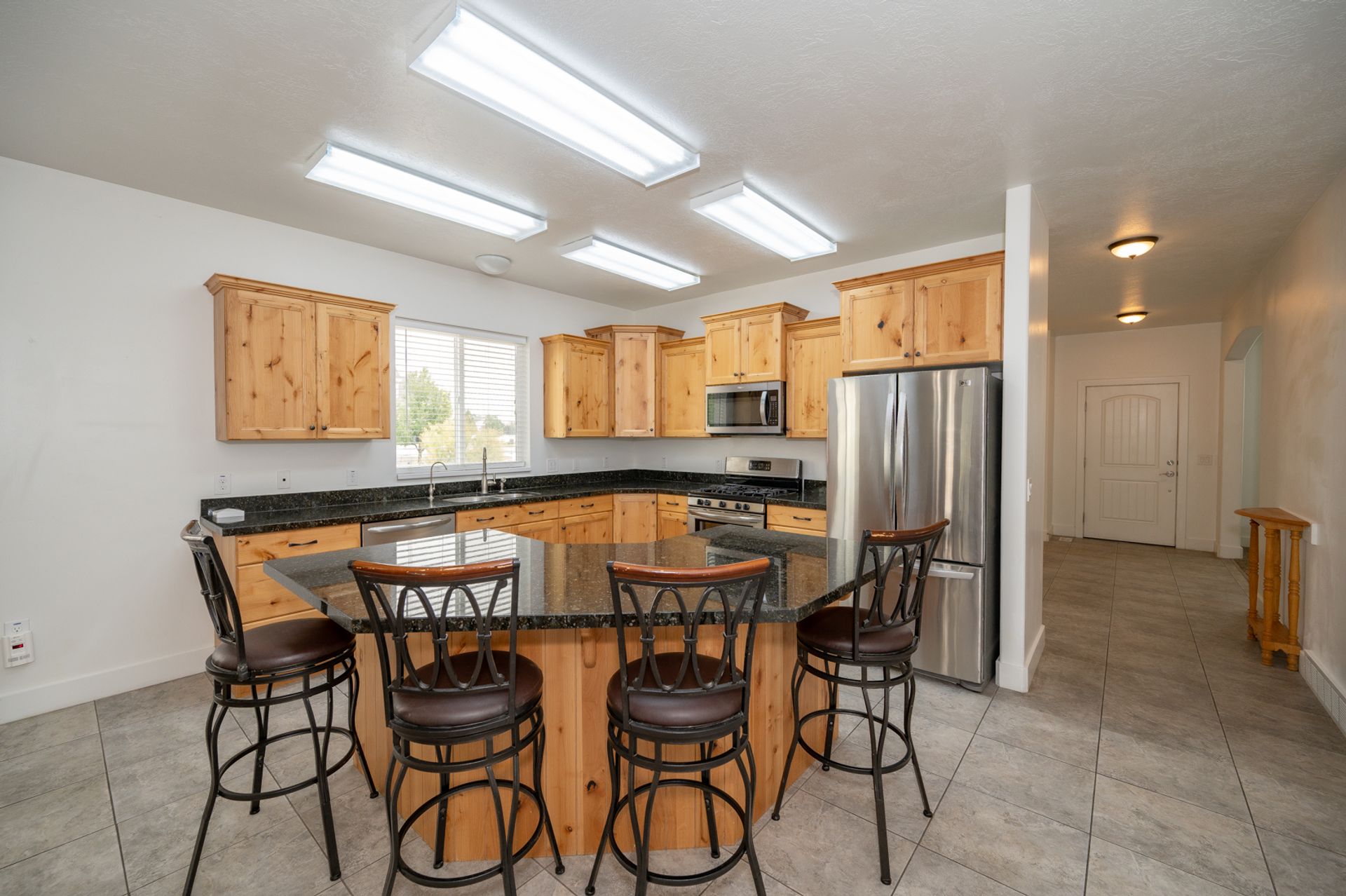 There is a lot about this home that is hard to find; all wrapped into one! Open and spacious with five bedrooms and two and one-half baths. Open kitchen and family room with gas log fireplace to cozy up to on those chilly mornings and evenings. Lots of cupboard space, large pantry and laundry. Hot tub room off the master bedroom. You can enjoy the sunsets with a gorgeous view of the Oquirrh Mountains from the spacious deck. Recreational trails surround your 0.31 acres. The lovely backyard, with no back neighbors, has a gazebo, two-story shed with power, large RV parking, guest apartment with a separate entrance and storage galore. This home has owned solar panels and is handicap friendly. Great neighborhood, great neighbors and close to schools, shopping and Mountain View Corridor for easy freeway access.
