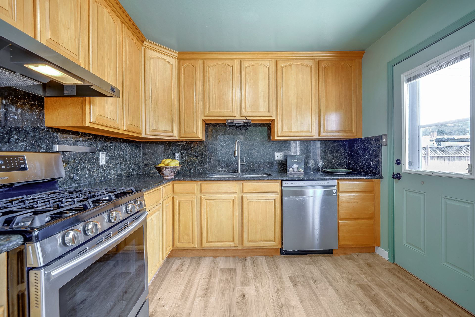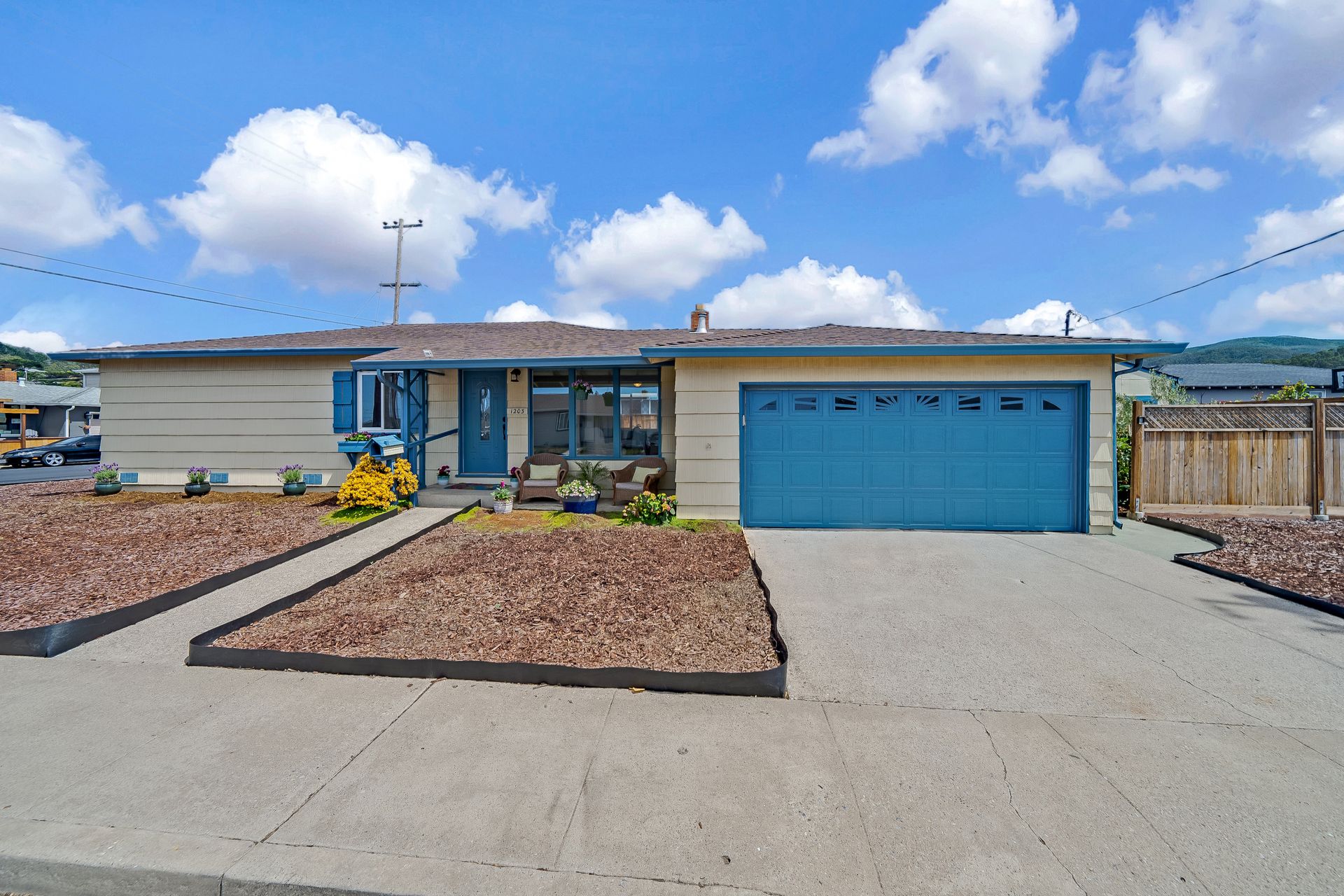 Just over a few blocks from wonderful Linda Mar Beach. Welcome to this single level ranch style home with three bedrooms and one full bathroom. The nicely updated kitchen features gorgeous granite countertops with light oak cabinetry. It offers a fireplace and dual pane vinyl windows throughout most of the main home, new carpet, interior paint and new vinyl kitchen flooring. It includes a separate, permitted, approximately 330 square foot retreat building with permitted bath and full electrical service. The retreat has its own private entrance and side yard. This large corner parcel has a fully fenced, sunny rear yard featuring thornless blackberries and roses. The corner lot may allow for RV or Boat parking (check with City of Pacifica). There is an additional storage loft and laundry room in the garage. Live close to shopping, surfing and enjoy a short commute to San Francisco. Close to world class mountain biking and hiking trails.