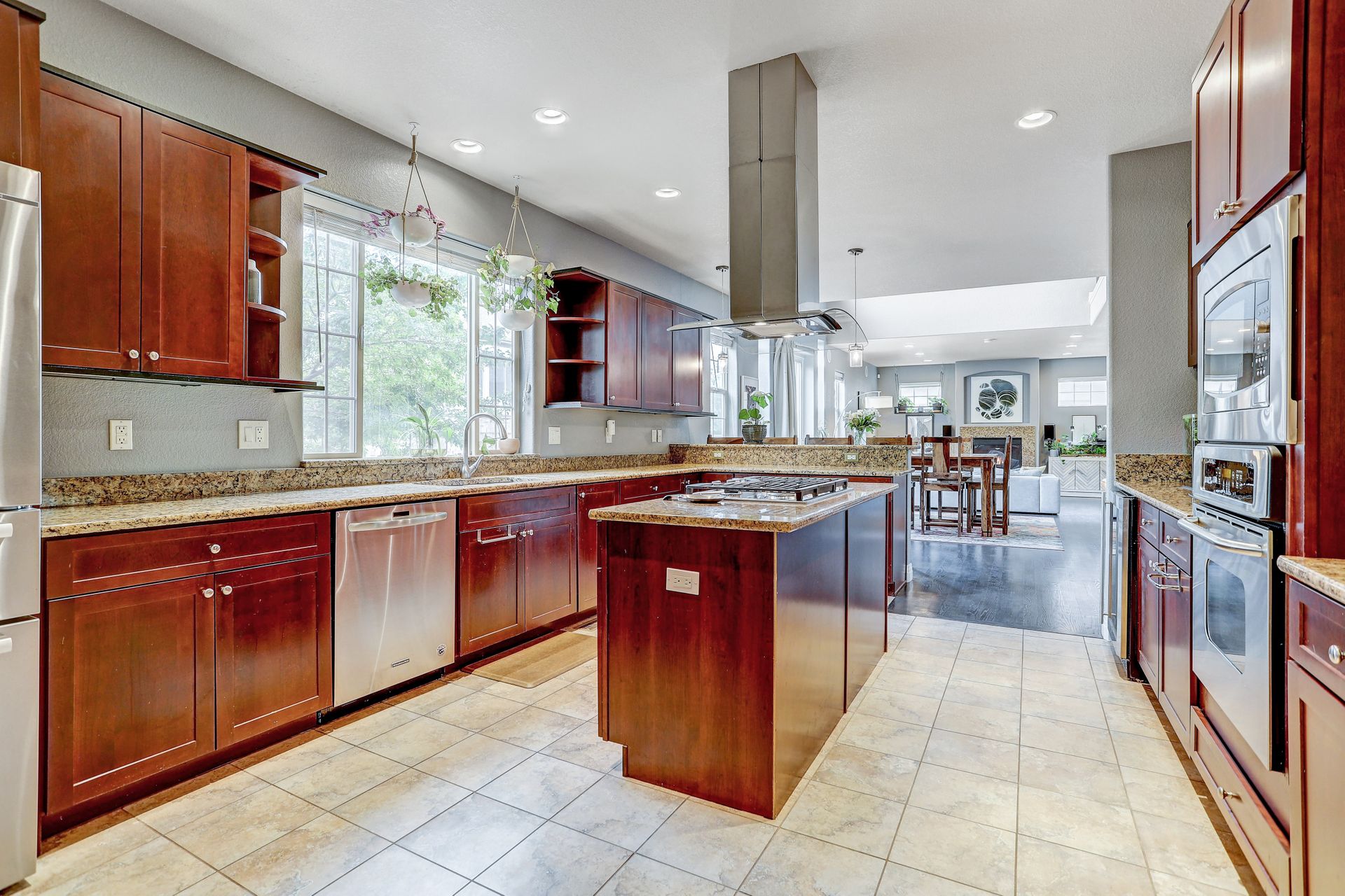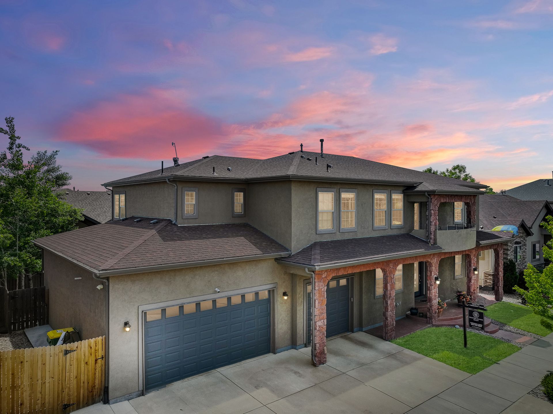 Must see this beautiful two-story home! With over 5000 finished square feet, this home is ready for you! Step through the front door into a bright space with soaring cathedral ceilings and designer finishes throughout. The incredible space of the main living area flows to the family room, the dining area and kitchen. The gourmet kitchen hosts newer stainless appliances, flowing granite counters and gorgeous cabinetry. The spacious primary suite occupies a wine center, a fireplace and a primary bath. There is a guest suite with a private bath. Two bedrooms and another bath with a laundry room complete the upper level. Two bedrooms share access to a private upstairs balcony patio. The basement features acid-stained radiant heat concrete floors, a bedroom, bathroom, workout space and a family room. Paid in full solar panels, new custom patio with furniture and firepit, a four-car garage with $5k organization system and so much more! Just minutes from Belmar and easy access to recreation, shopping and more! Don't miss this incredible luxury home!