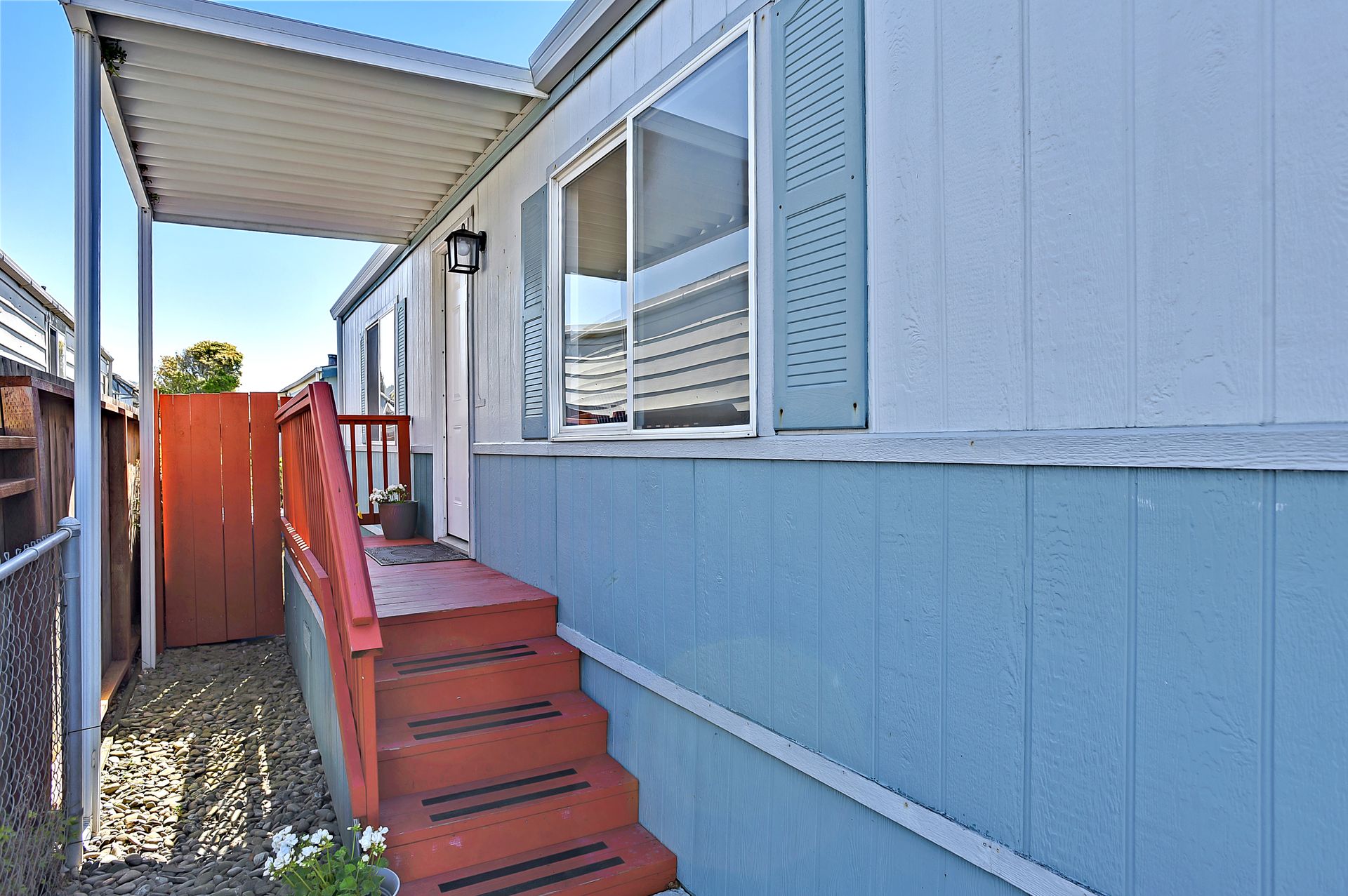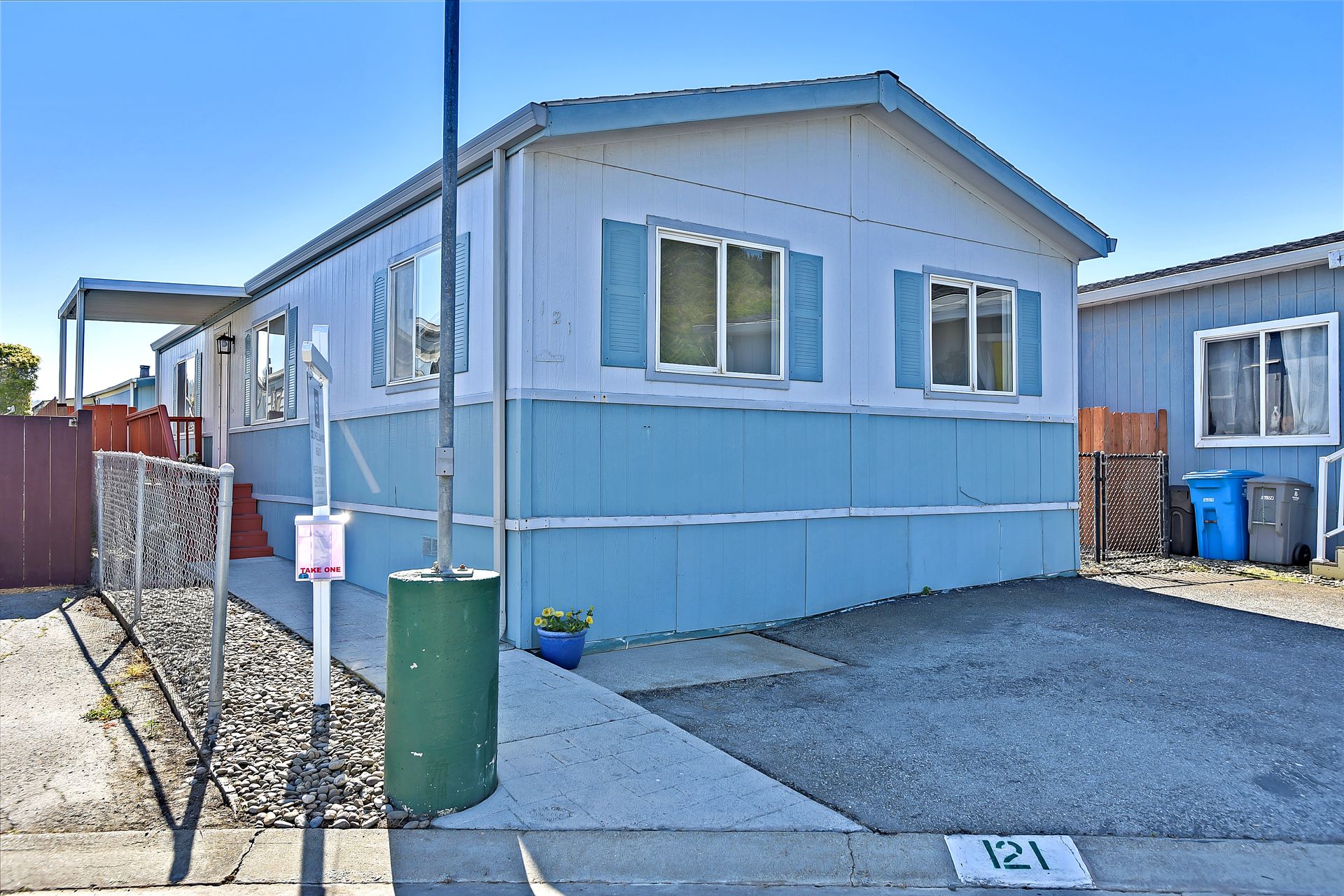 Enjoy living on the coast in this affordable home. Located in an all-ages community which offers a clubhouse, a pool and recreational and gathering amenities. The home has a spacious living area, which is open to the dining area and kitchen creating a gathering place for guests. The primary bedroom and bath are on one side of the home with the other two bedrooms and bath on the other side. The kitchen has a gas range. A laundry room with a side entry leads to backyard with a shed for additional storage. Enjoy recent interior paint and newer carpeting. The property is near the bluff, trails, beaches, the bustling Pillar Point Harbor and the serene Fitzgerald Marine Reserve. This home is on leased land with monthly space rent. Park approval is required to complete the purchase.
