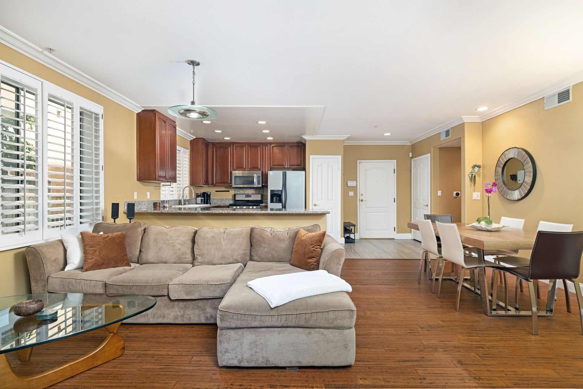 Gorgeous condo in one of LA's most central & ideal locations. Freshly painted, vacant and ready to move in. Large open floorplan with open kitchen to a large dining room & living room with balcony for the perfect entertaining environment all set on wood floors. Beautiful kitchen has granite counters with bar stool seating, stainless steel appliances, lots of cabinets & storage. The spacious master suite features a large walk-in closet and a luxurious double sink bath. Large 2nd bedroom with its own ensuite bath. Laundry room in unit, & a guest bathroom. Great storage throughout. Corner unit with only one common wall. 2 parking spaces (tandem) with guest parking in the building. Small quiet building. Centrally located with a 95-walk score to shops, restaurants, Beverly Hills, Century City, and Pico/Robertson neighborhood.